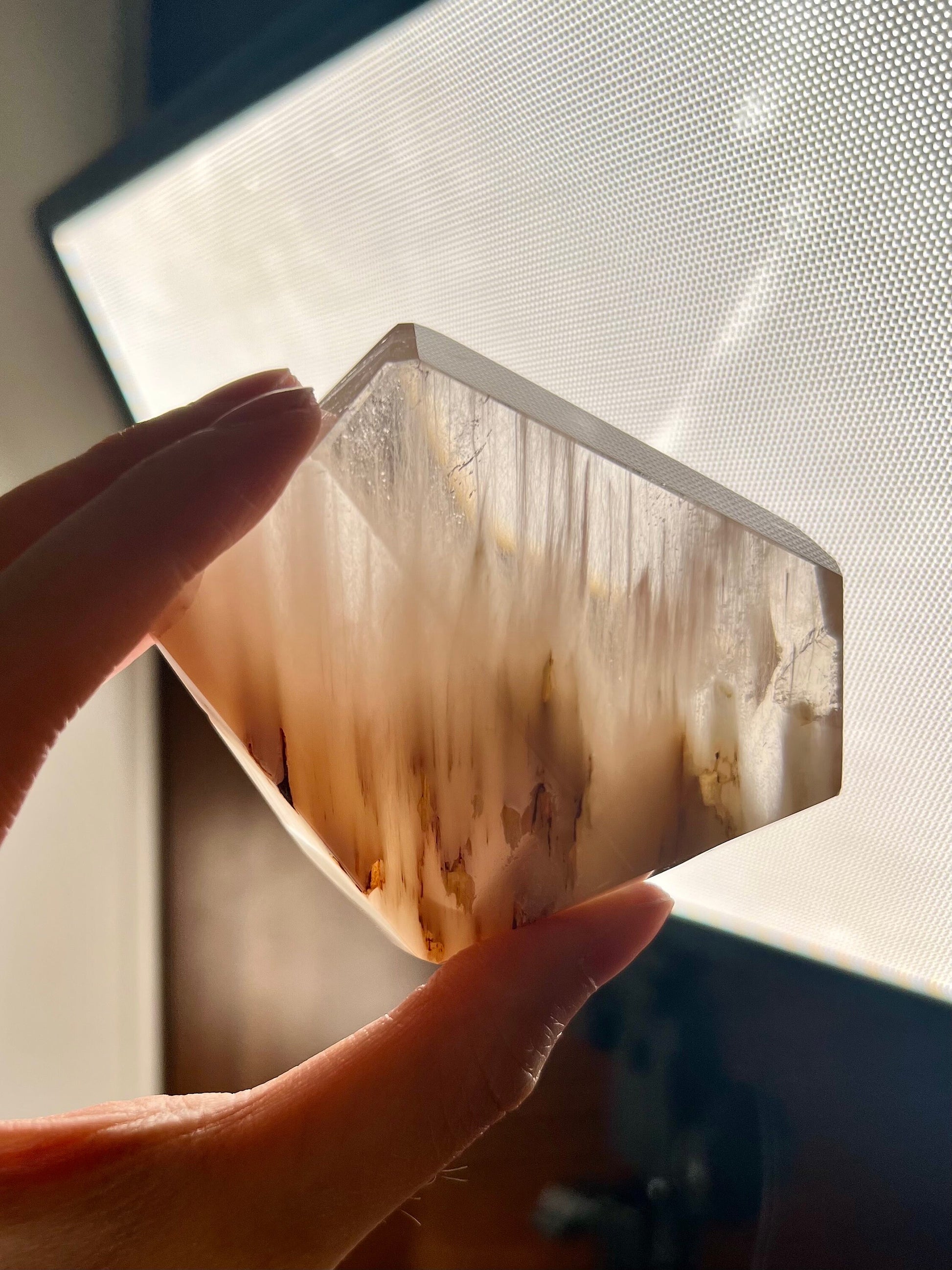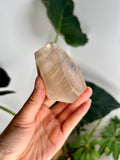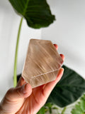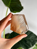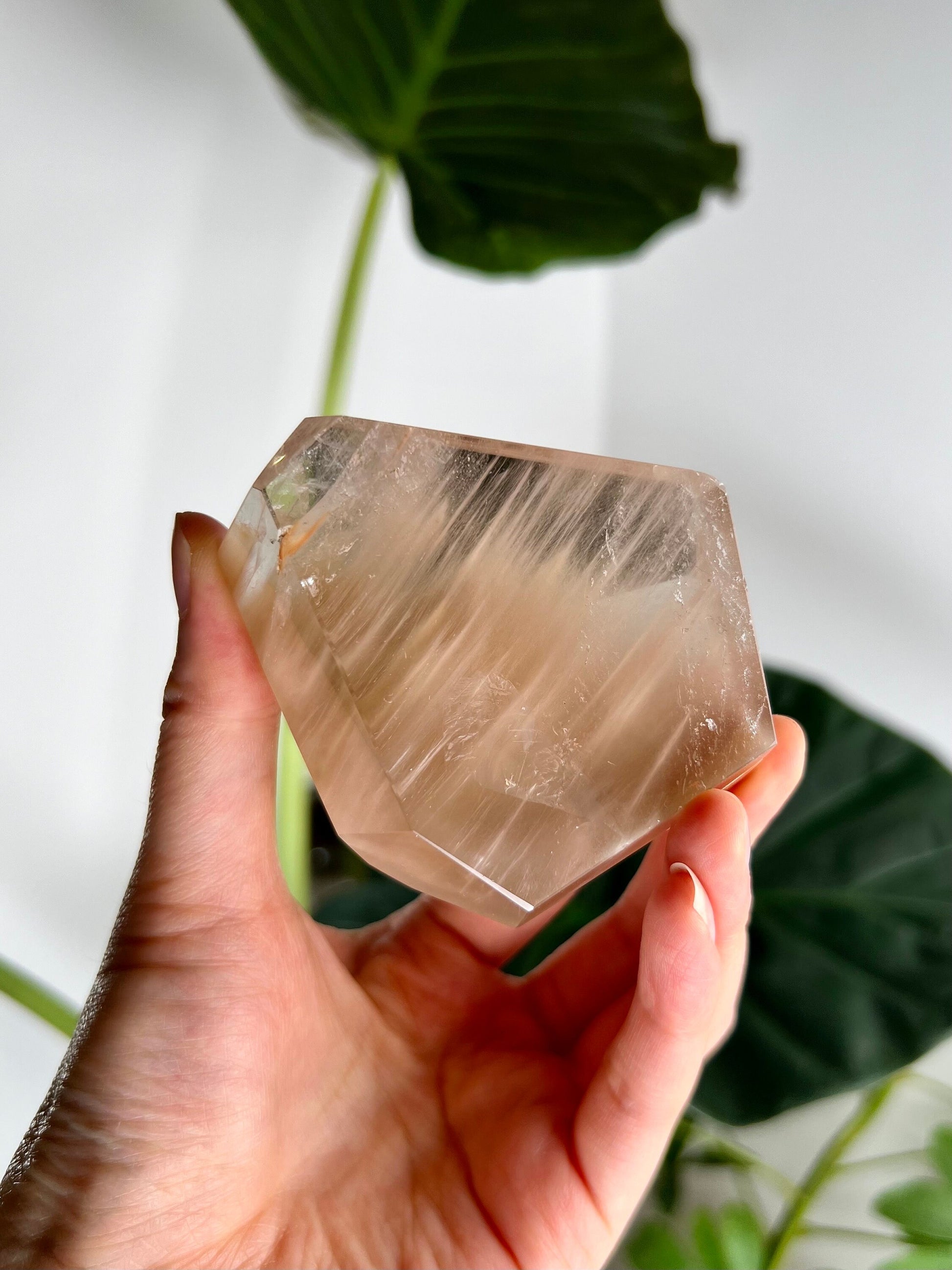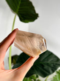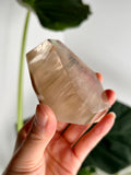 Amphibole Quartz, often referred to as Angel Phantom Quartz, is known for its angelic appearance and high vibrational energy. The presence of inclusions such as pink, golden, and silver amphibole, as well as fine hair-like rutile, enhances the crystal's ability to connect with higher realms and angelic guidance. The combination of these colours, especially the elegant peach hue formed by golden and pink amphibole together, adds a unique aesthetic and energy to each piece.