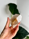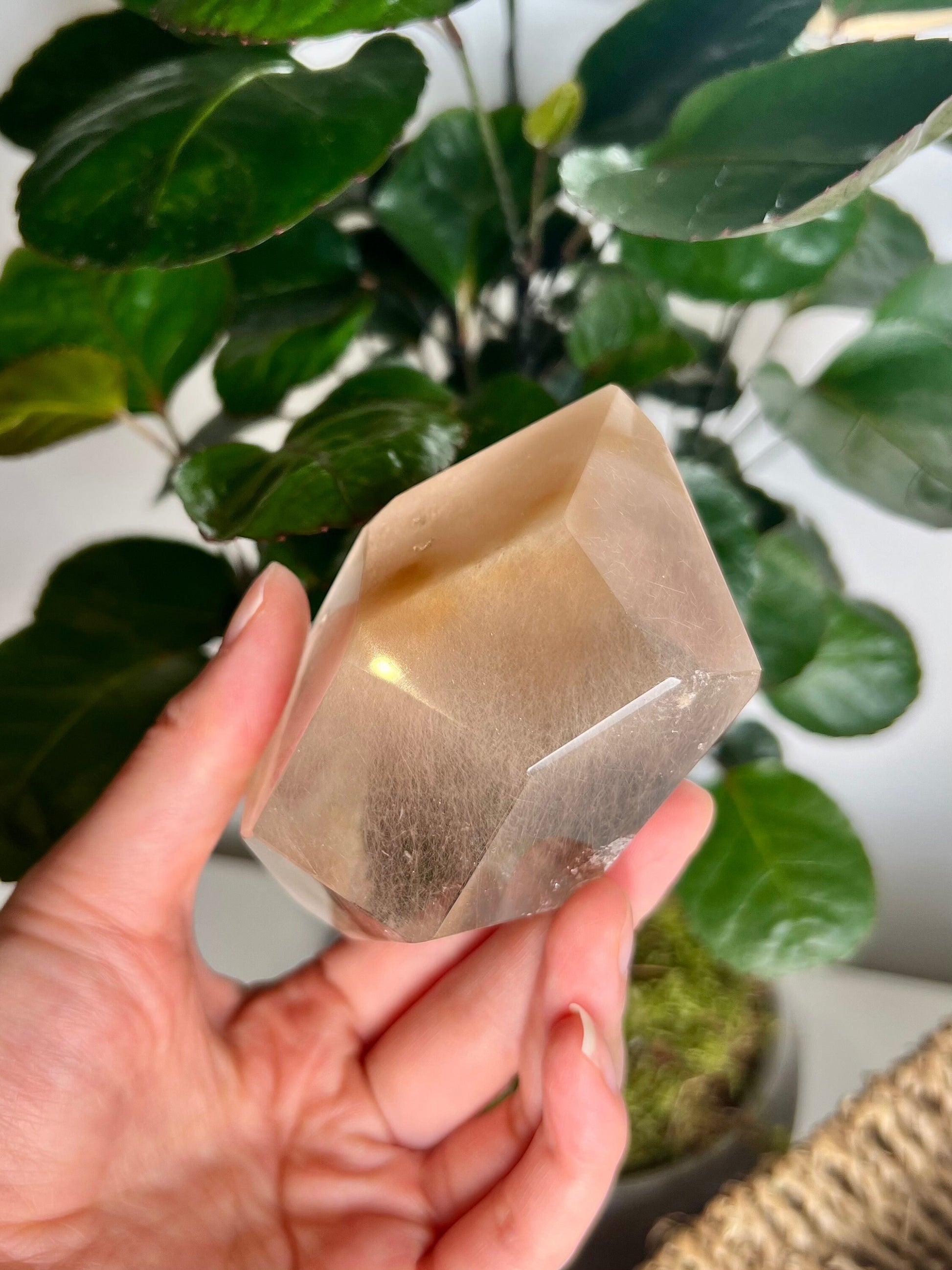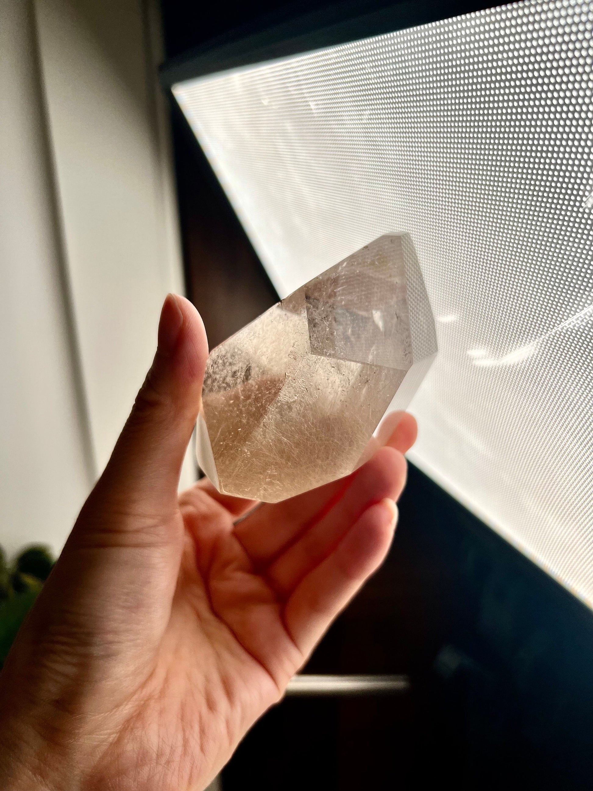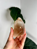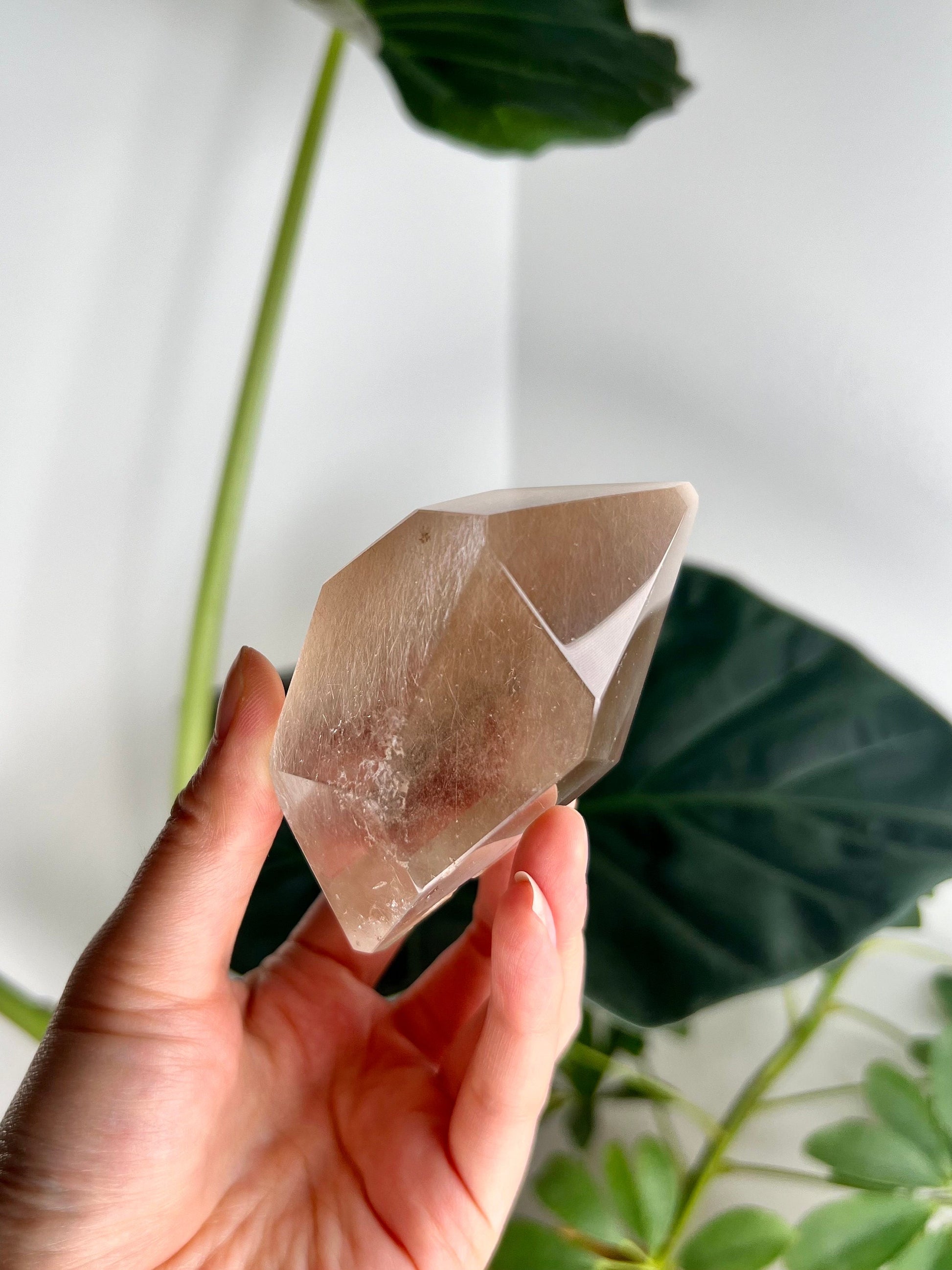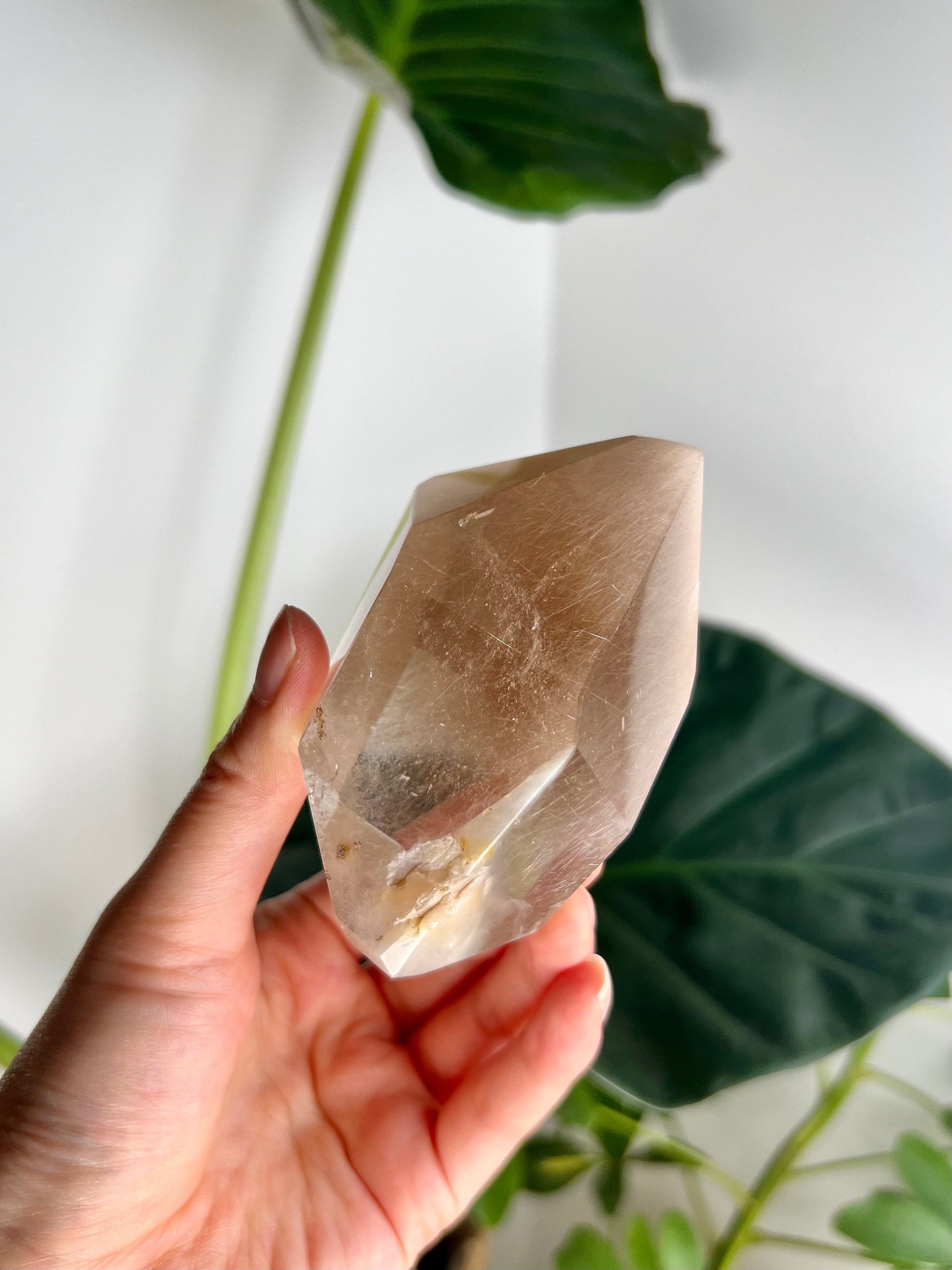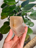 Amphibole Quartz, often referred to as Angel Phantom Quartz, is known for its angelic appearance and high vibrational energy. The presence of inclusions such as pink, golden, and silver amphibole, as well as fine hair-like rutile, enhances the crystal's ability to connect with higher realms and angelic guidance. The combination of these colours, especially the elegant peach hue formed by golden and pink amphibole together, adds a unique aesthetic and energy to each piece.