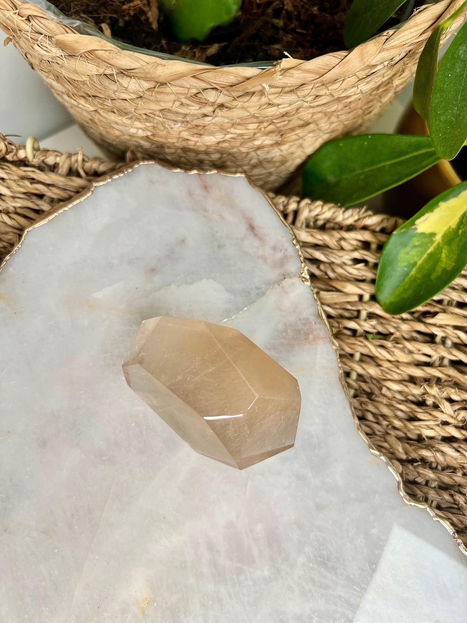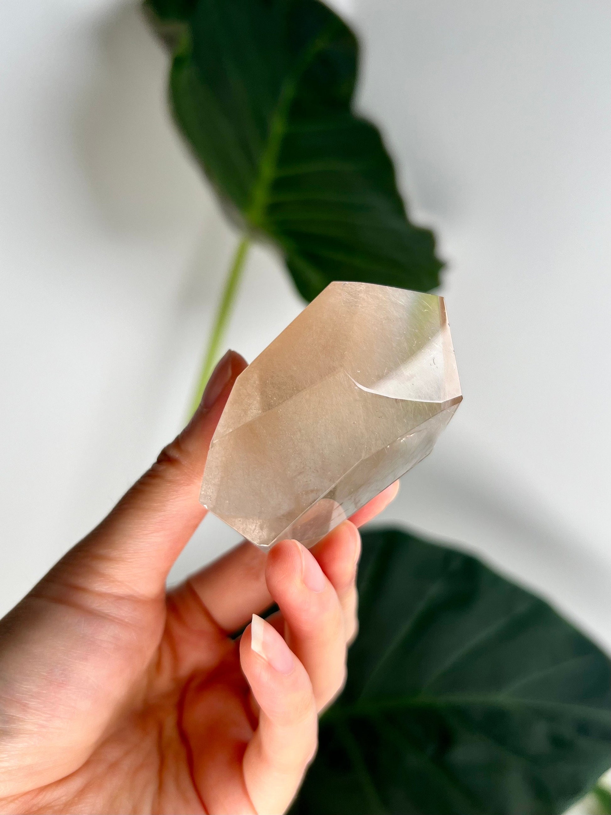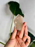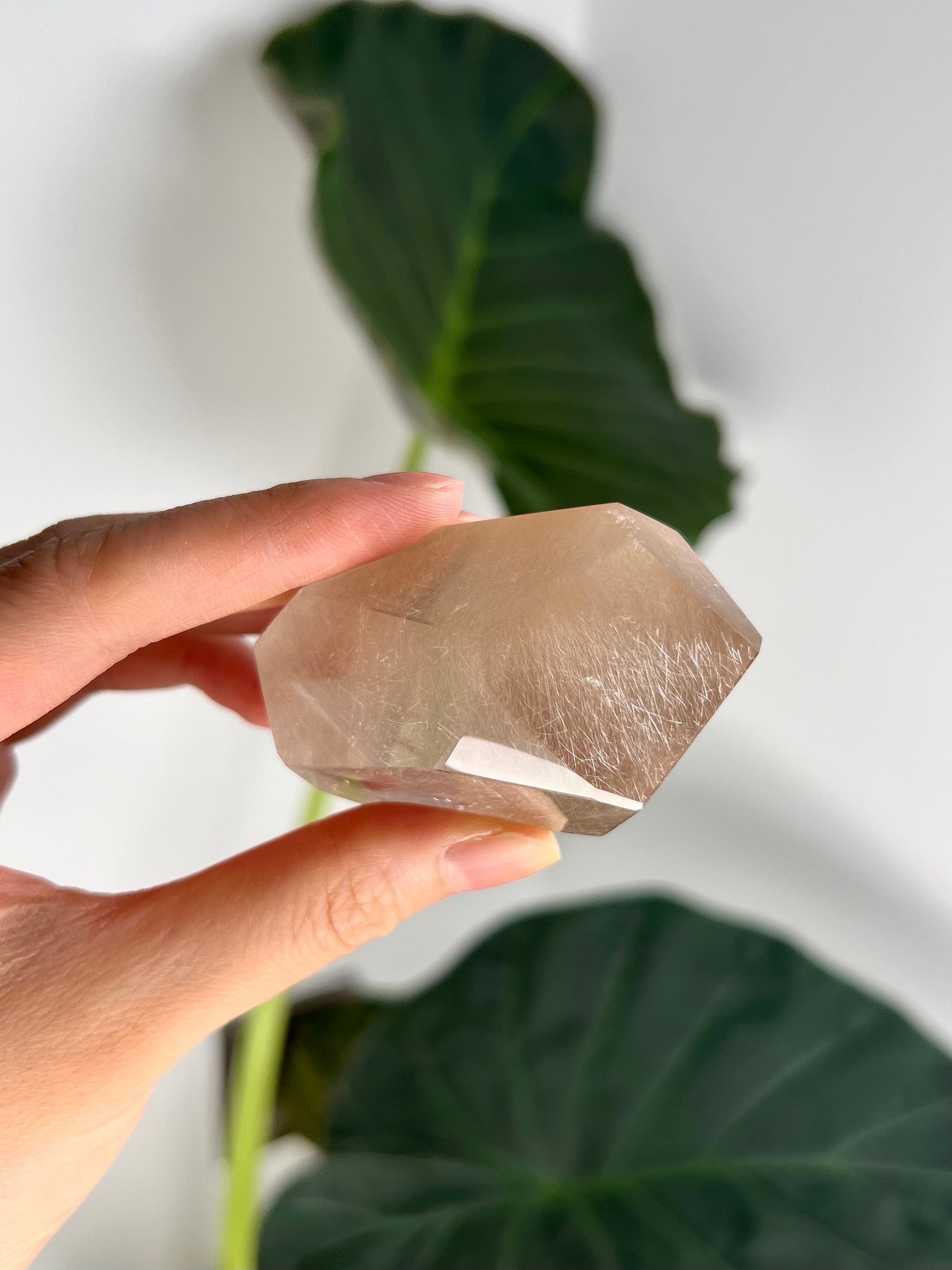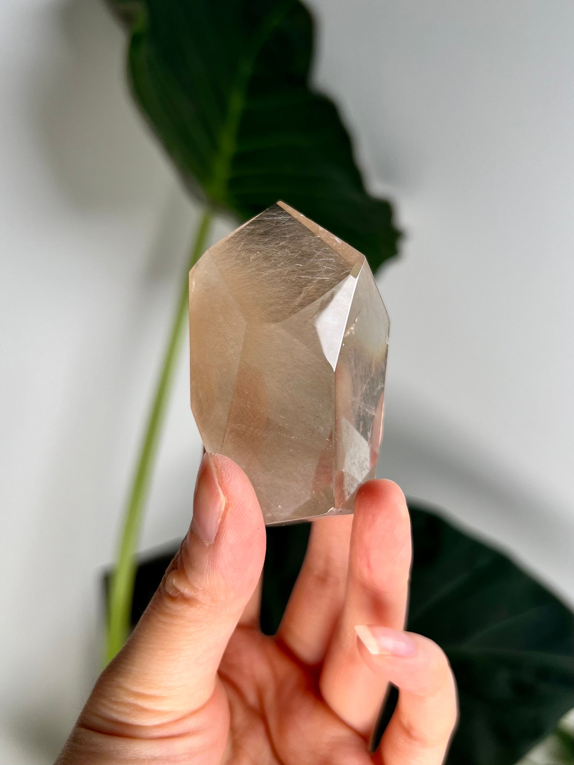 Amphibole Quartz, often referred to as Angel Phantom Quartz, is known for its angelic appearance and high vibrational energy. The presence of inclusions such as pink, golden, and silver amphibole, as well as fine hair-like rutile, enhances the crystal's ability to connect with higher realms and angelic guidance. The combination of these colours, especially the elegant peach hue formed by golden and pink amphibole together, adds a unique aesthetic and energy to each piece.
