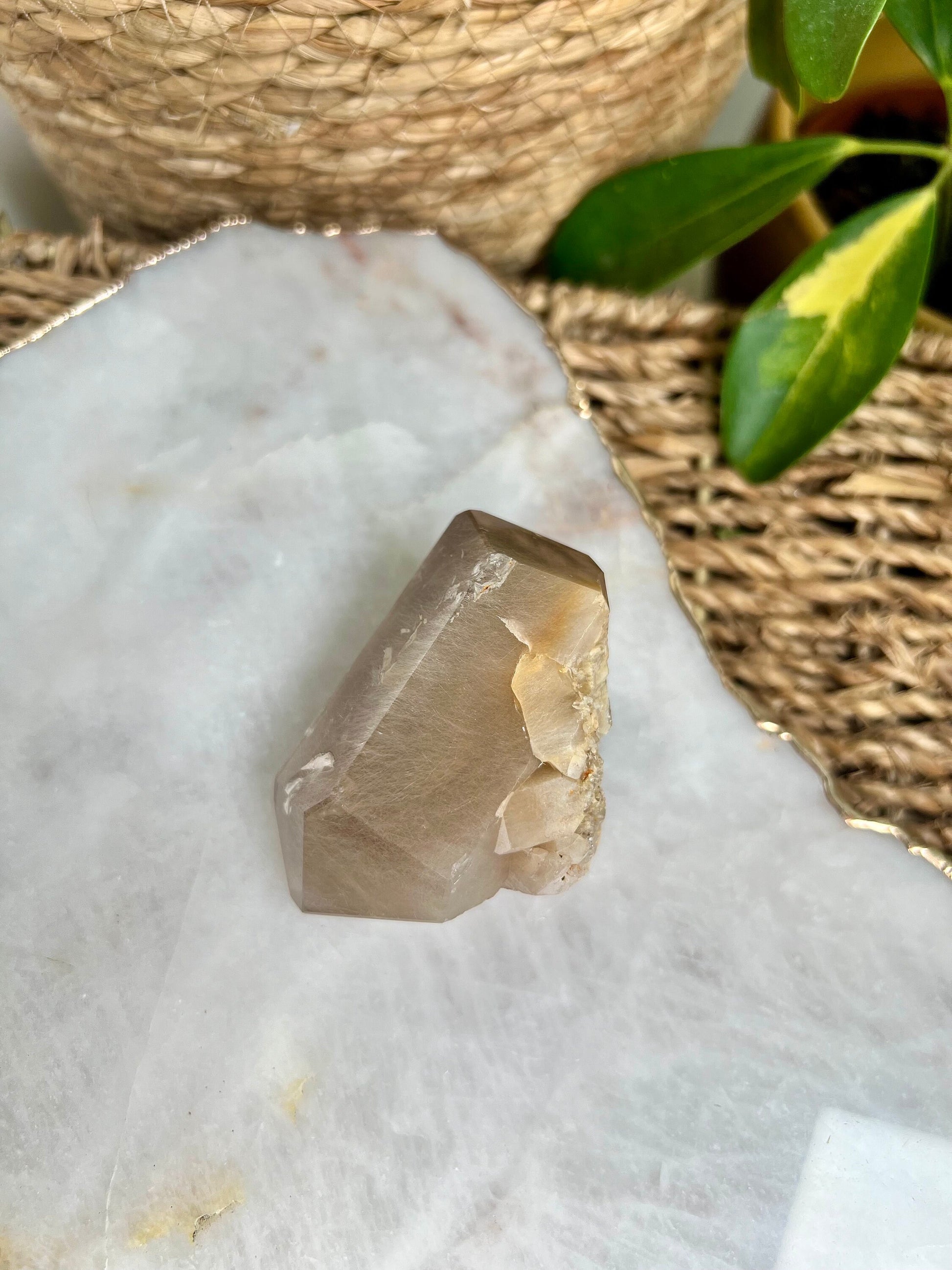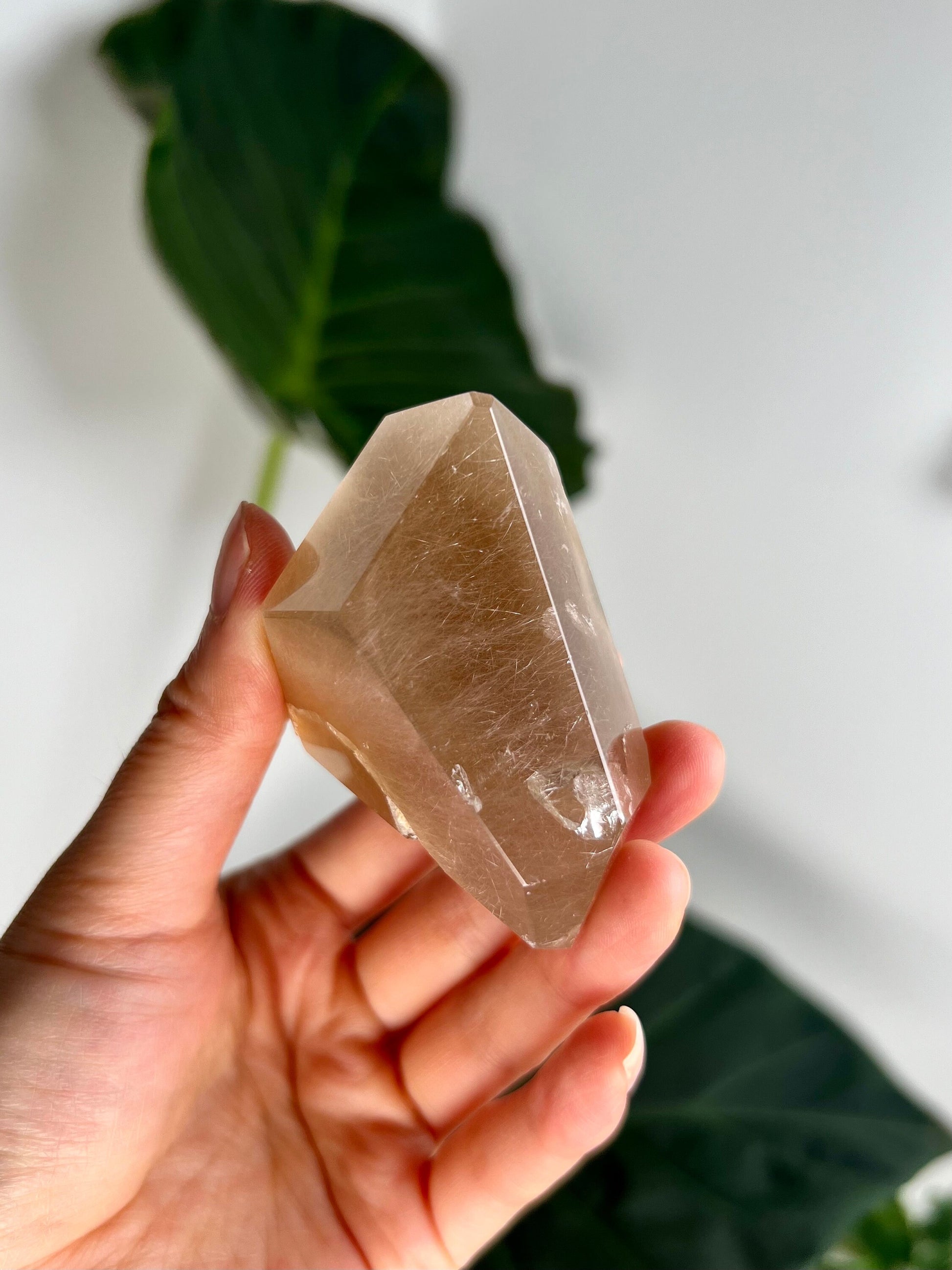 Amphibole Quartz, often referred to as Angel Phantom Quartz, is known for its angelic appearance and high vibrational energy. The presence of inclusions such as pink, golden, and silver amphibole, as well as fine hair-like rutile, enhances the crystal's ability to connect with higher realms and angelic guidance. The combination of these colours, especially the elegant peach hue formed by golden and pink amphibole together, adds a unique aesthetic and energy to each piece.