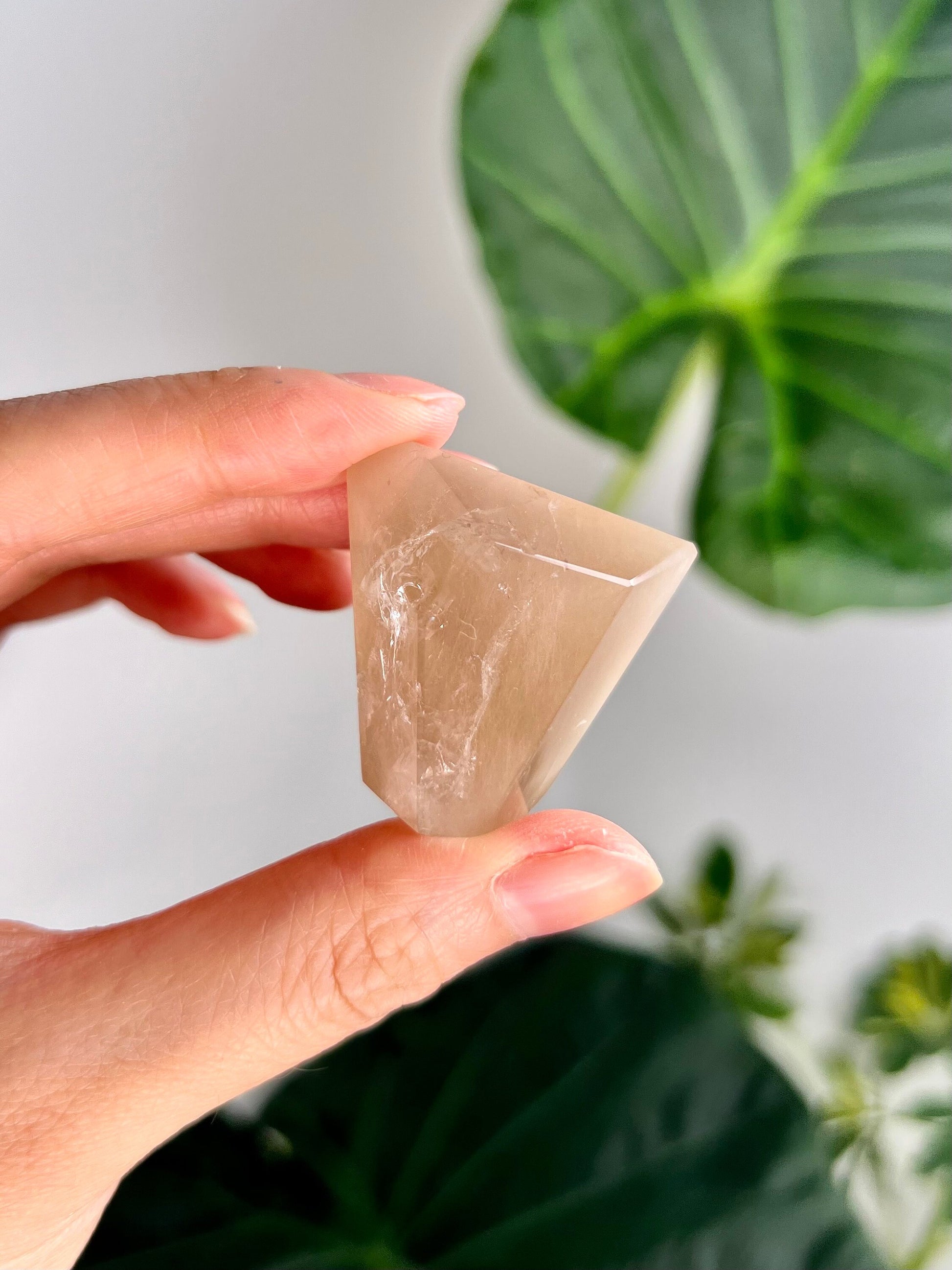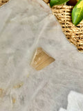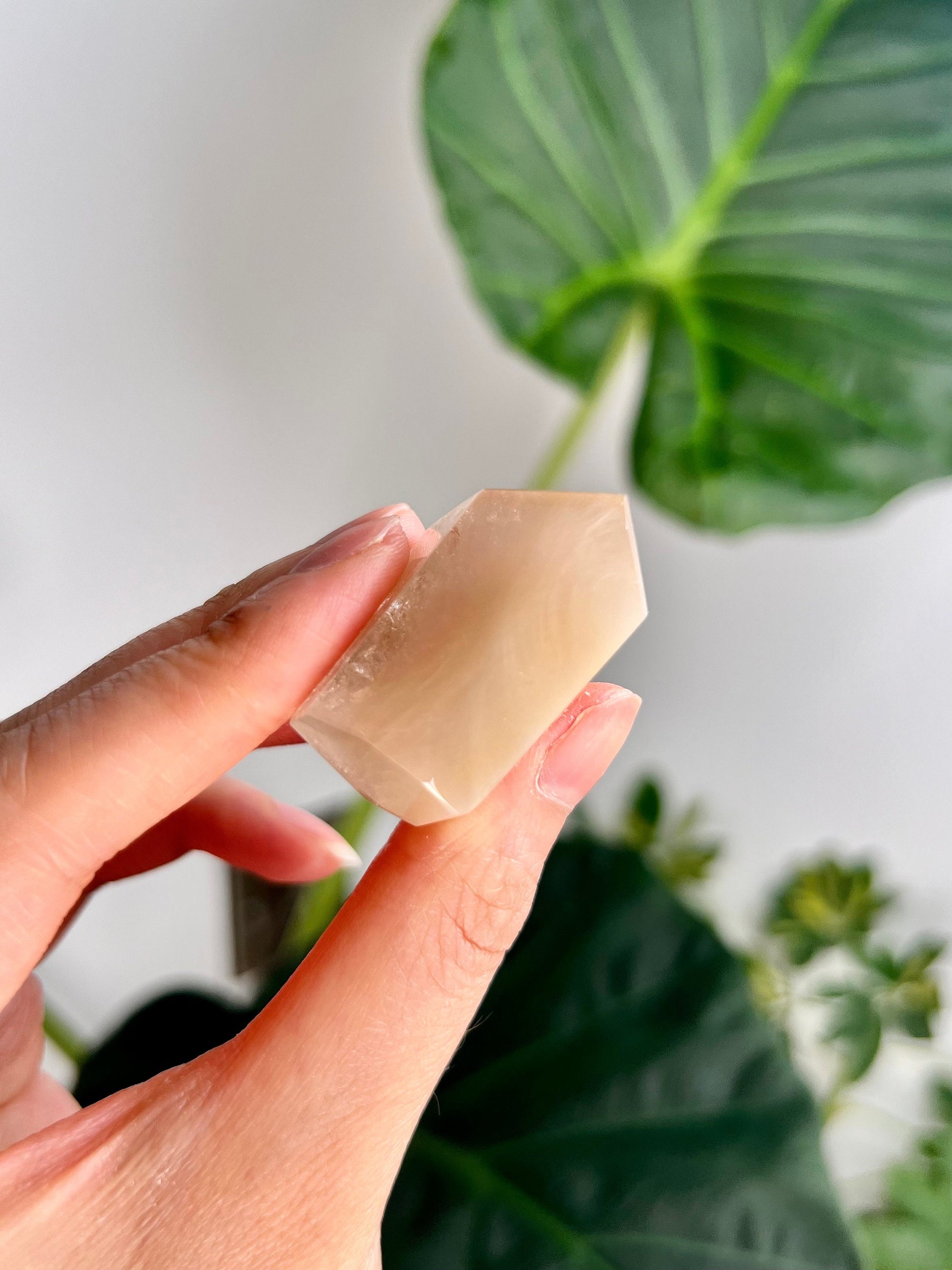 Amphibole Quartz, often referred to as Angel Phantom Quartz, is known for its angelic appearance and high vibrational energy. The presence of inclusions such as pink, golden, and silver amphibole, as well as fine hair-like rutile, enhances the crystal's ability to connect with higher realms and angelic guidance. The combination of these colours, especially the elegant peach hue formed by golden and pink amphibole together, adds a unique aesthetic and energy to each piece.