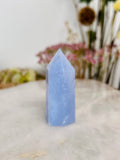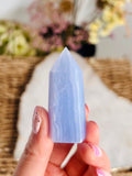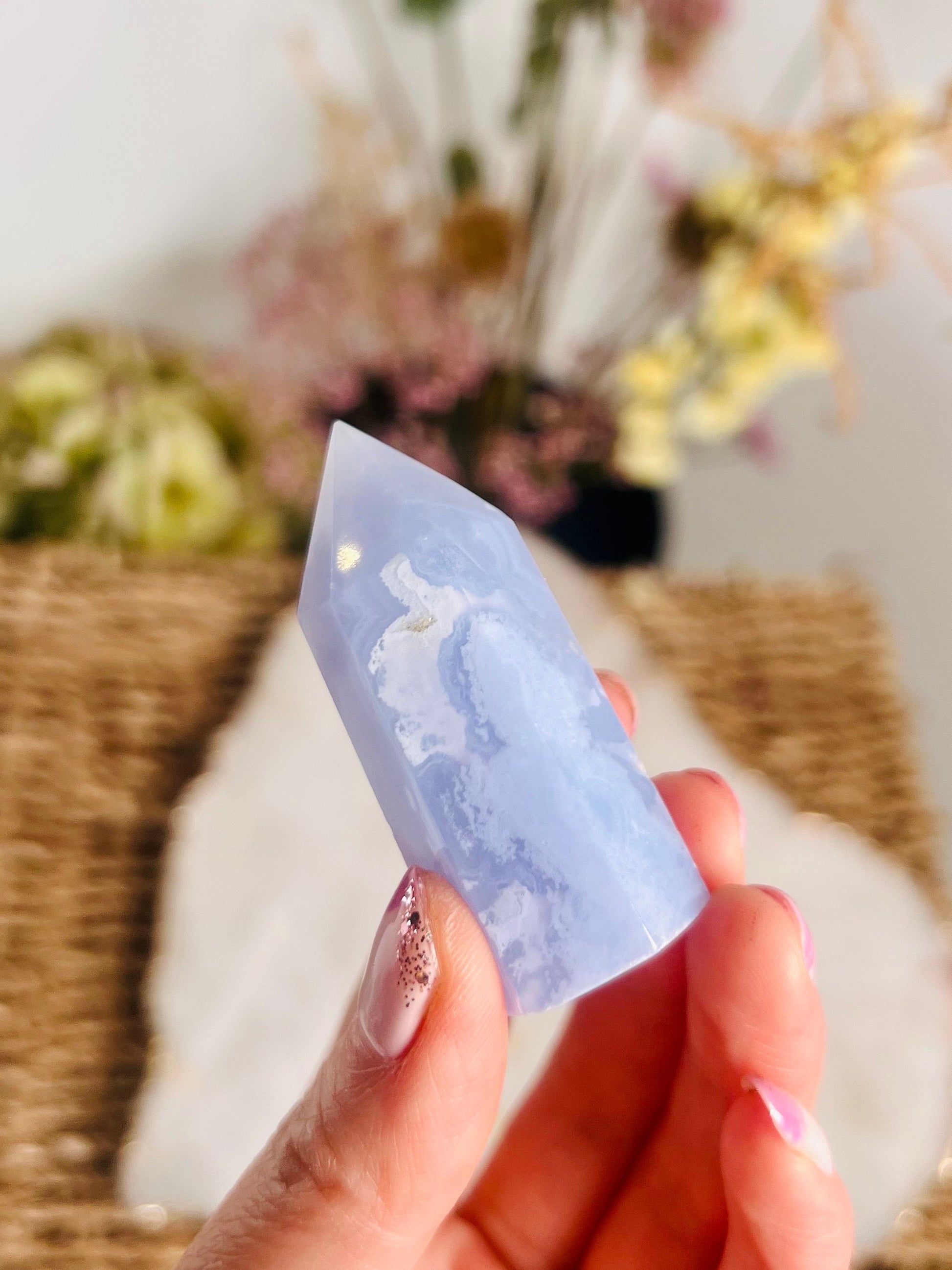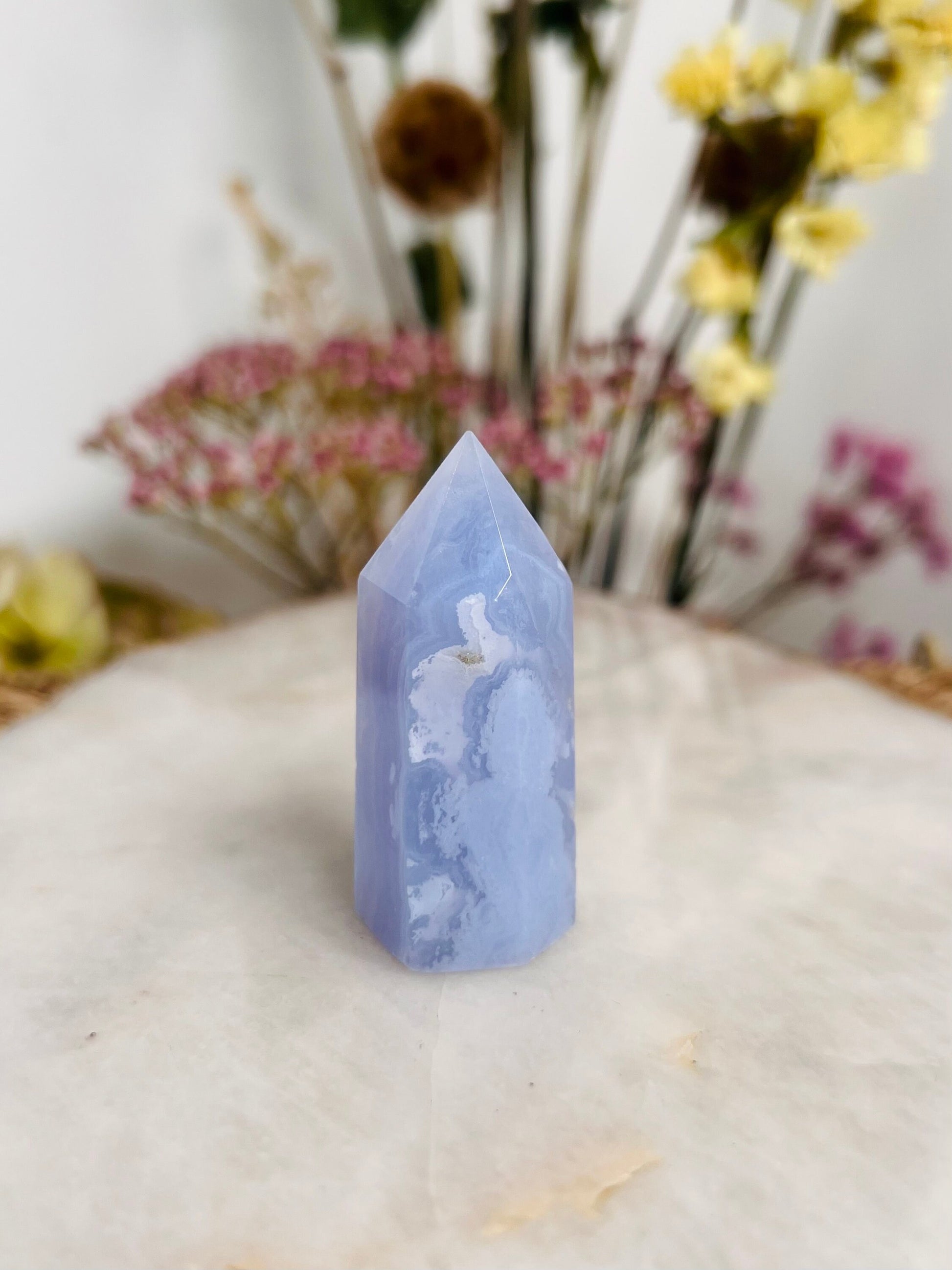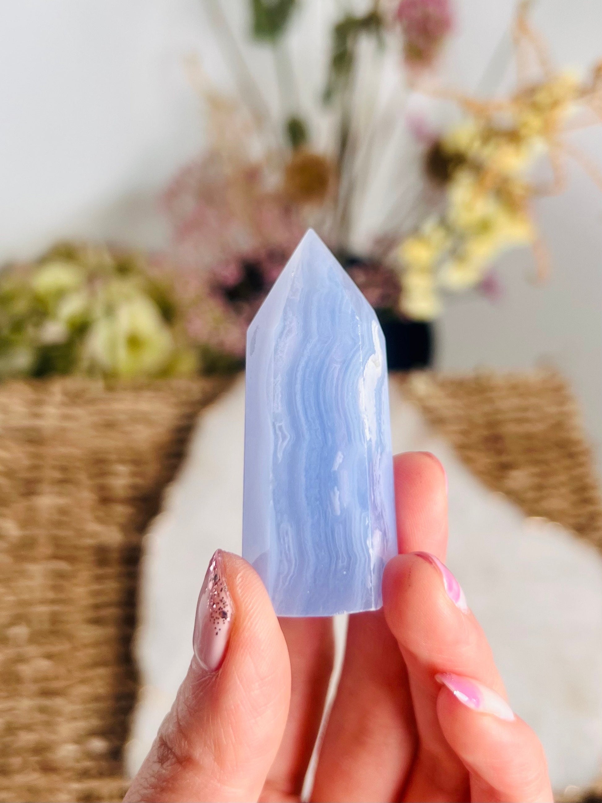 Grade AAA Natural Blue Lace Agate Tower from Namibia, Healing Crystal Home Decor 37g, Banded Chalcedony, Heart & Throat Chakra BLA17