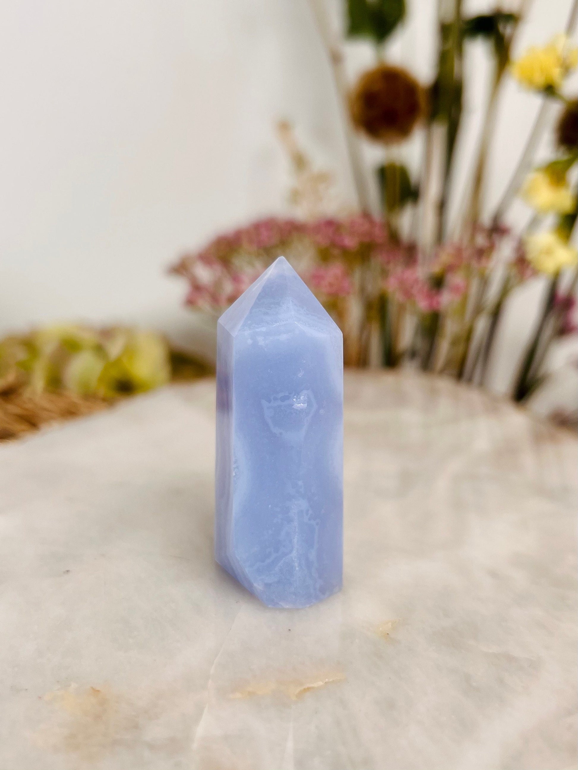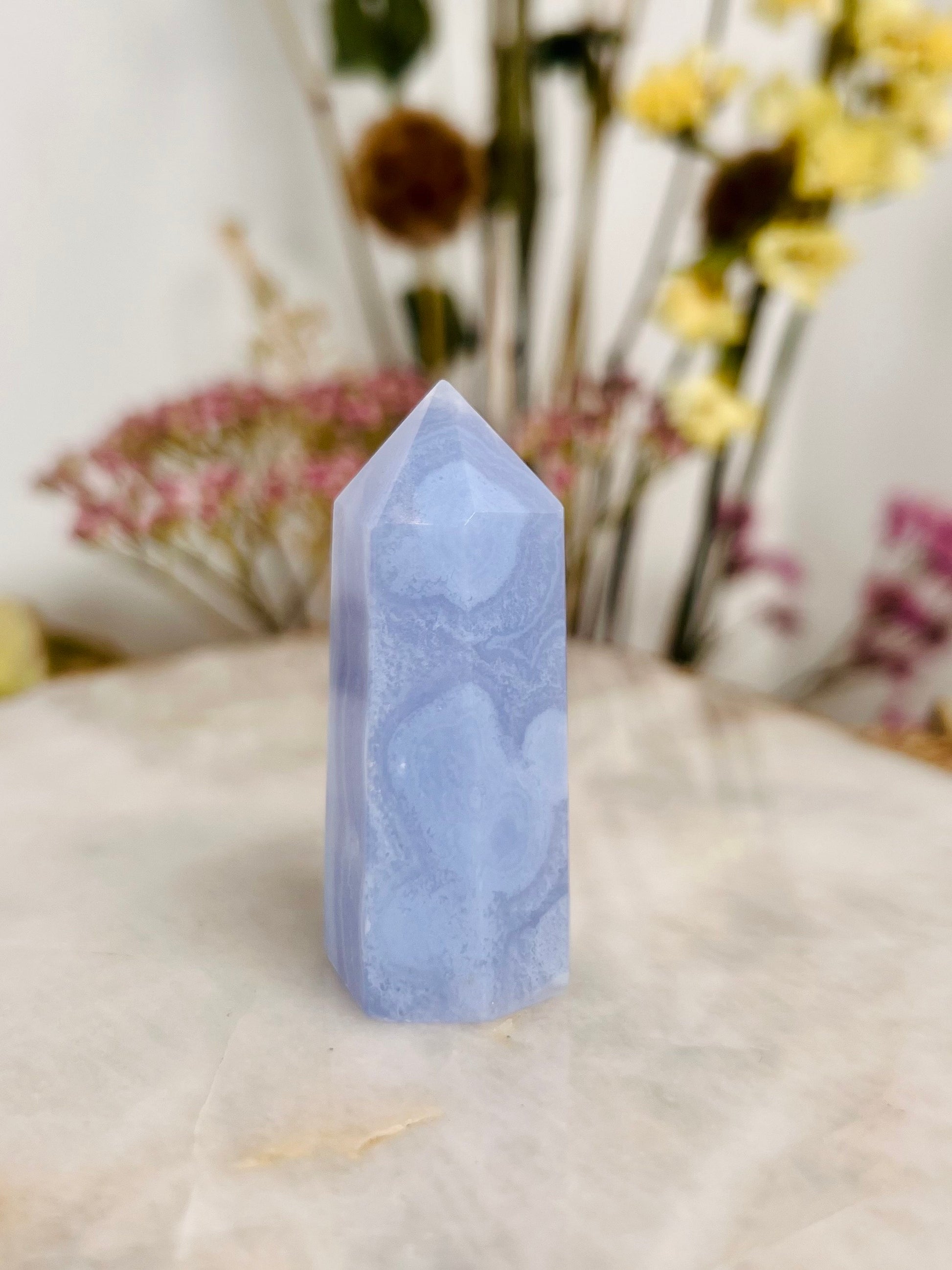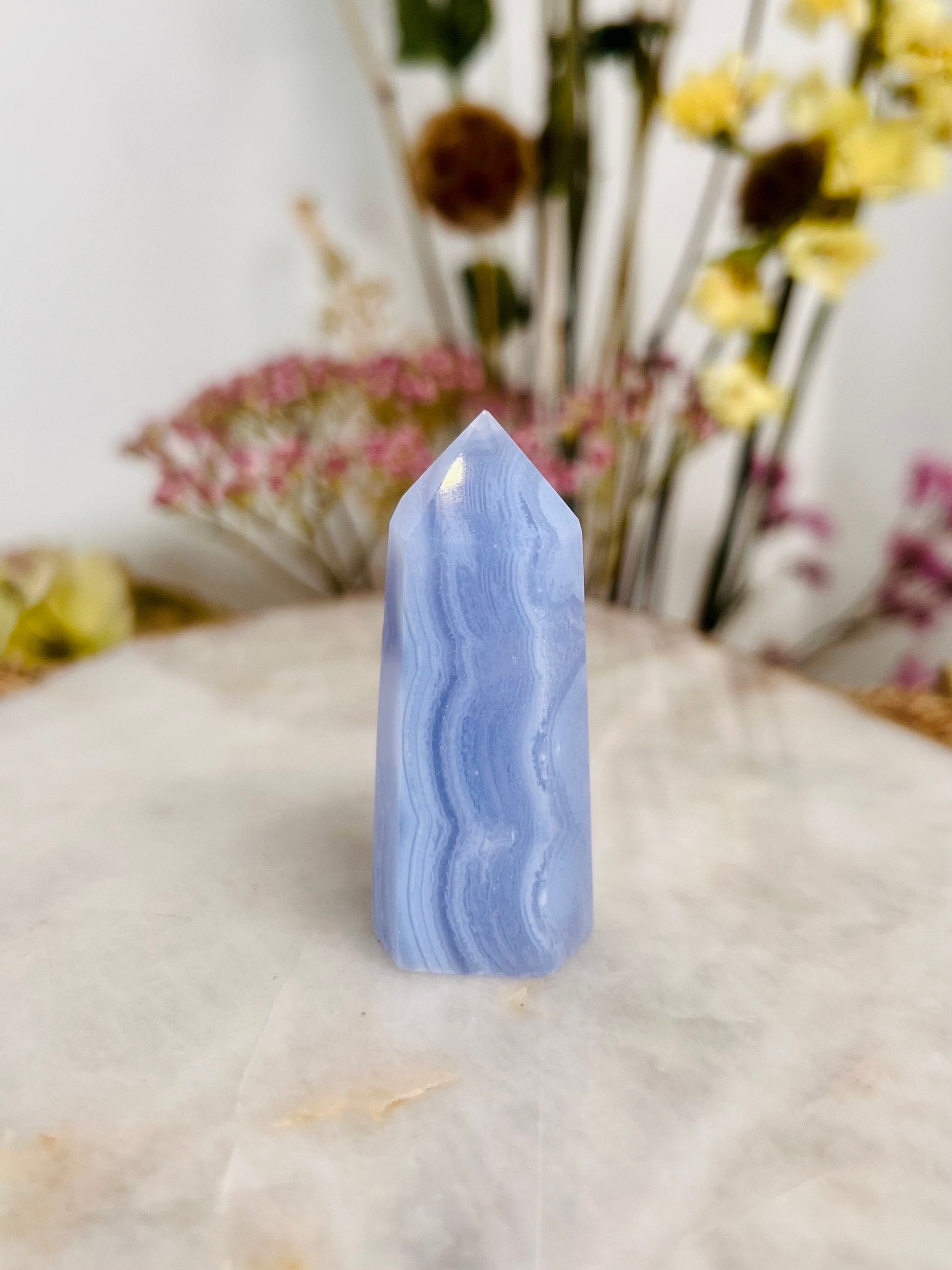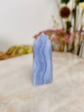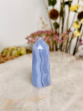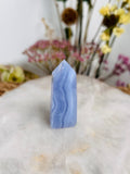 Grade AAA Natural Blue Lace Agate Tower from Namibia, Healing Crystal Home Decor 39g, Banded Chalcedony, Heart & Throat Chakra BLA18