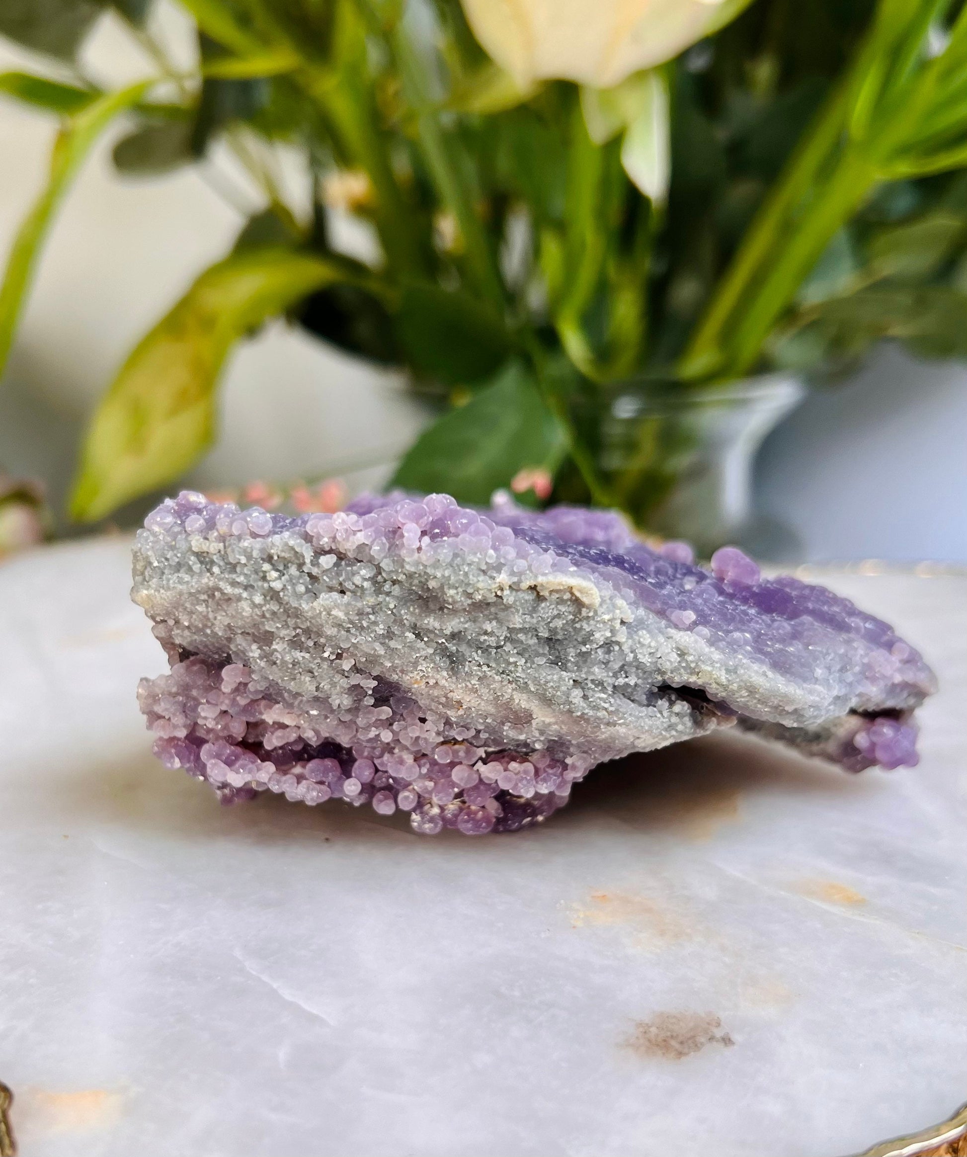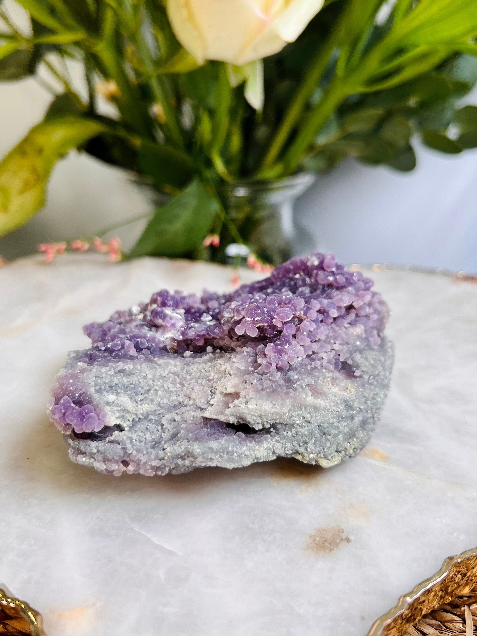 This crystal is perfect for all mediums, channelers, scribes, massage therapists , reiki professionals and any type of energy healers. This stone vibrates at such a high frequency and allows one to transition between this realm and higher realms with ease. This stone's intuitive abilities also help the worker get in contact with spirit guides, guardian angels, and other powerful beings. When working with this stone we suggest using Angelite, Phenacite, or Selenite alongside it. All these stones will enhance the strength of Grape Agate, while also helping one maintain much needed mental clarity.
