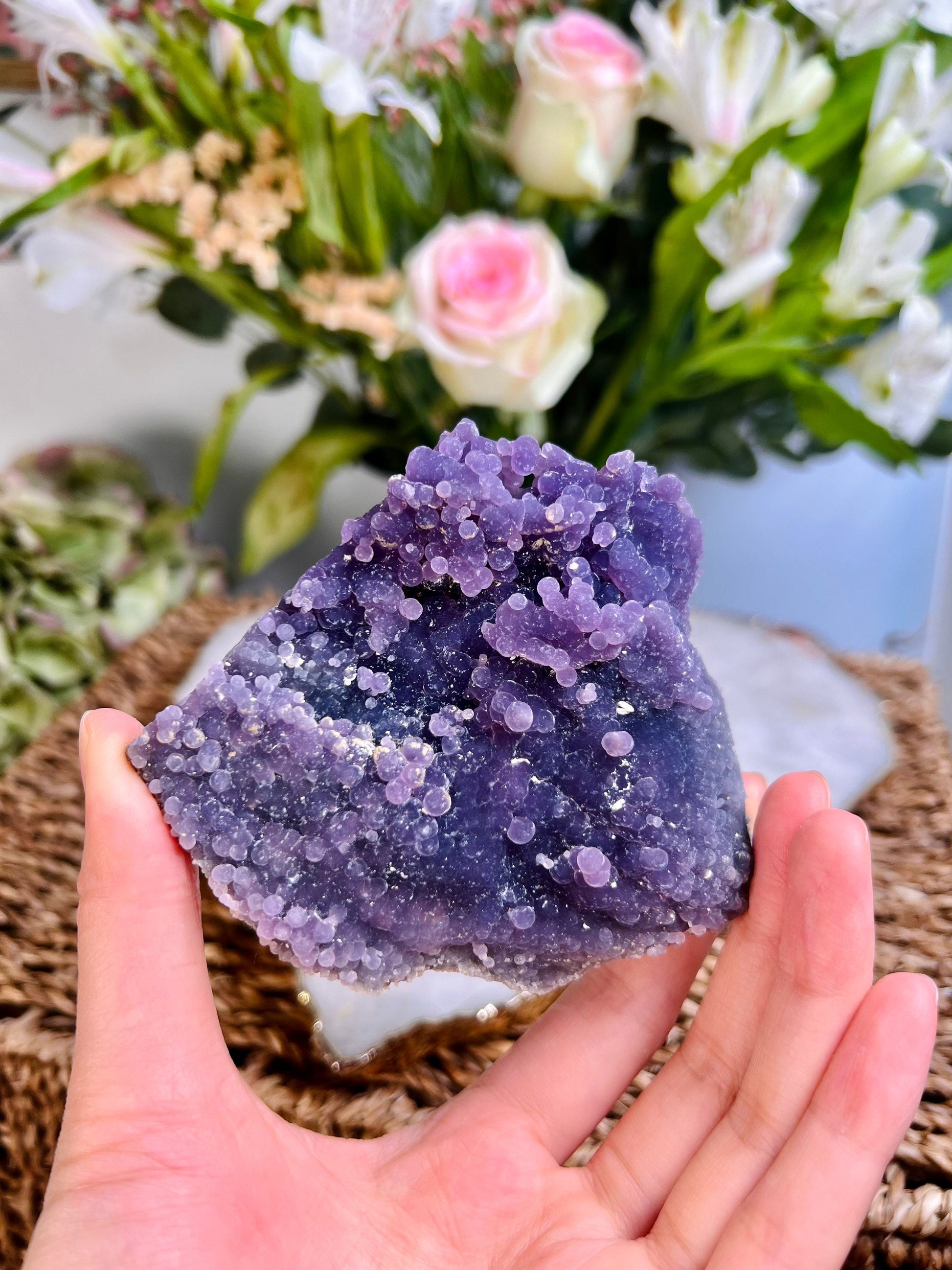 Grade AAA+ Natural Grape Agate from Indonesia, 245g, Natural Velvet Shine Bubbles in Real life, Healing Crystal Home Decor