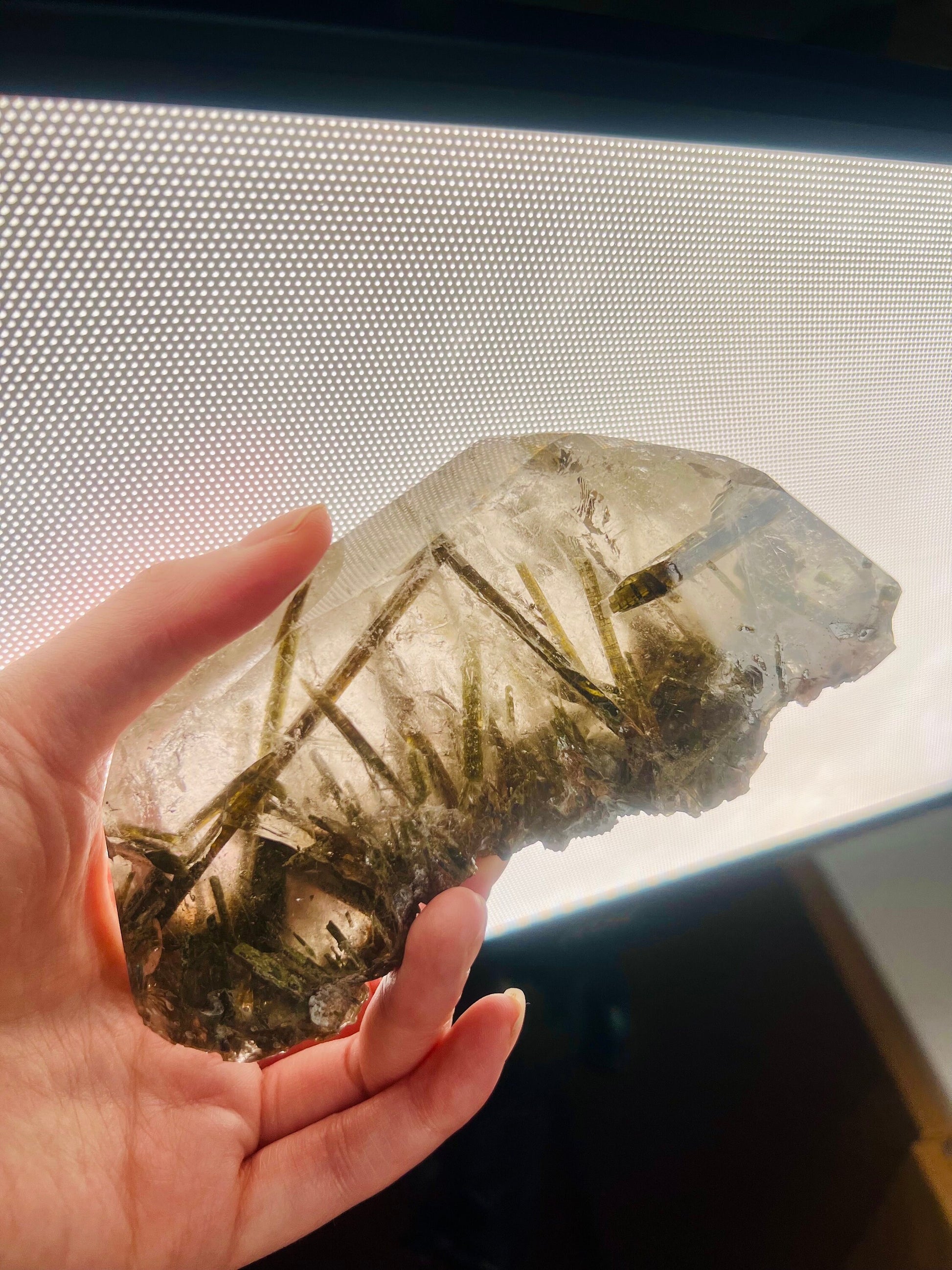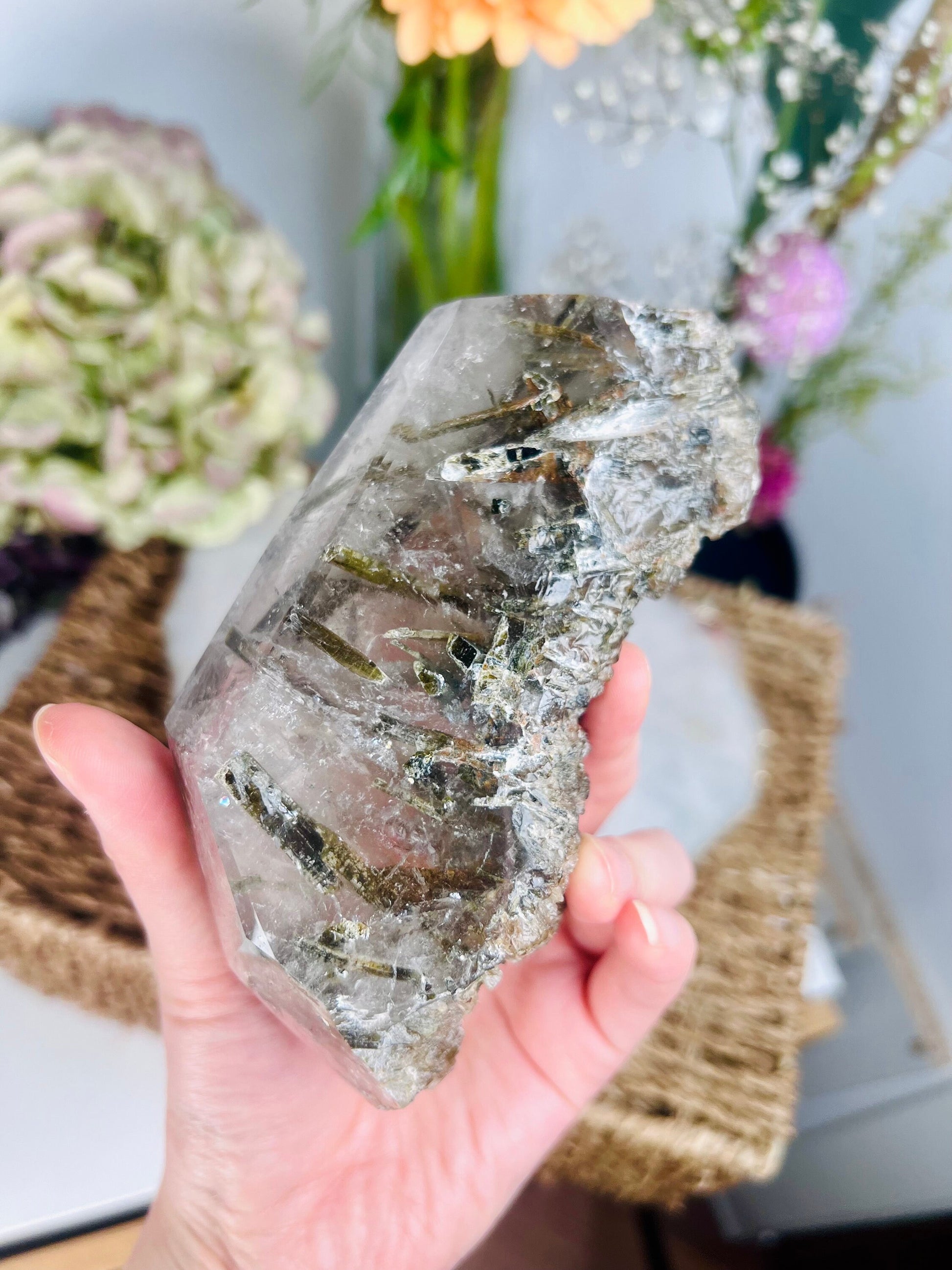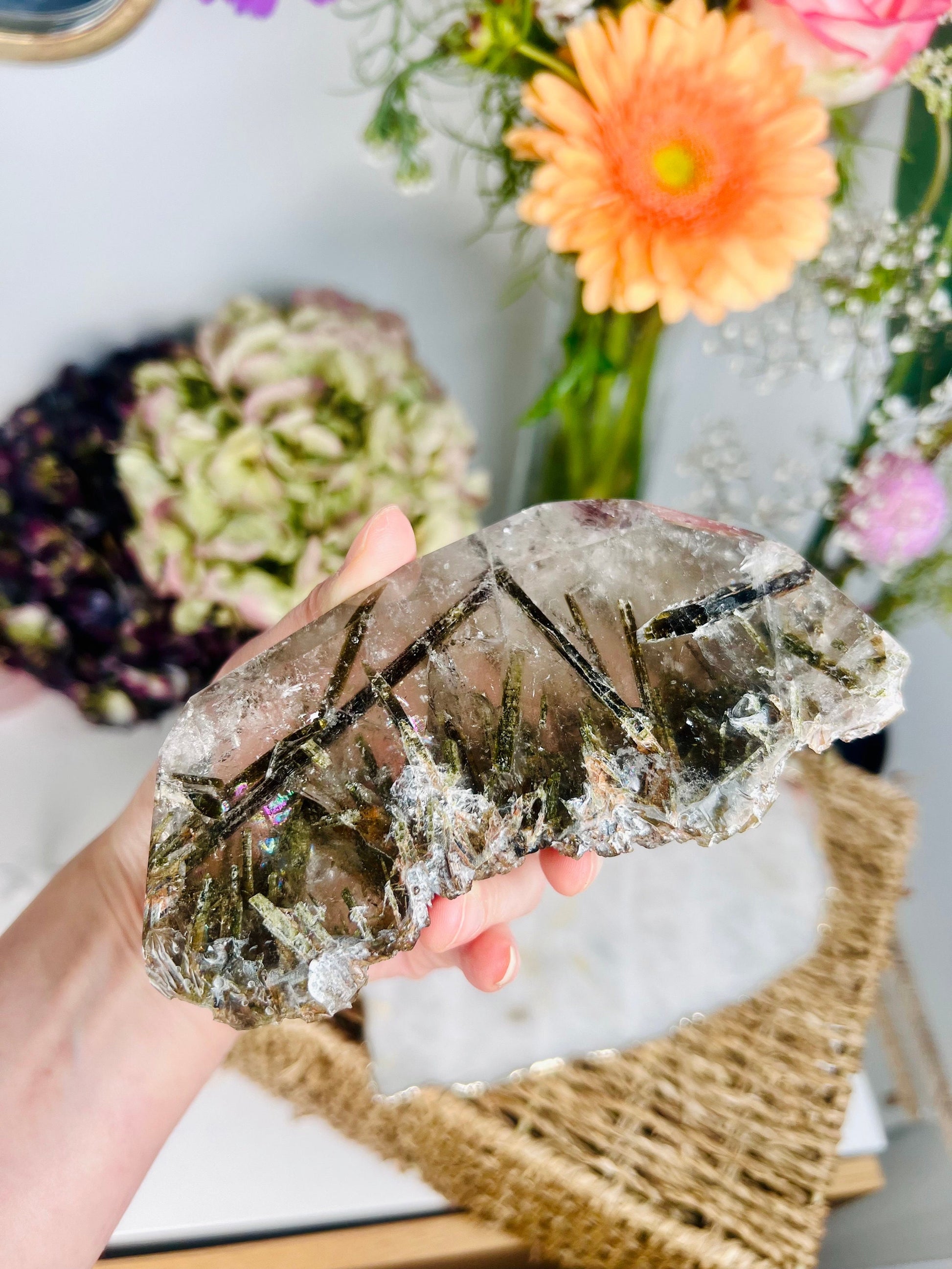 Grade AAA Natural Green Tourmaline Specimen in Quartz, Earth Healing, Grounding, Good Fortune, Crystal healing home decor 352g