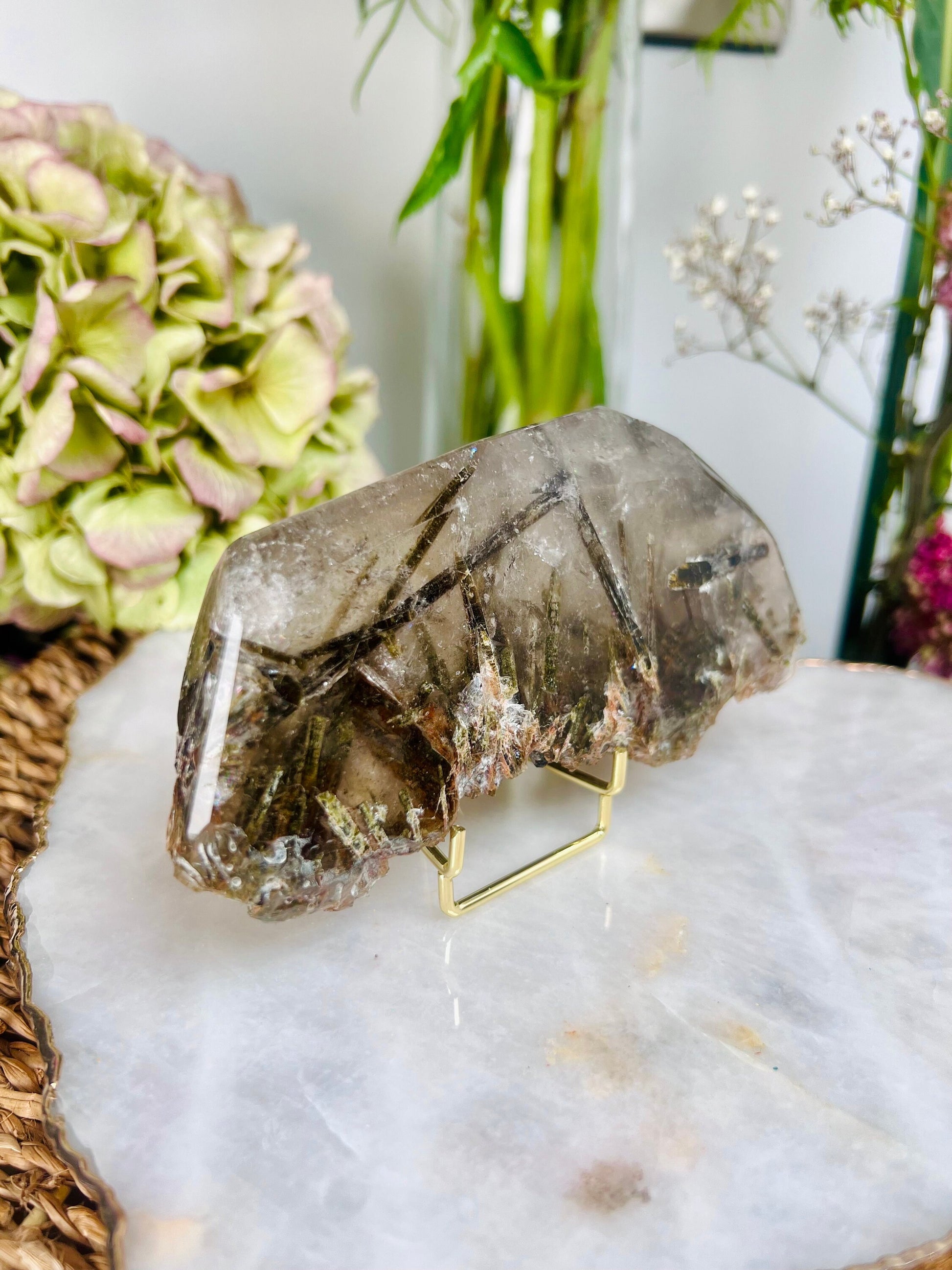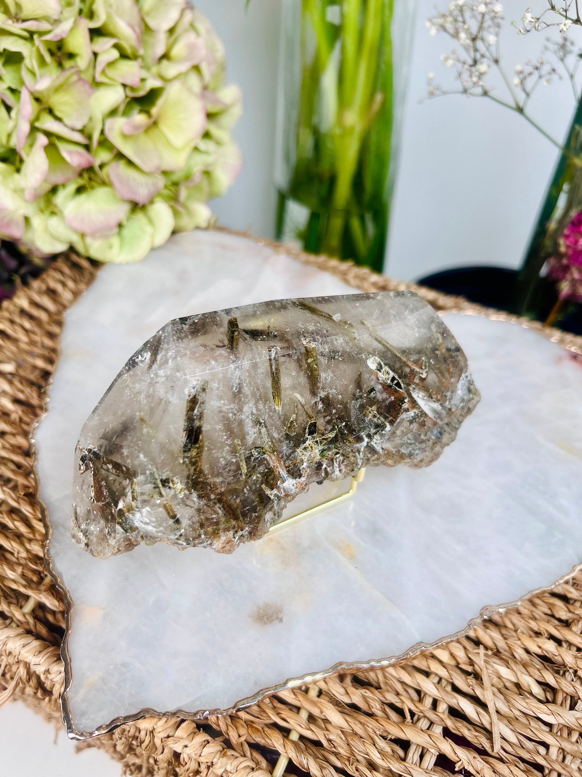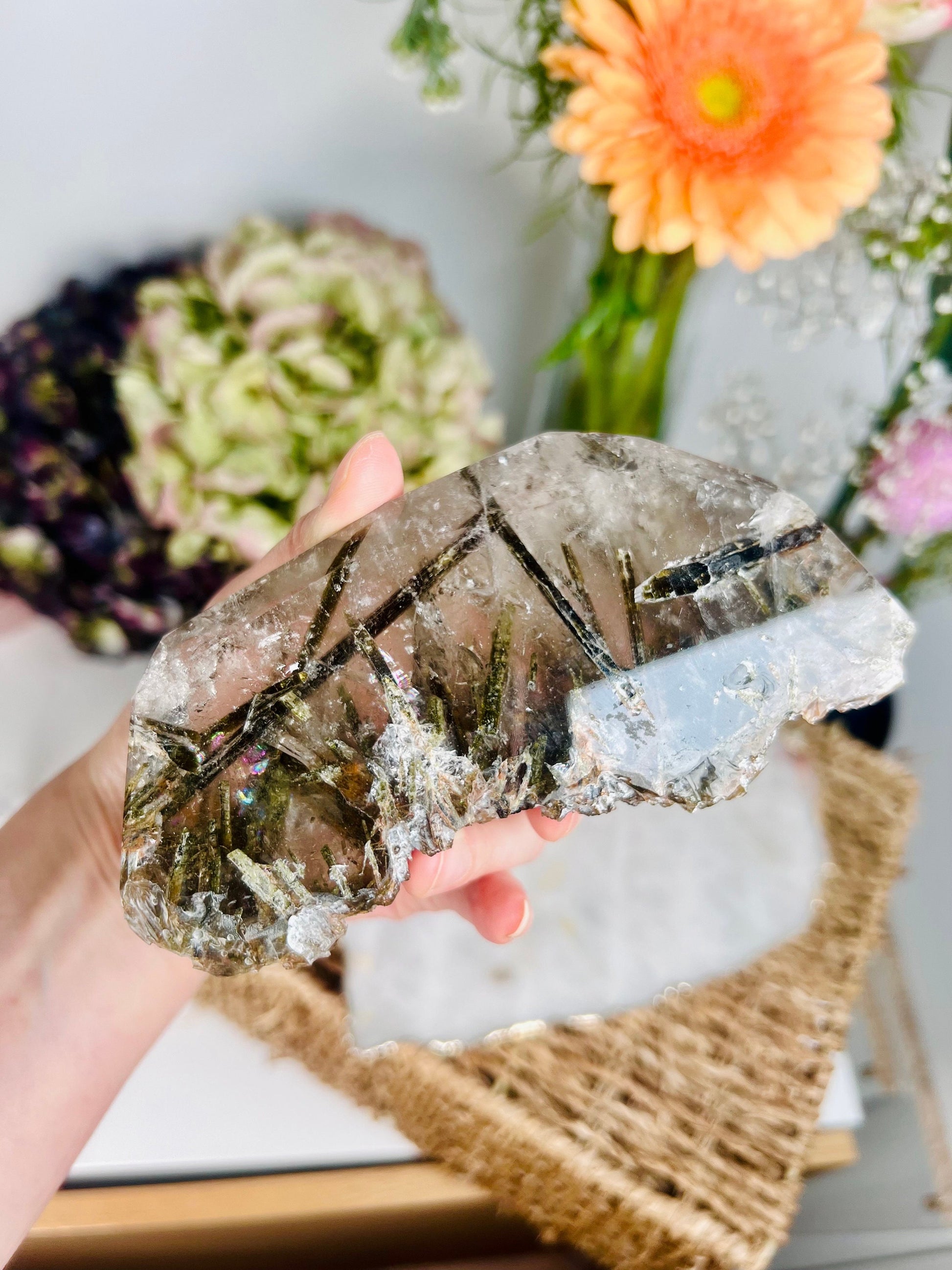 Grade AAA Natural Green Tourmaline Specimen in Quartz, Earth Healing, Grounding, Good Fortune, Crystal healing home decor 352g