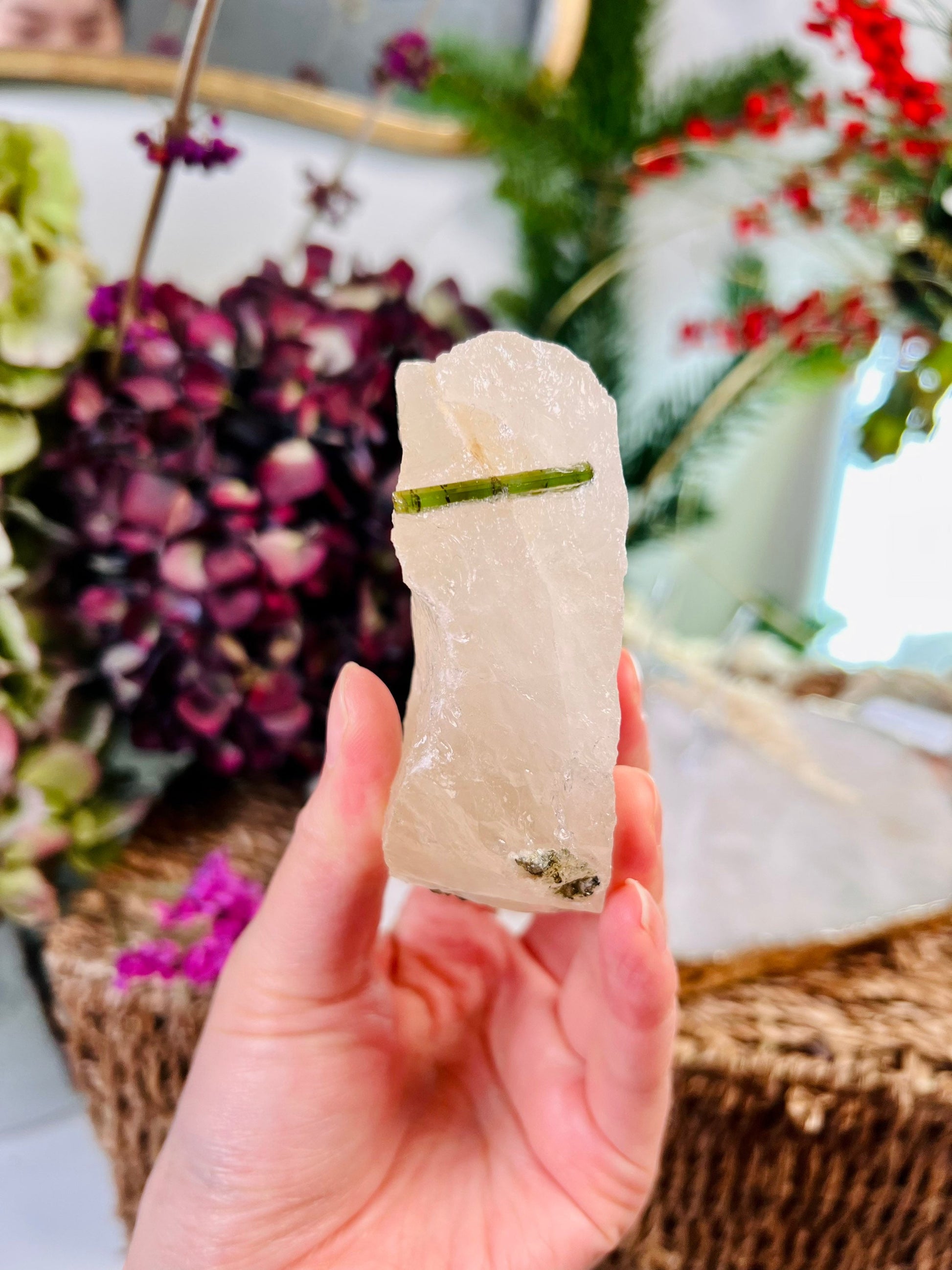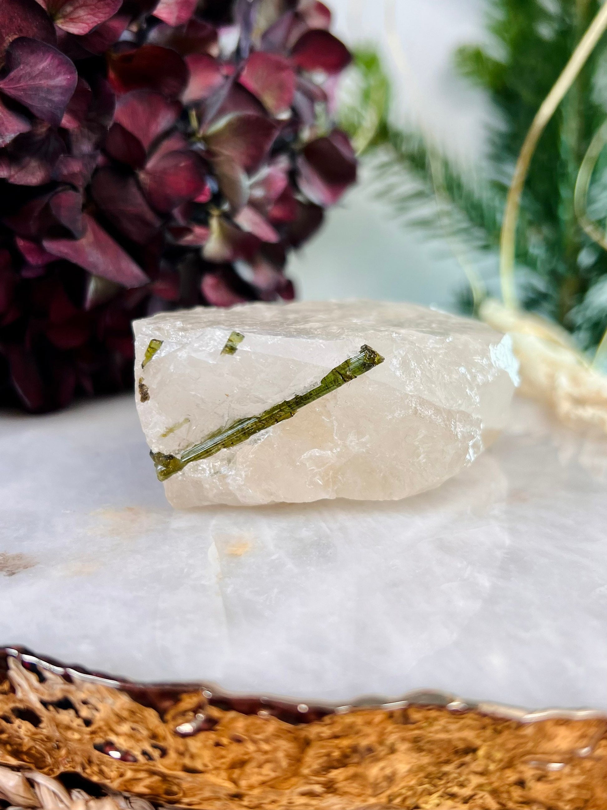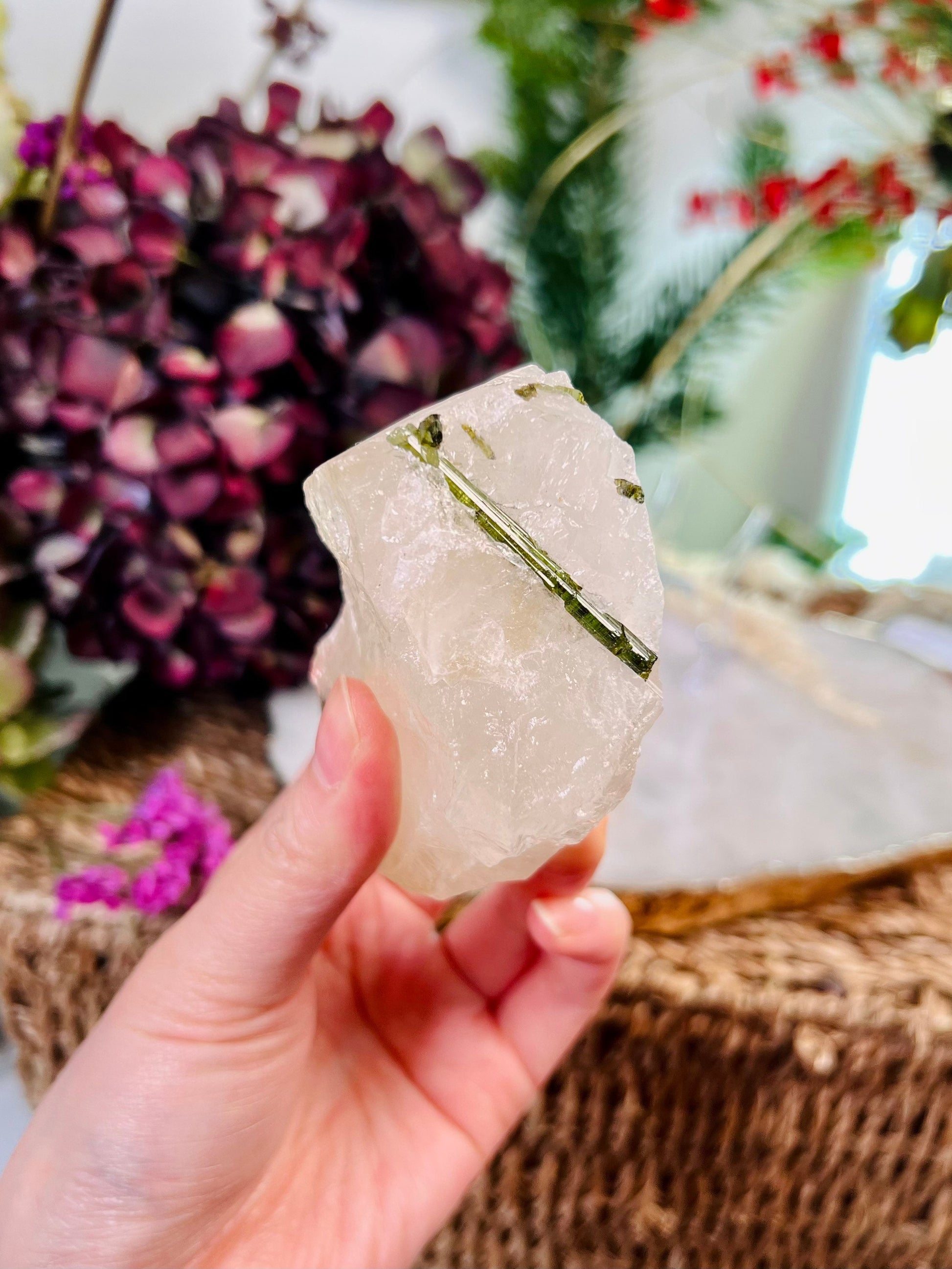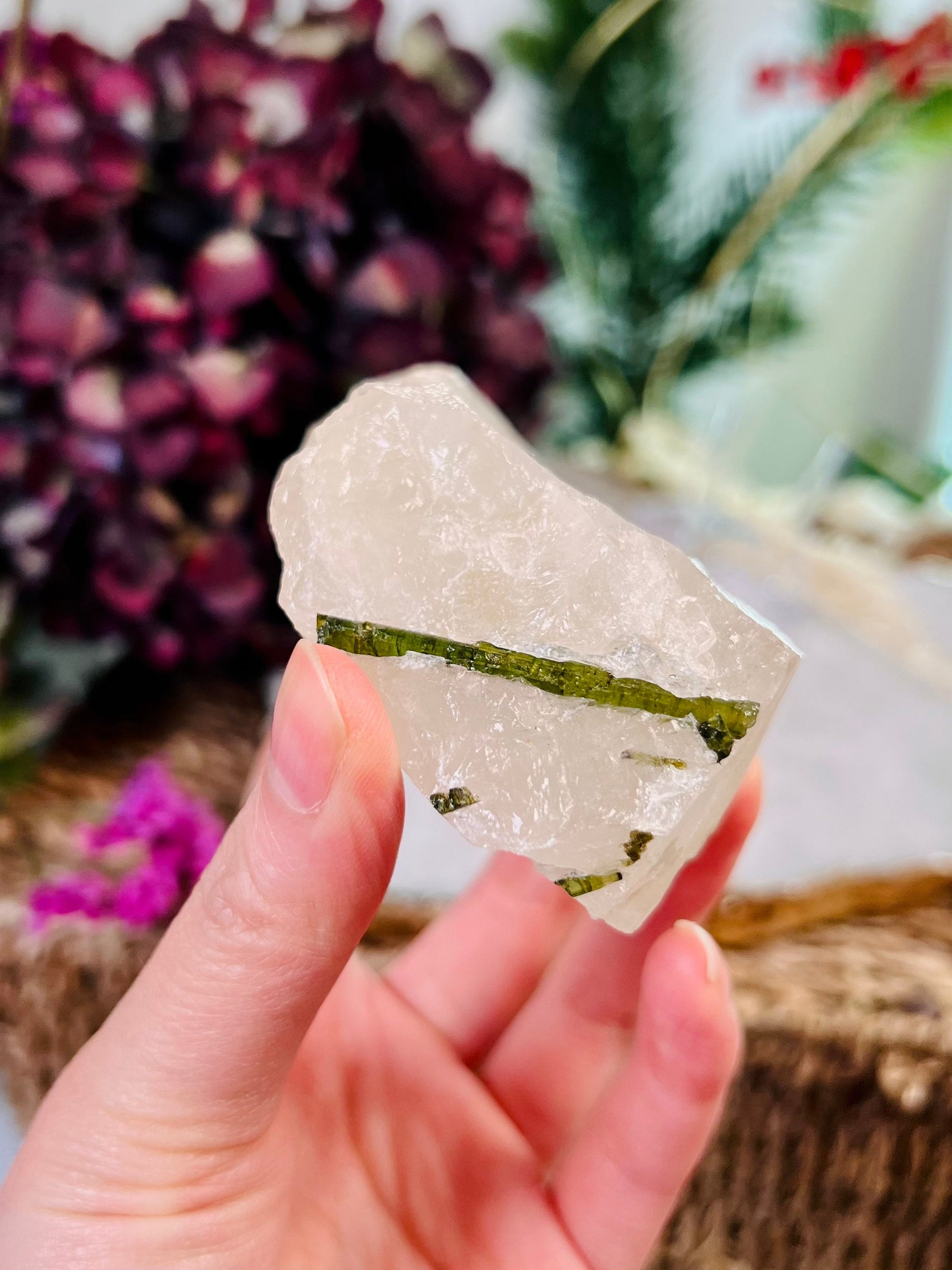 Grade AAA Natural Green Tourmaline Specimen on Quartz Crystal Healing