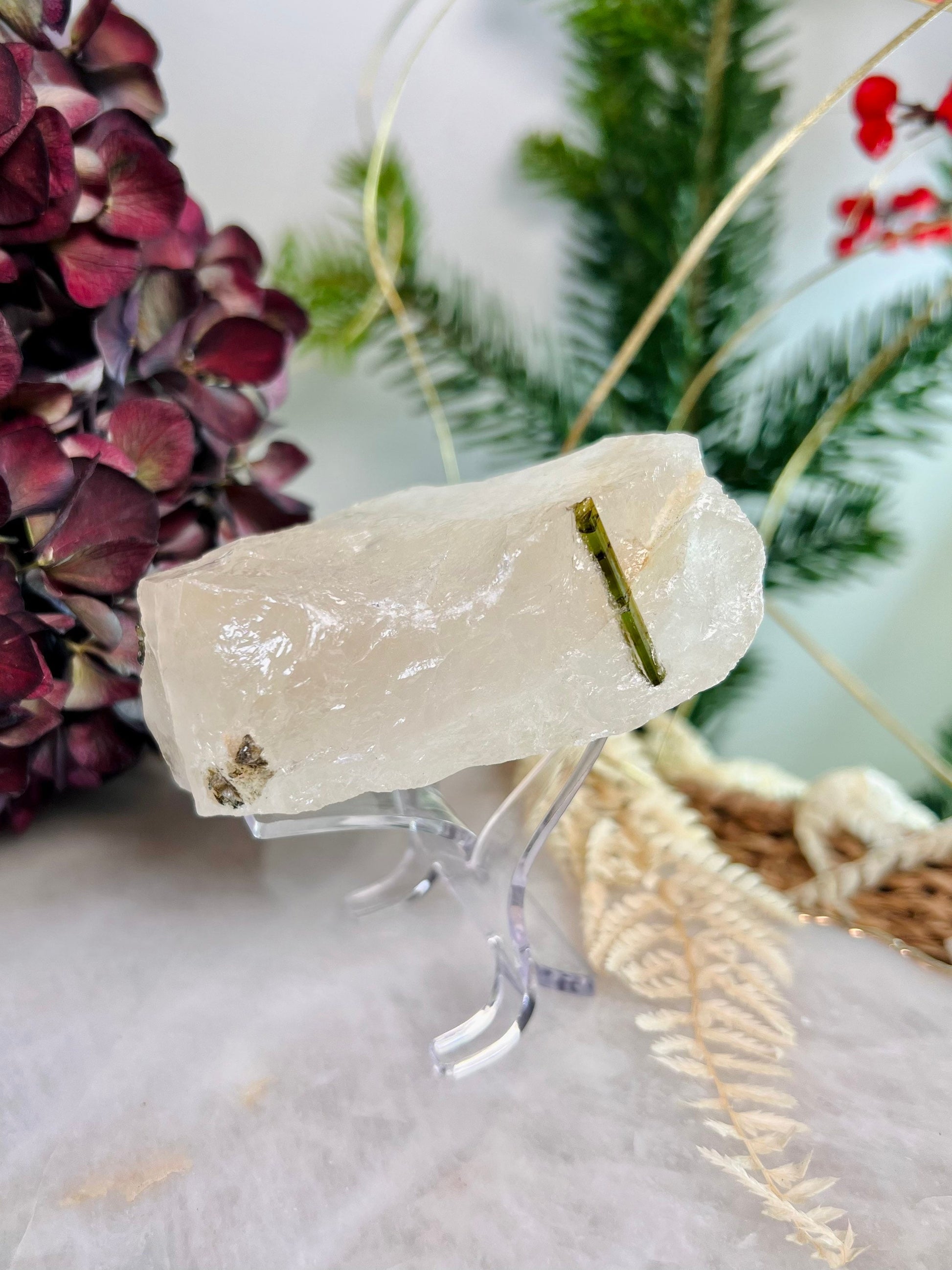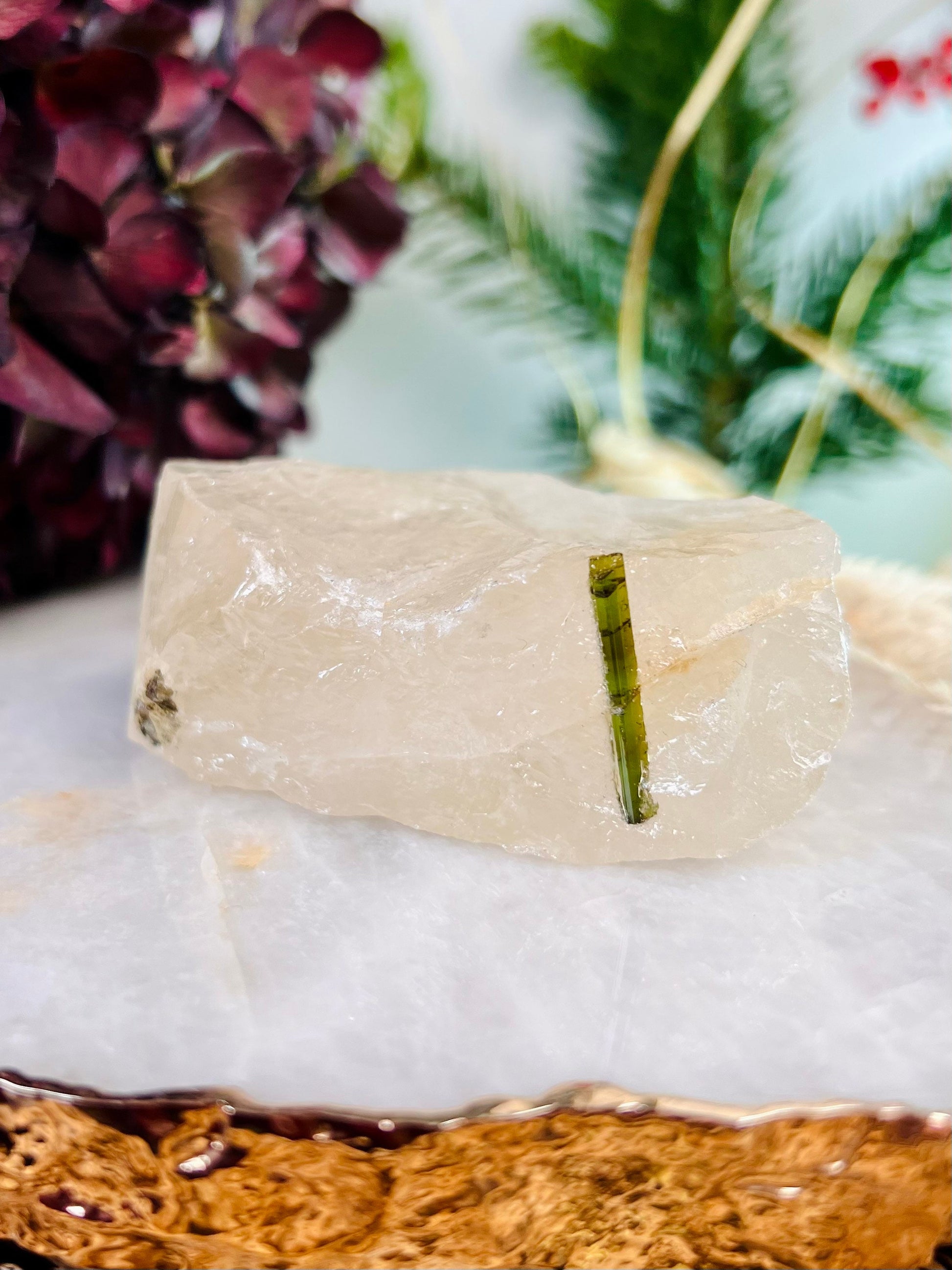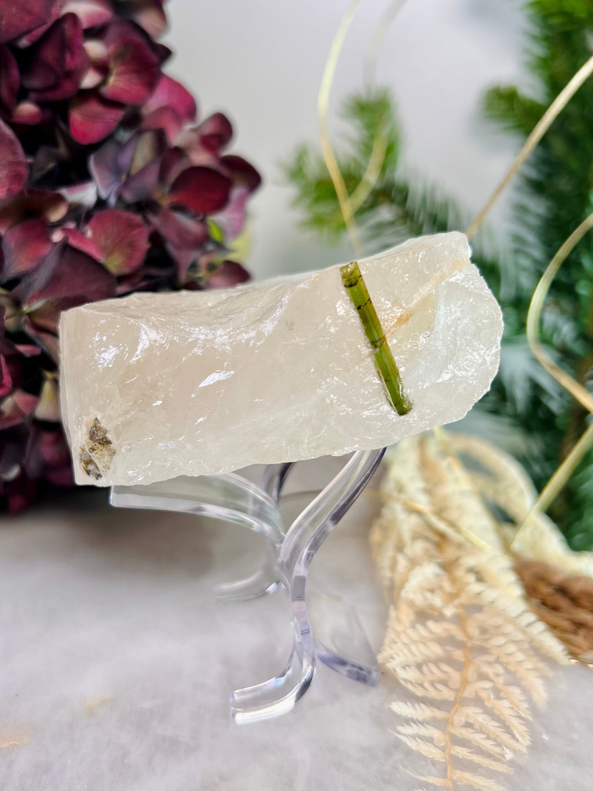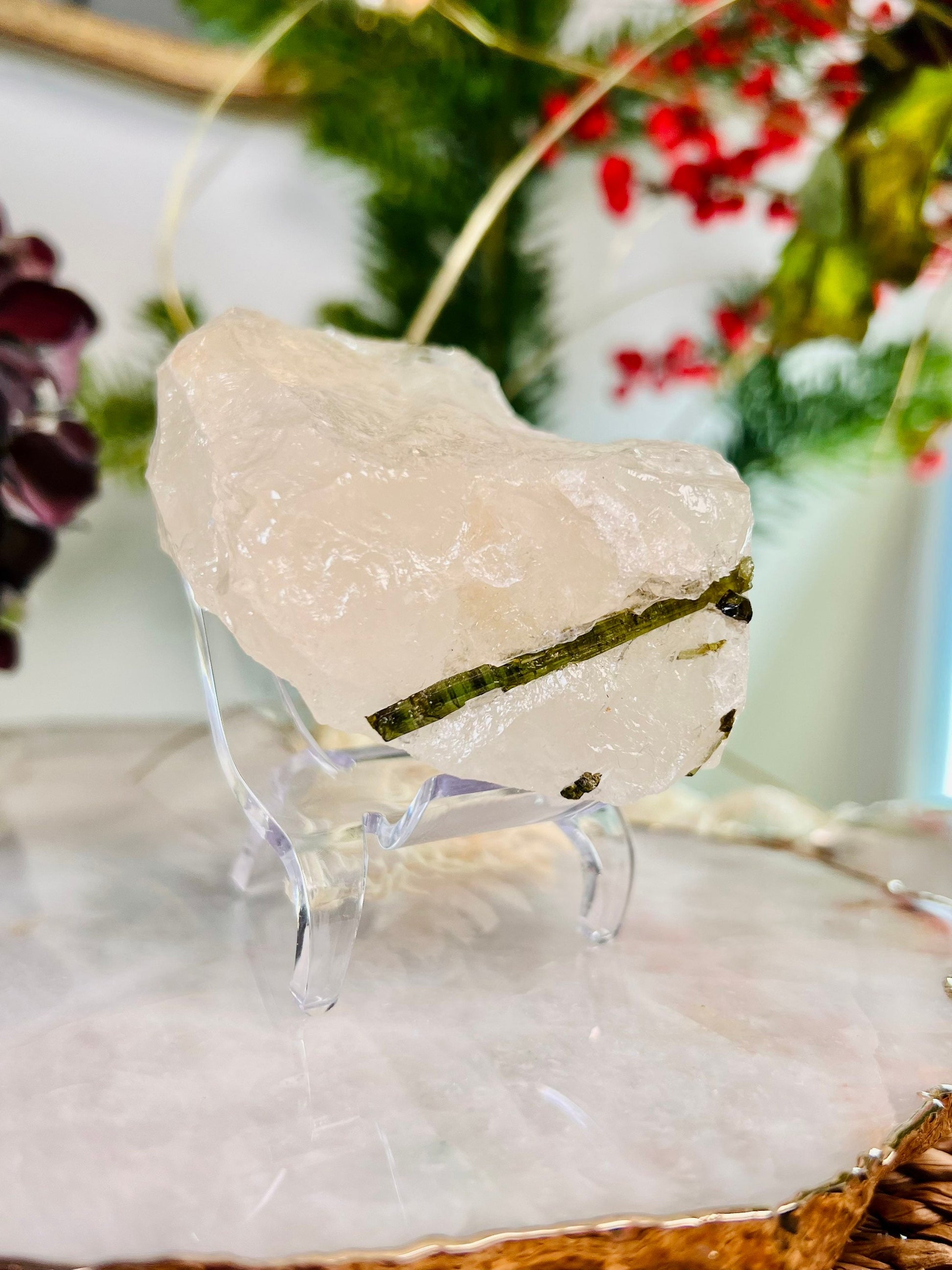 Grade AAA Natural Green Tourmaline Specimen on Quartz Crystal Healing