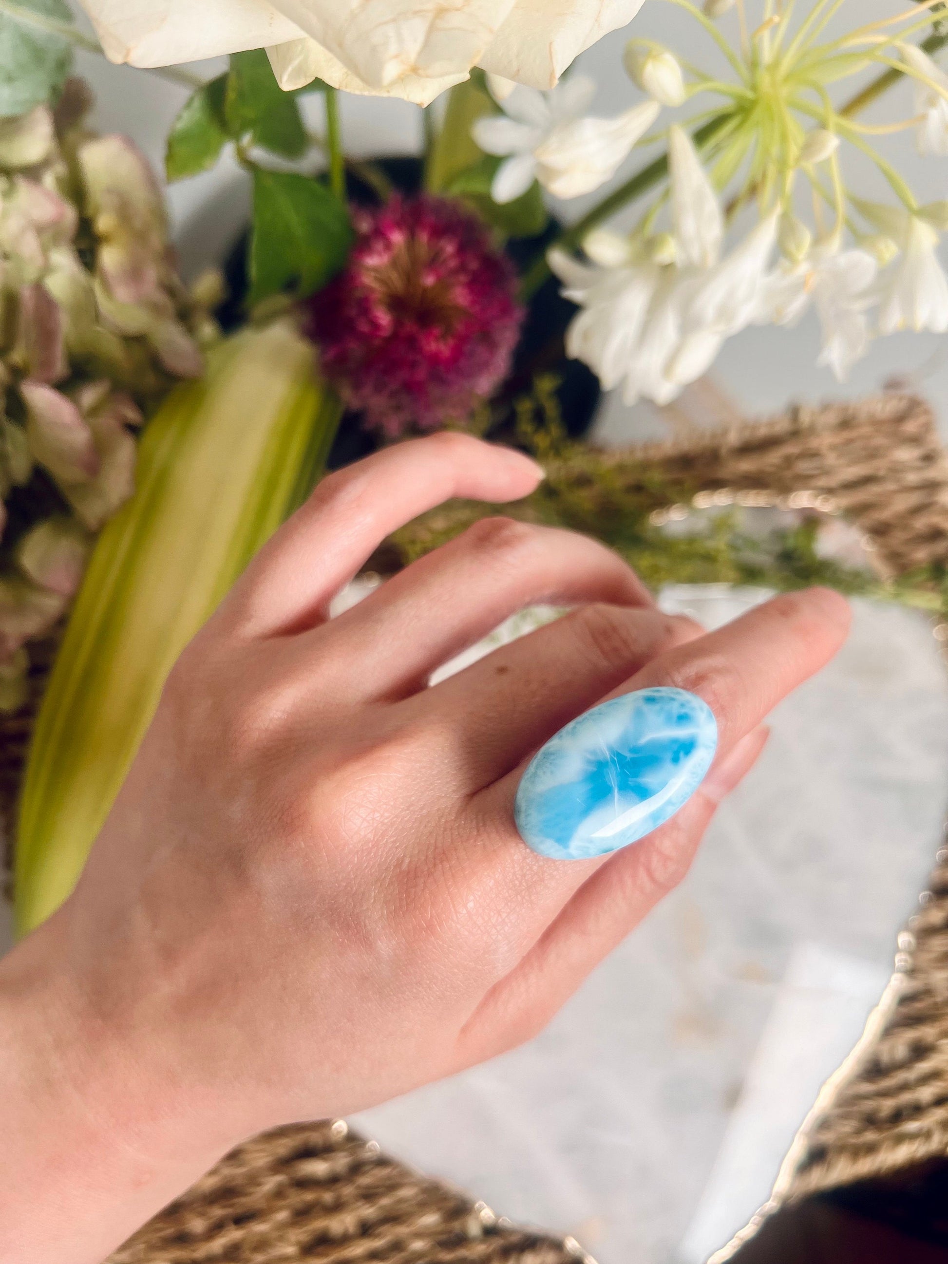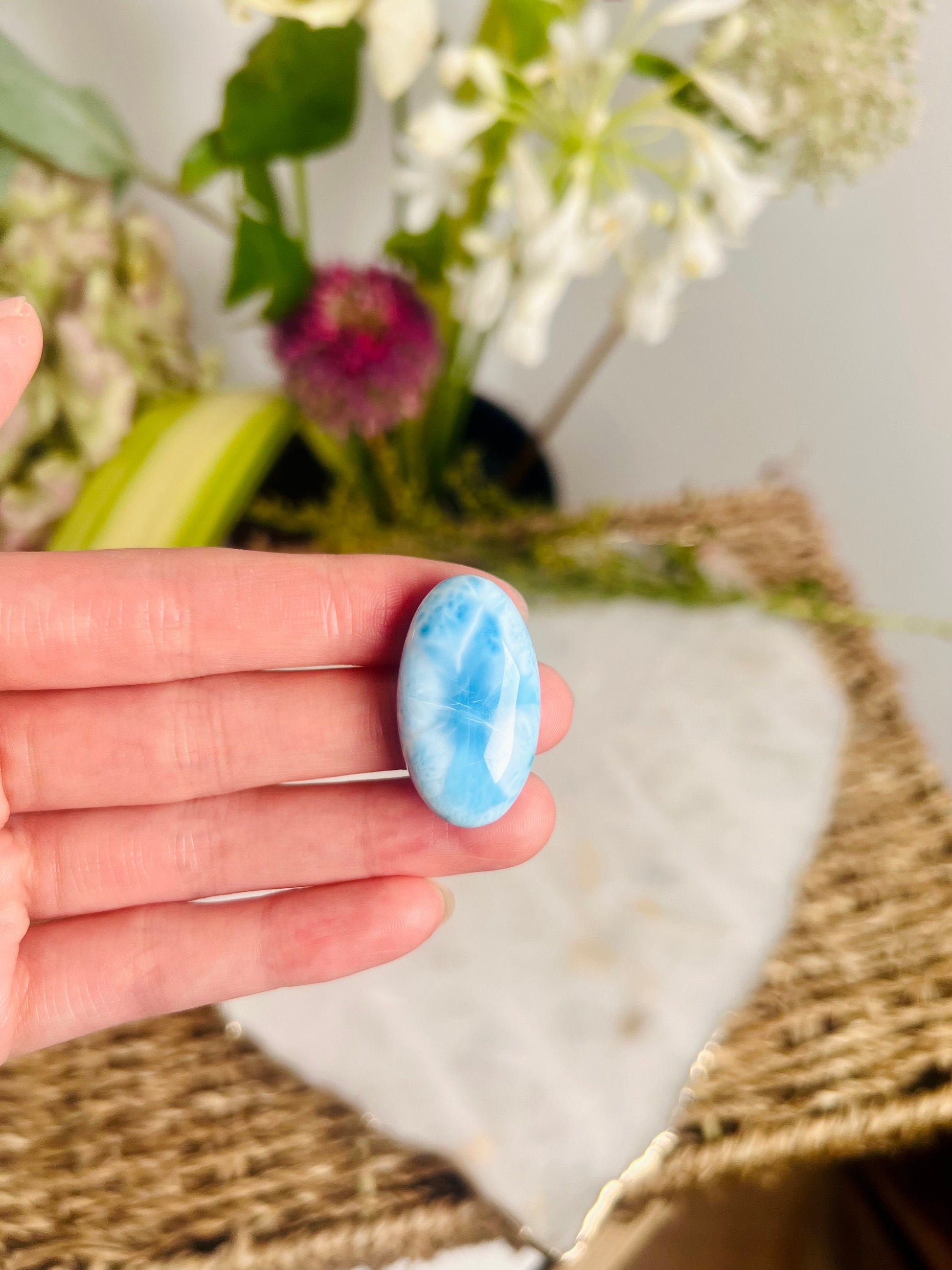 Grade AAA Natural Larimar Oval Cabochon, Energy Healing Crystal, Good Luck 9g