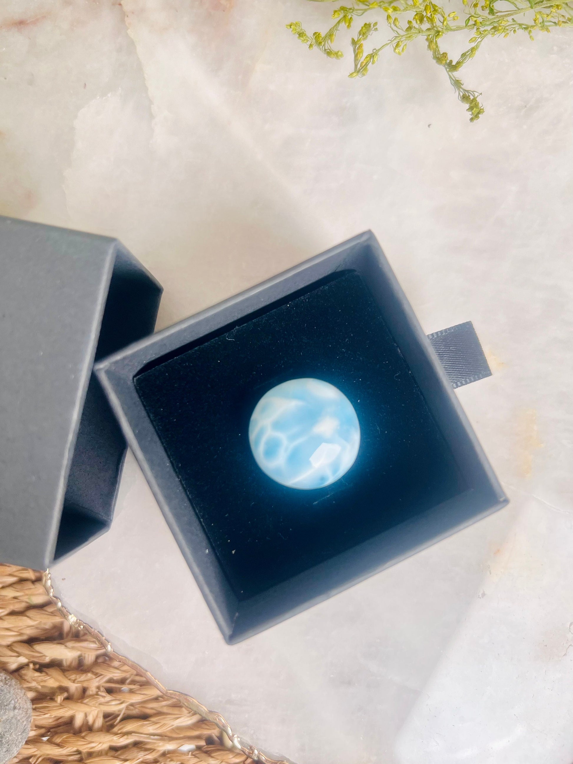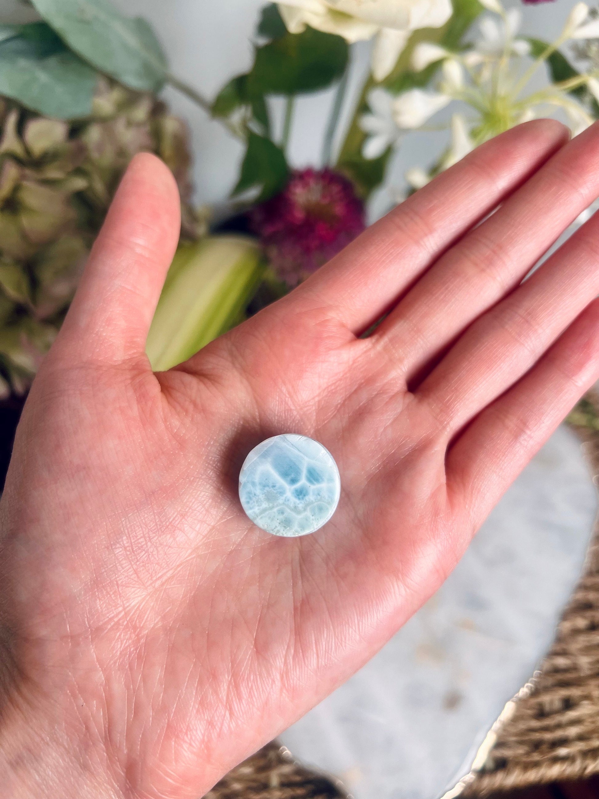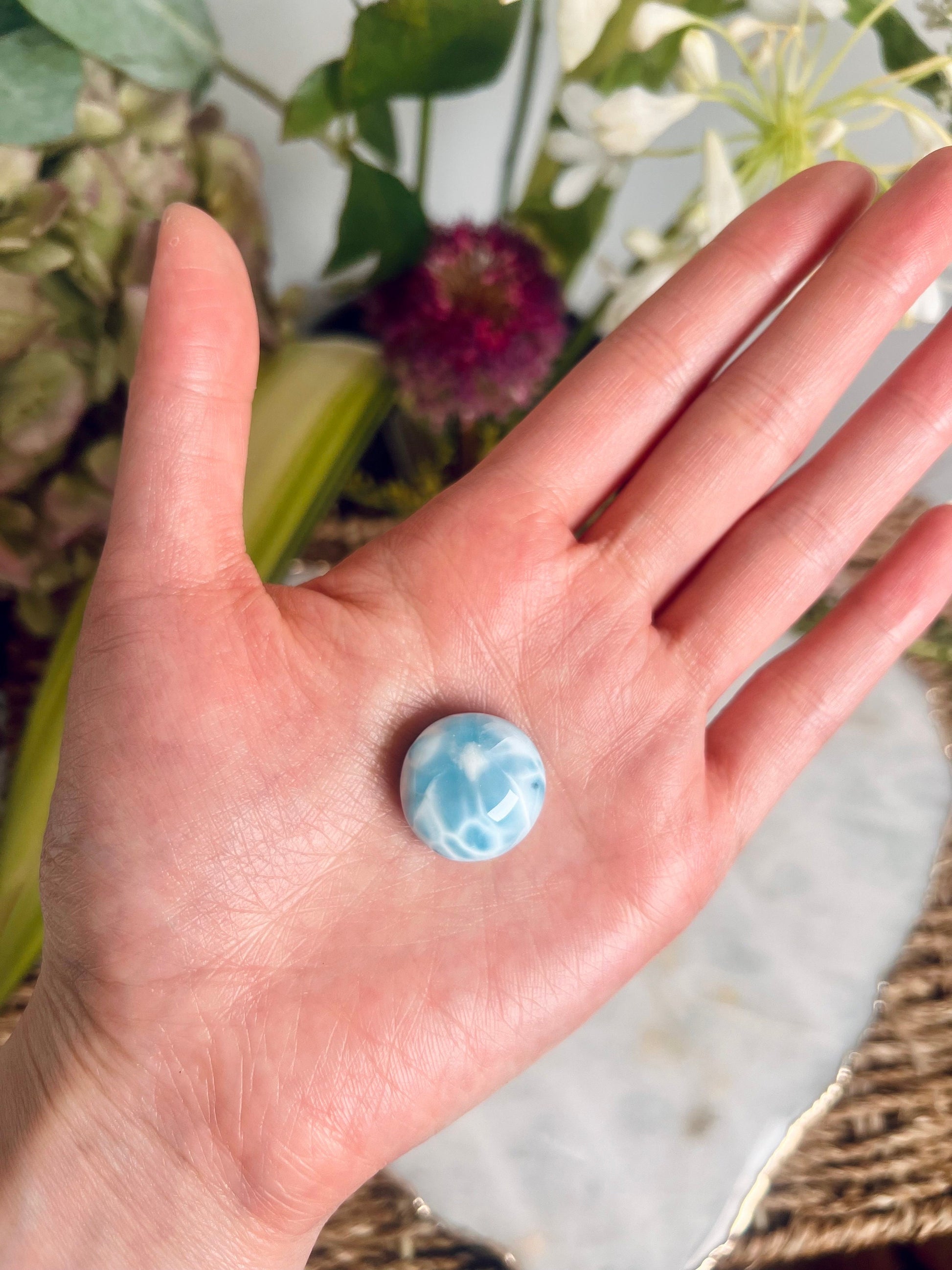 Grade AAA Natural Larimar Round Cabochon from the Dominican Republic, Larimar Palmstone, Earth Healing Crystal 8g
