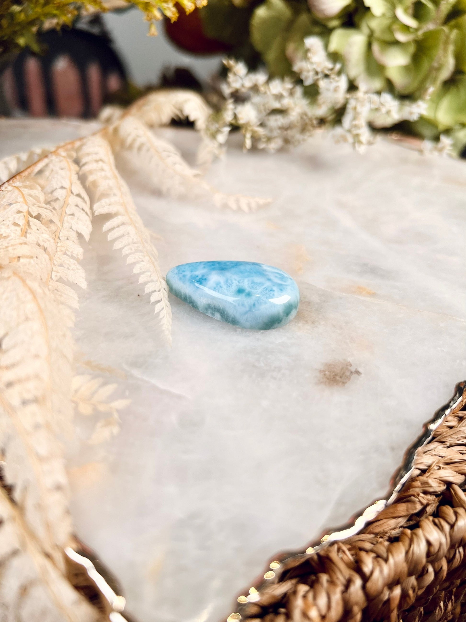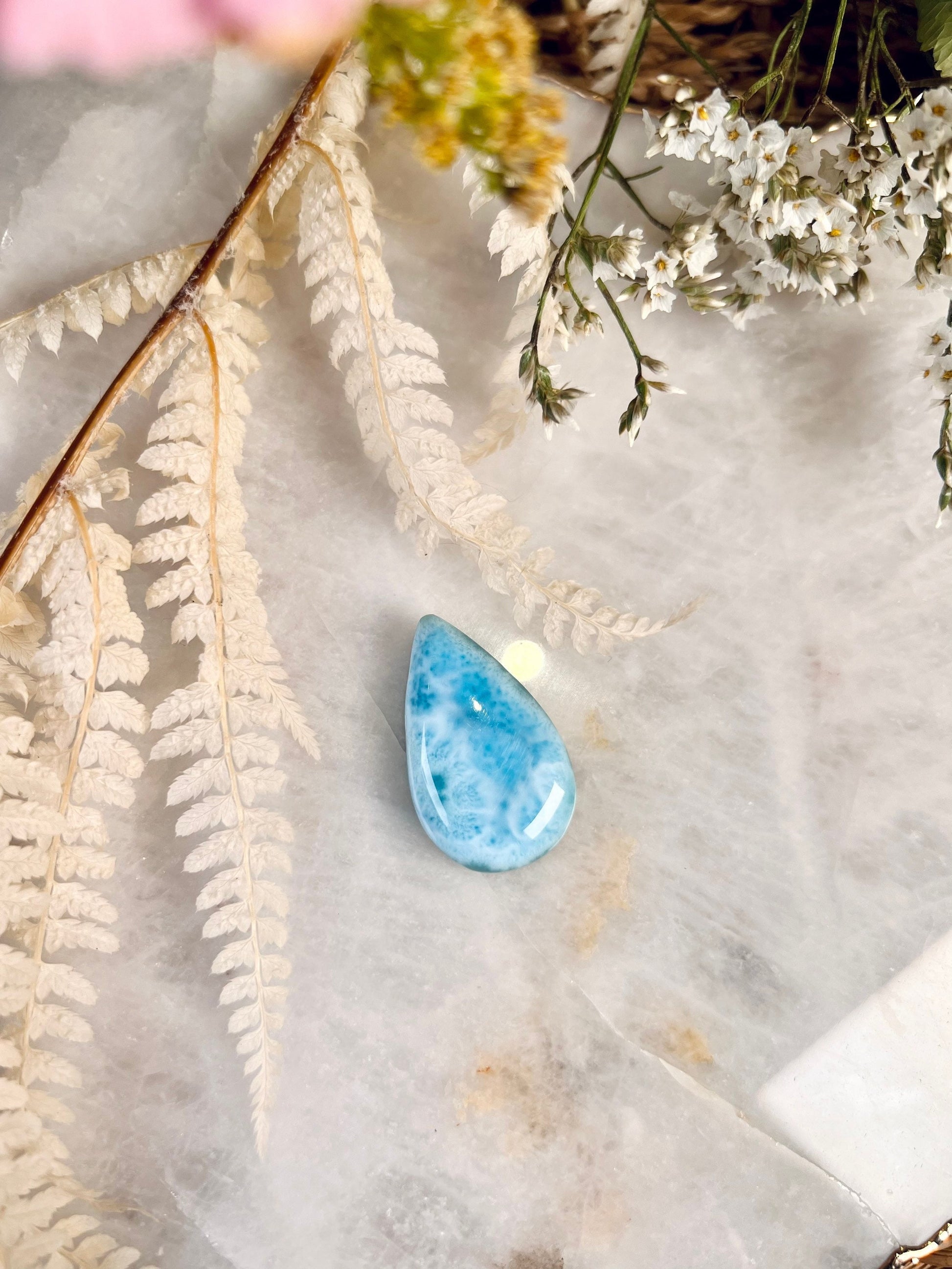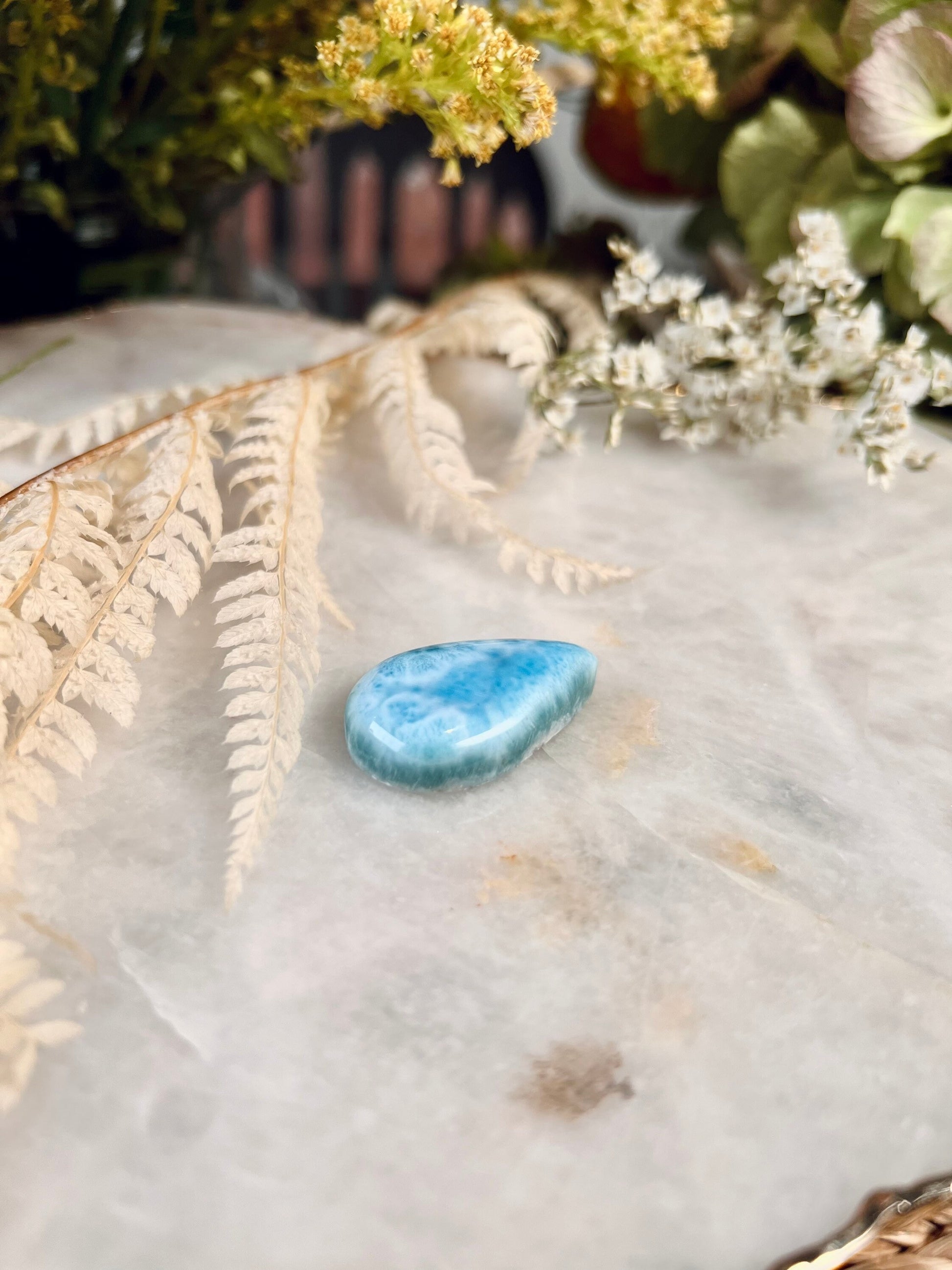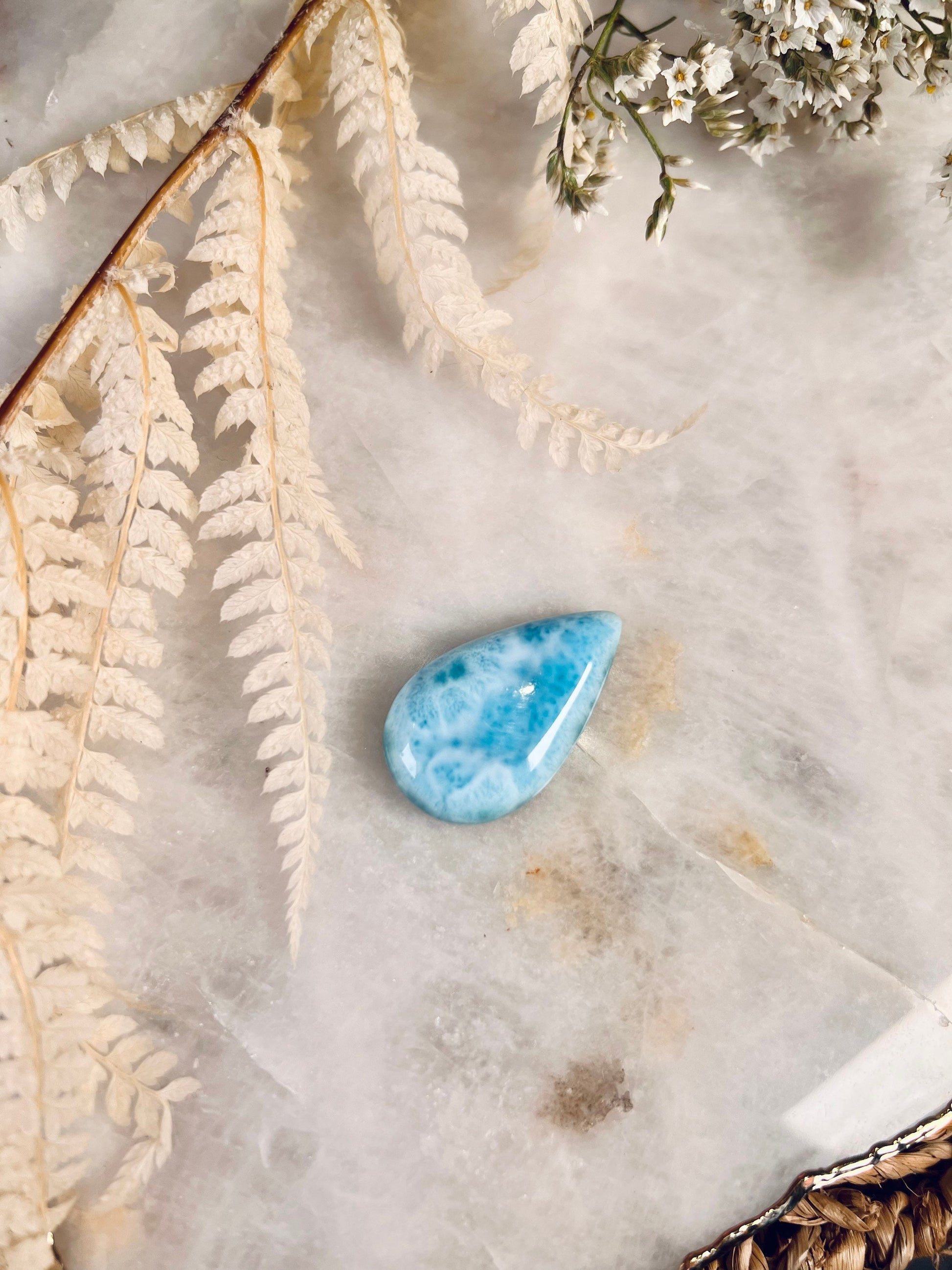 Grade AAA Natural Larimar Teardrop Cabochon from the Dominican Republic, Chakra Healing, Inner Wisdom and Manifestation Crystal 10g