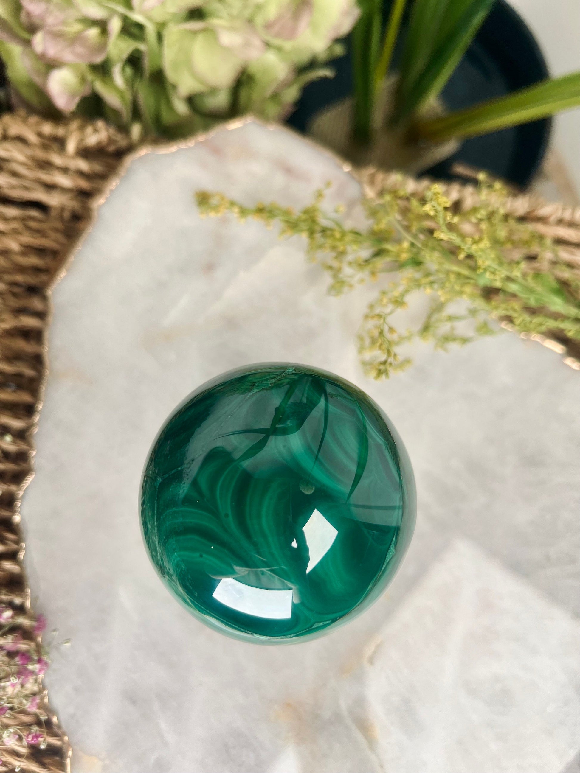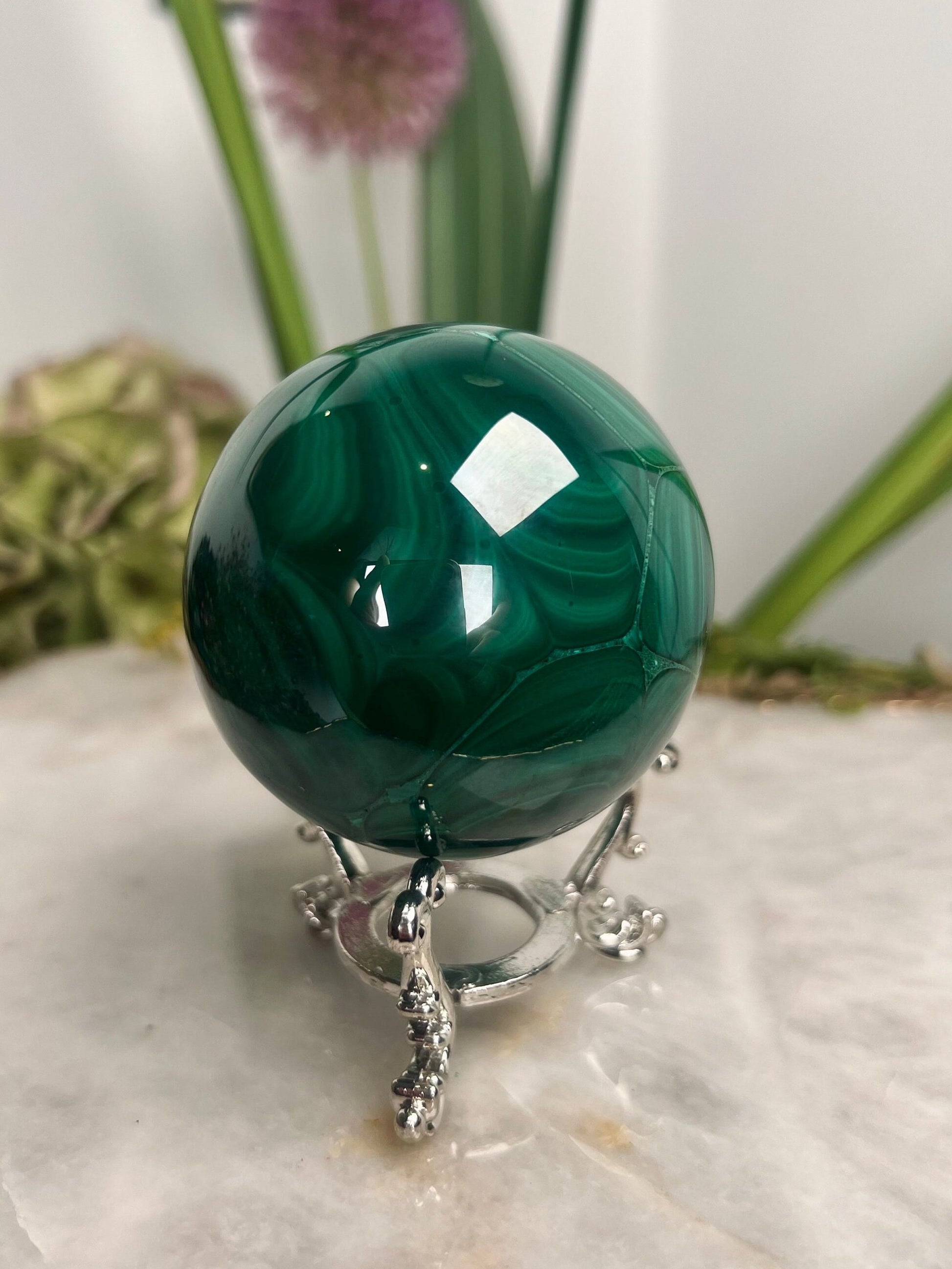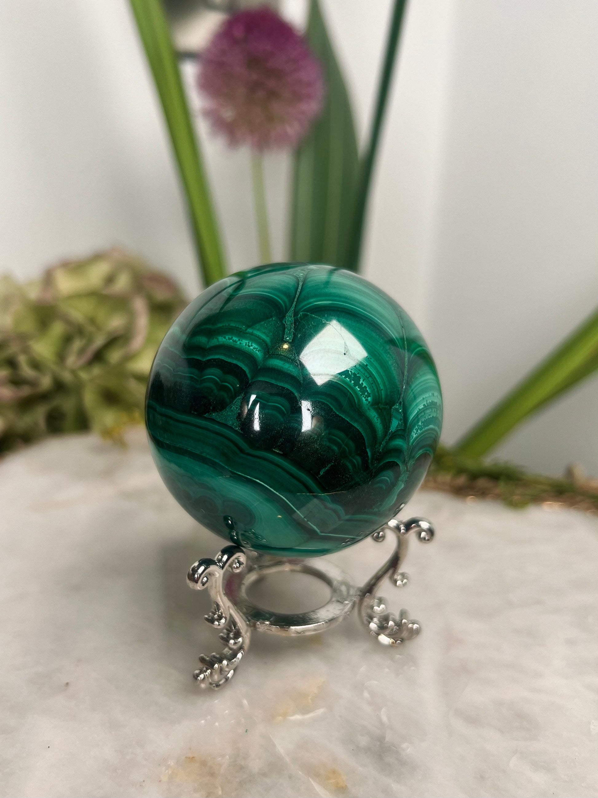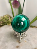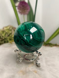 Grade AAA Natural Malachite Sphere on Stand, Manifestation Crystal,Energy Clearing, Good Fortune, Stone for New Beginnings, 434g - MS05