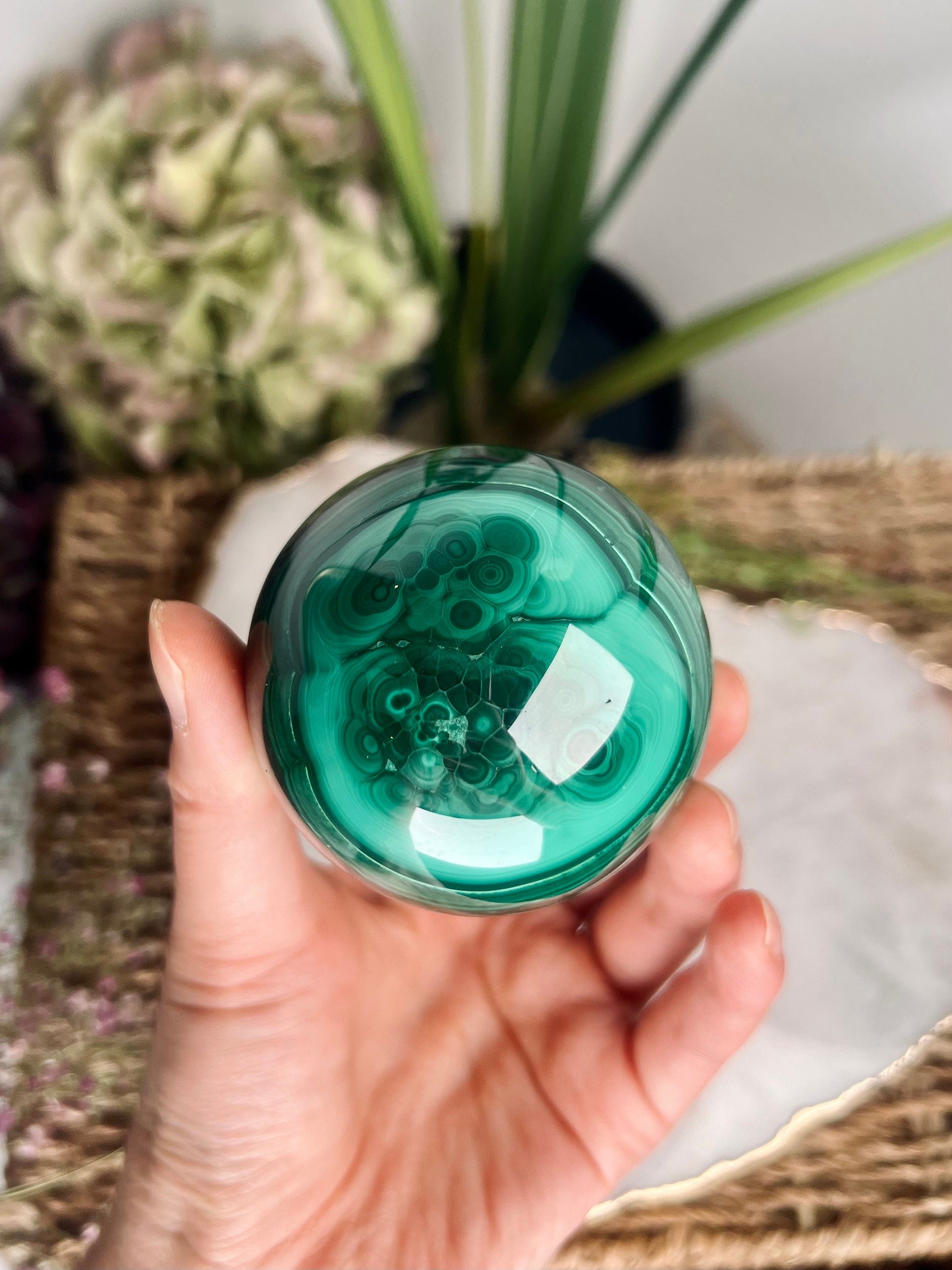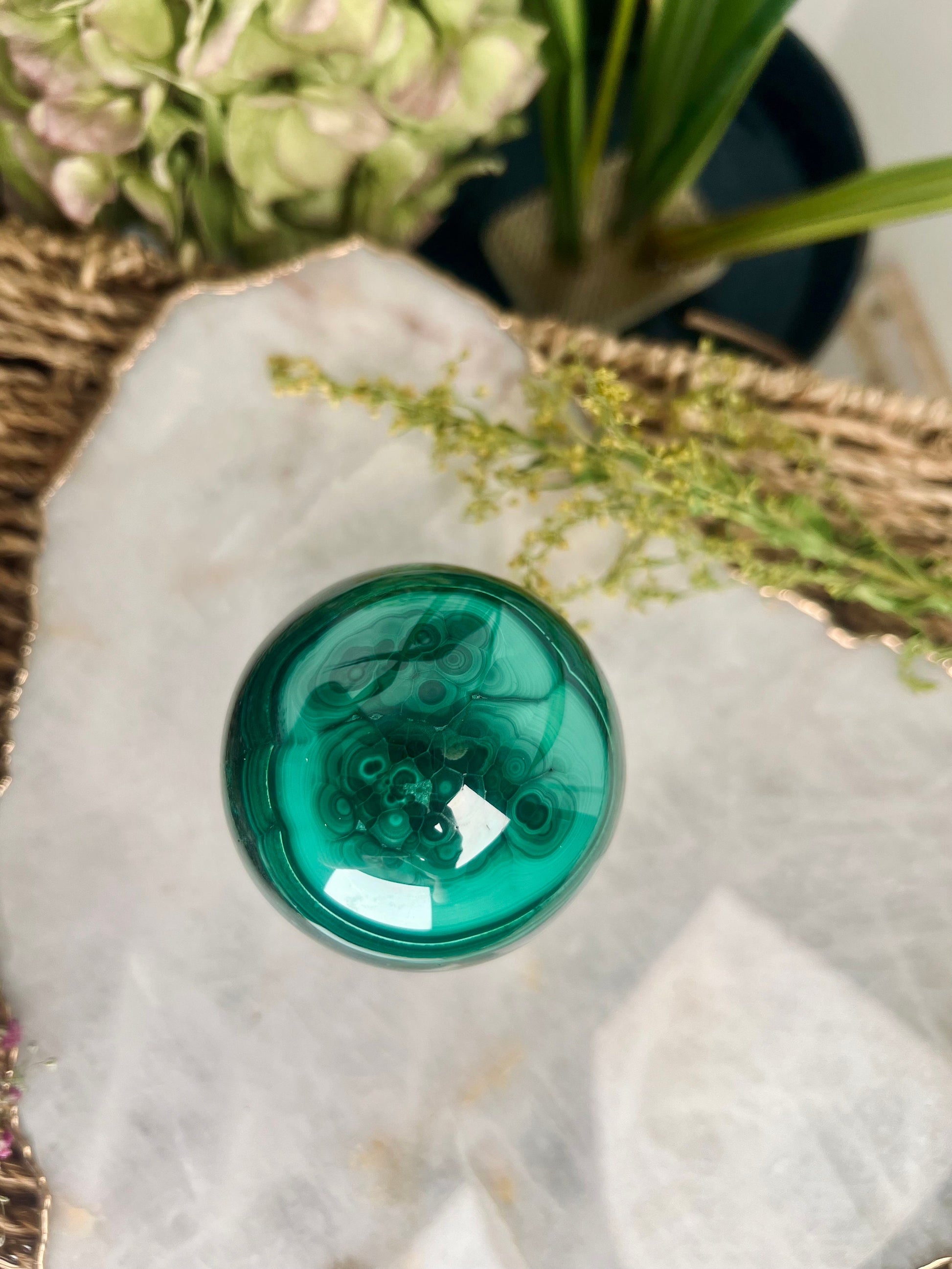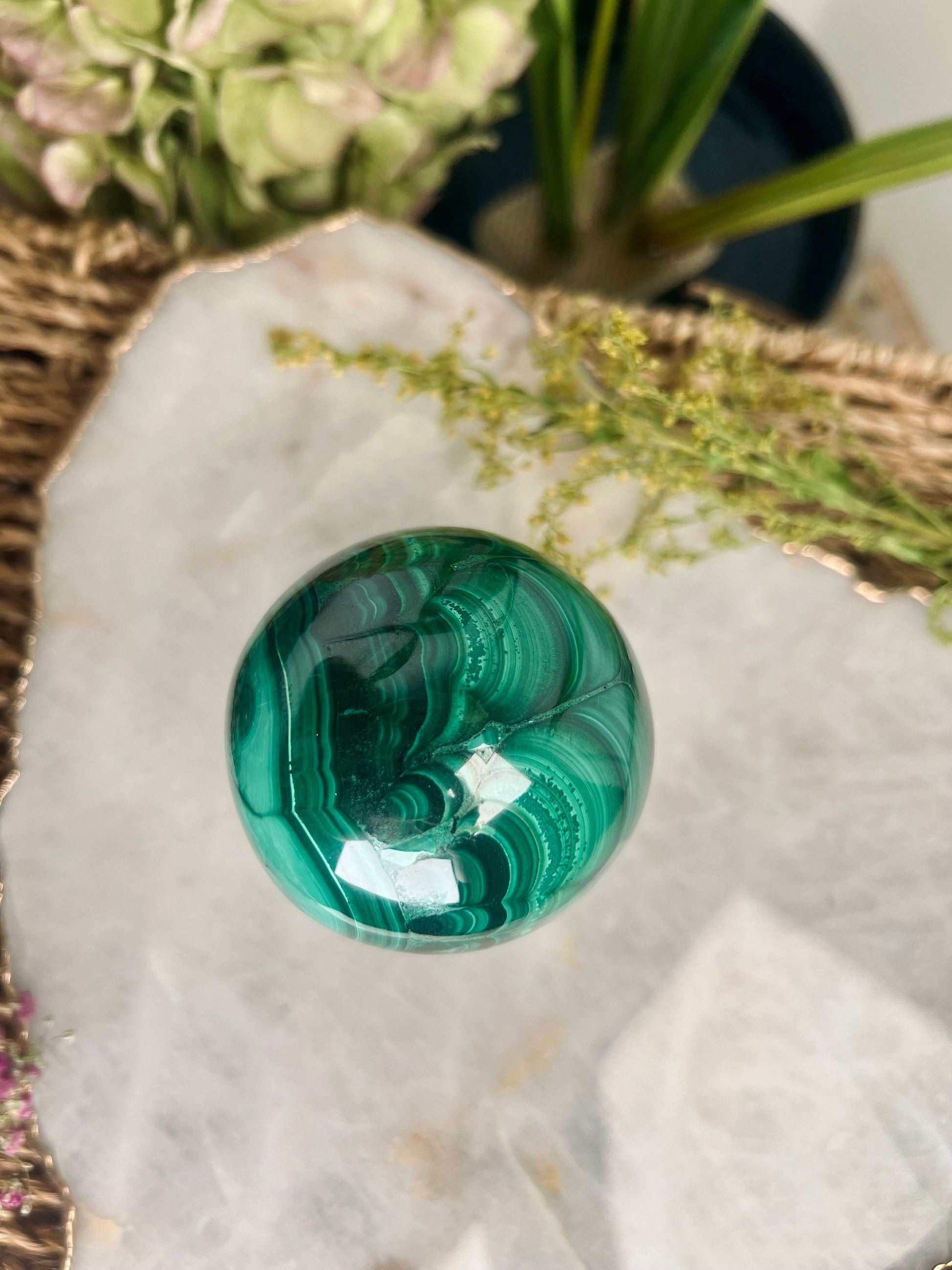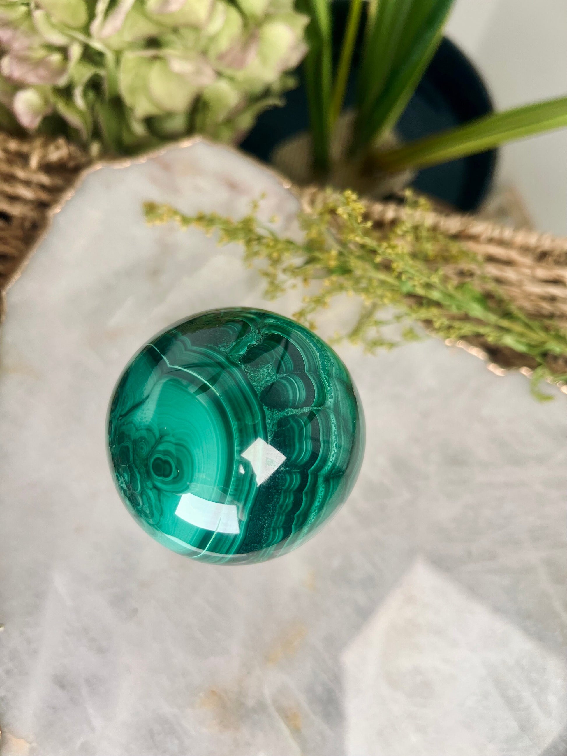 Grade AAA Natural Malachite Sphere on Stand, Manifestation Crystal,Energy Clearing, Good Fortune, Stone for New Beginnings, 434g - MS05