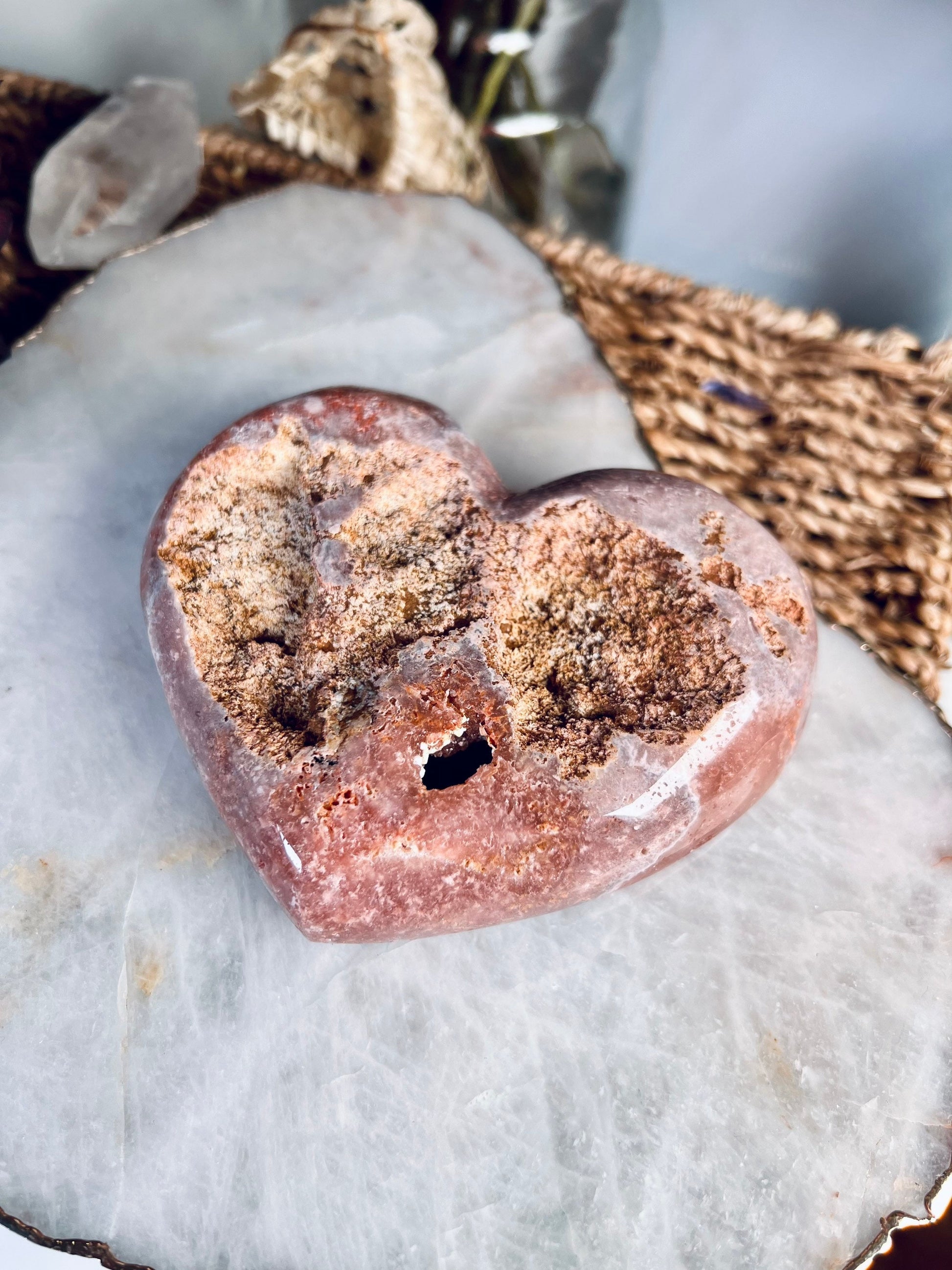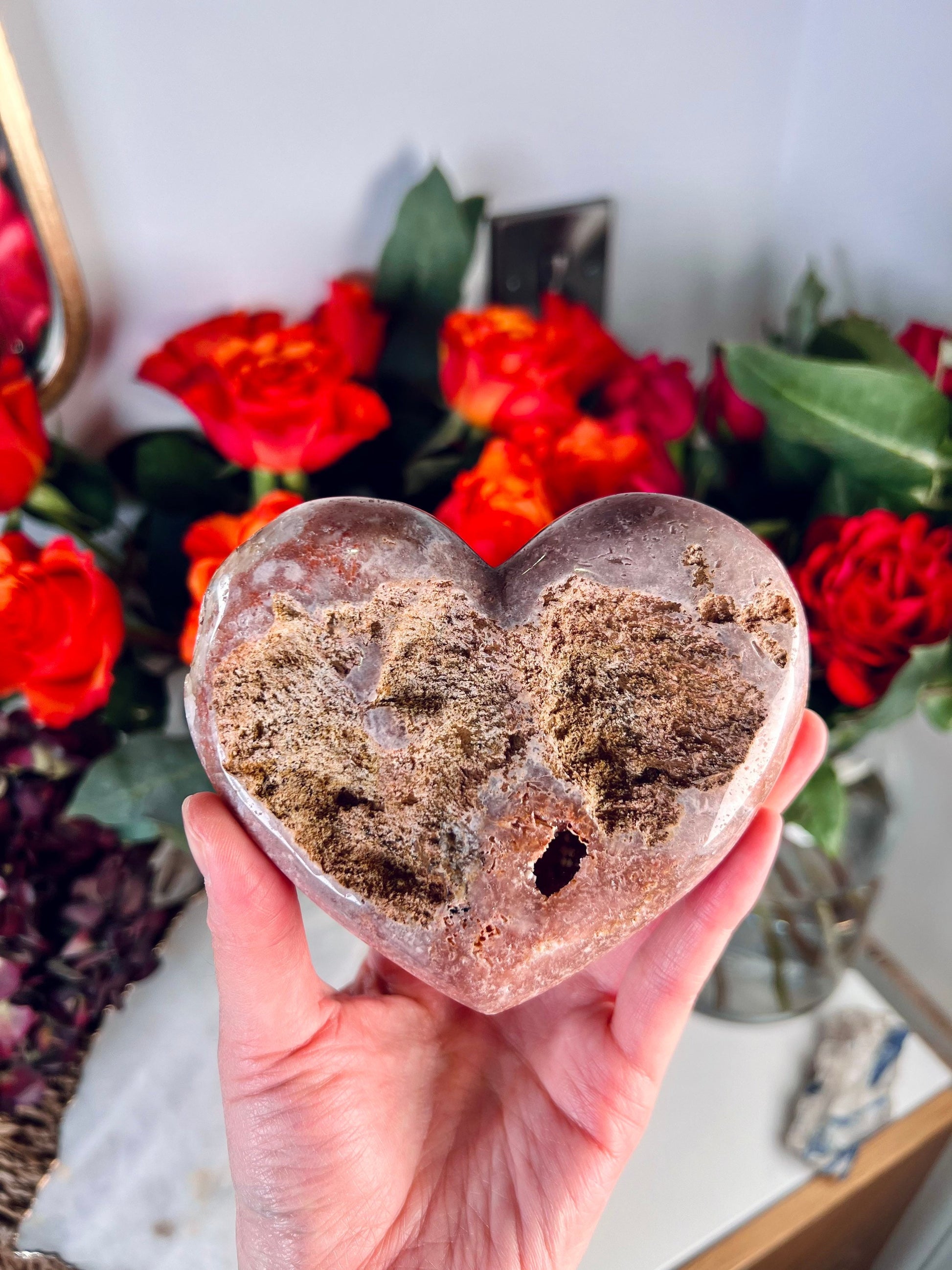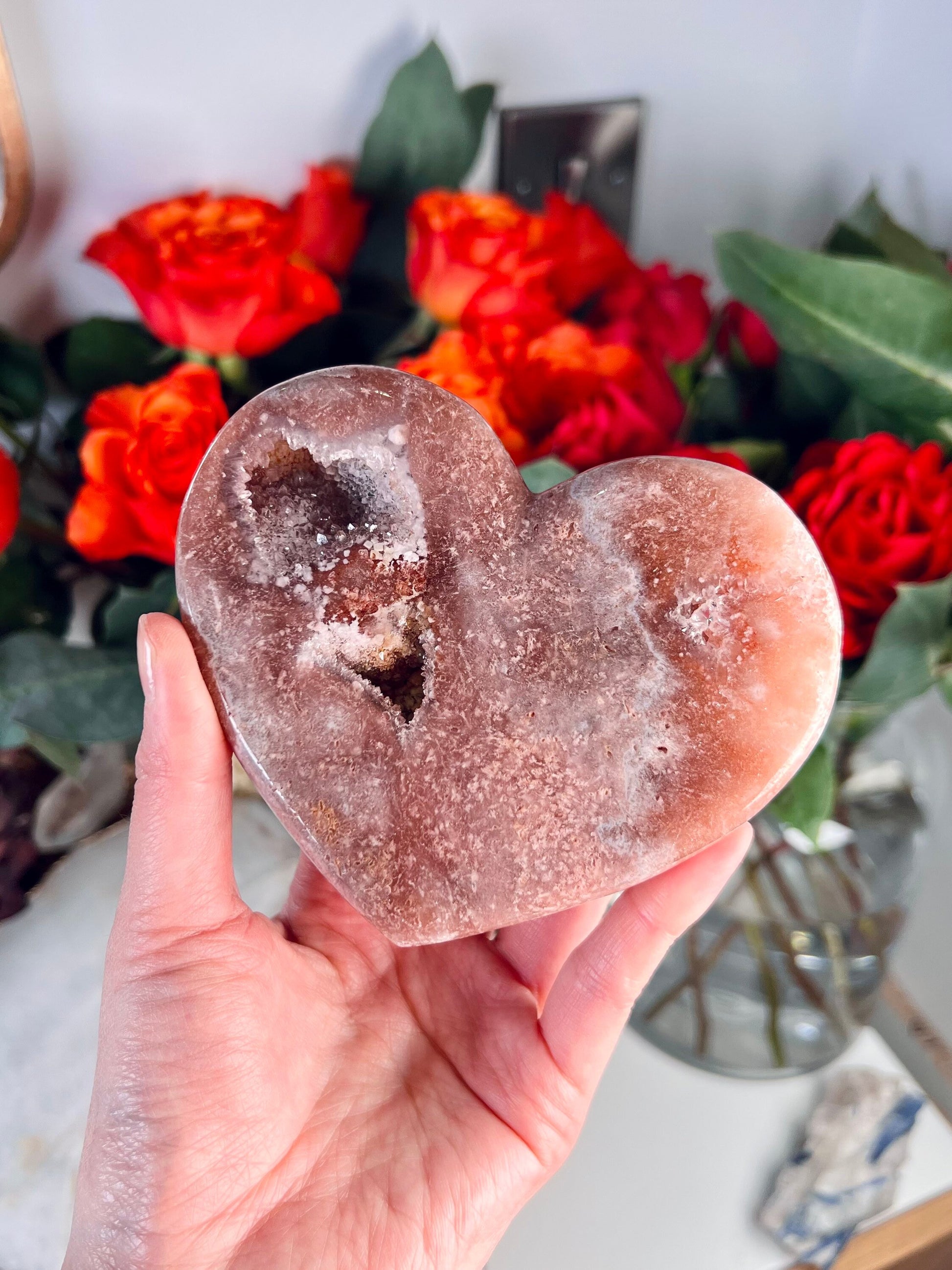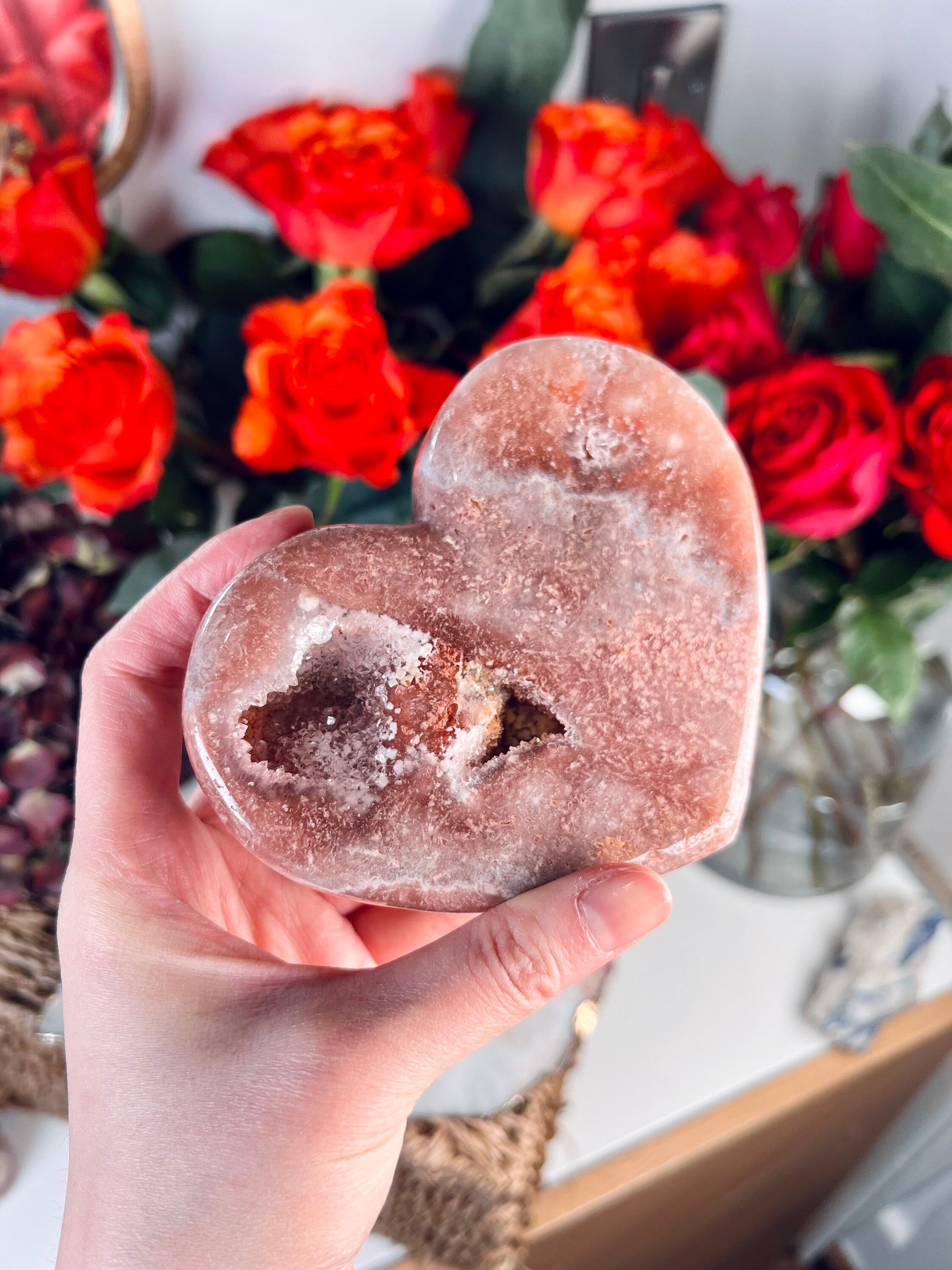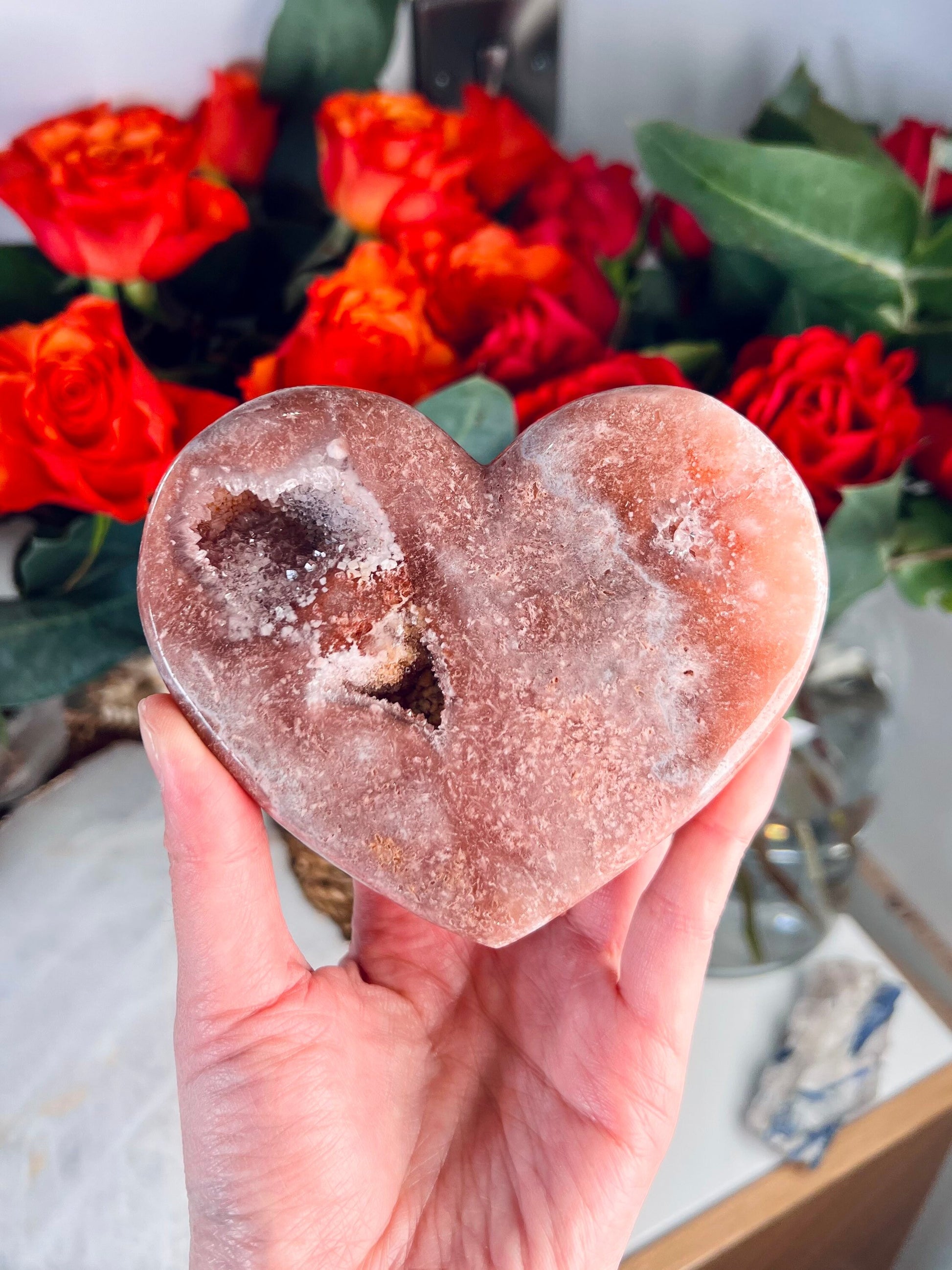 ✨ Discover Unparalleled Healing and Harmony - Dive into the gentle embrace of our Grade AAA Natural Pink Amethyst Heart. This exquisitely crafted piece, adorned with captivating geode openings, sparkling druzy crystals, and enriching hematite inclusions, is a treasure trove of emotional balance, divine feminine energy, and intuitive enhancement. It's crafted to infuse your personal sanctuaries with calming and peaceful energy, making it perfect for bedroom Fengshui or as a serene addition to your meditation space.
