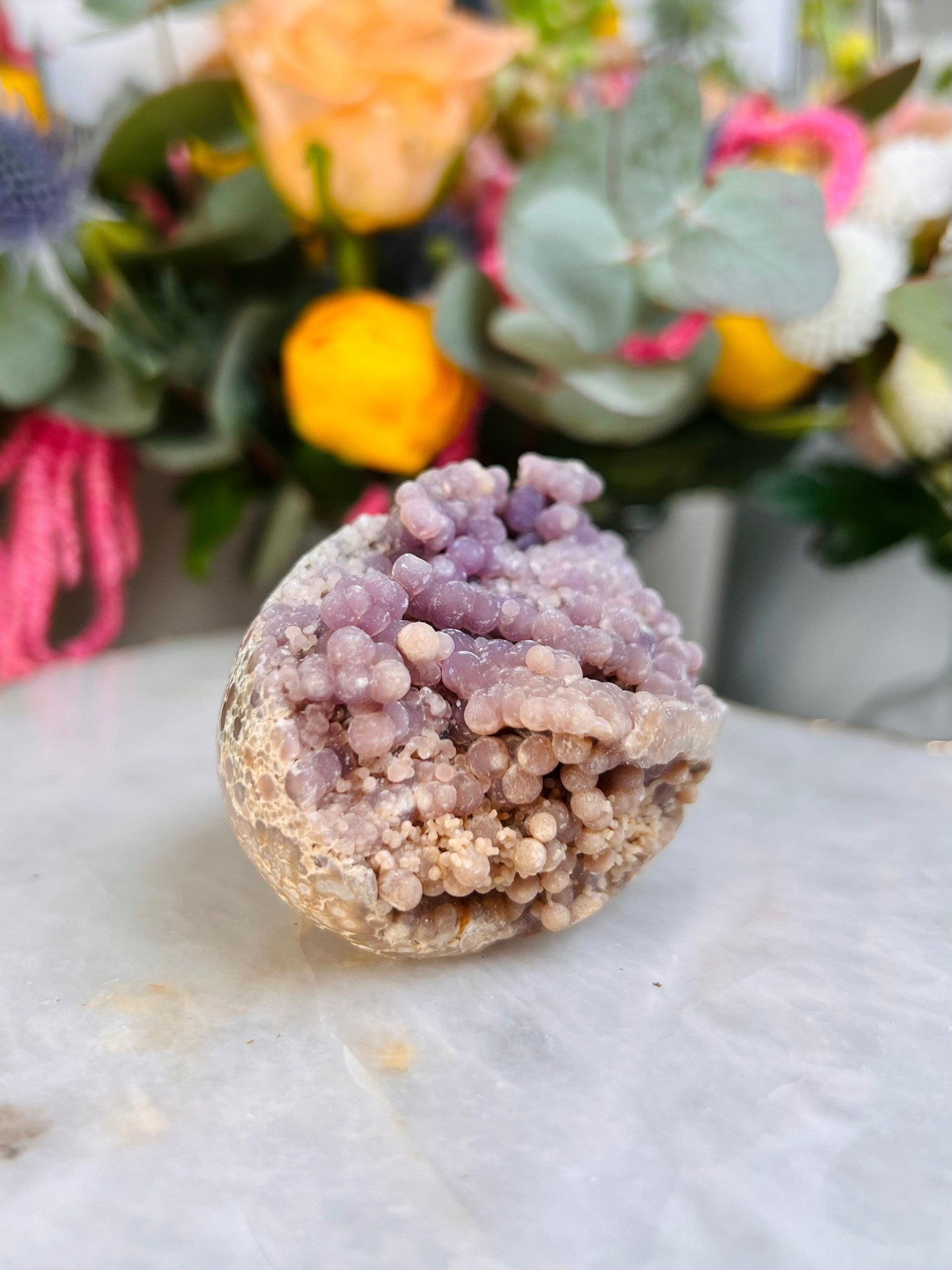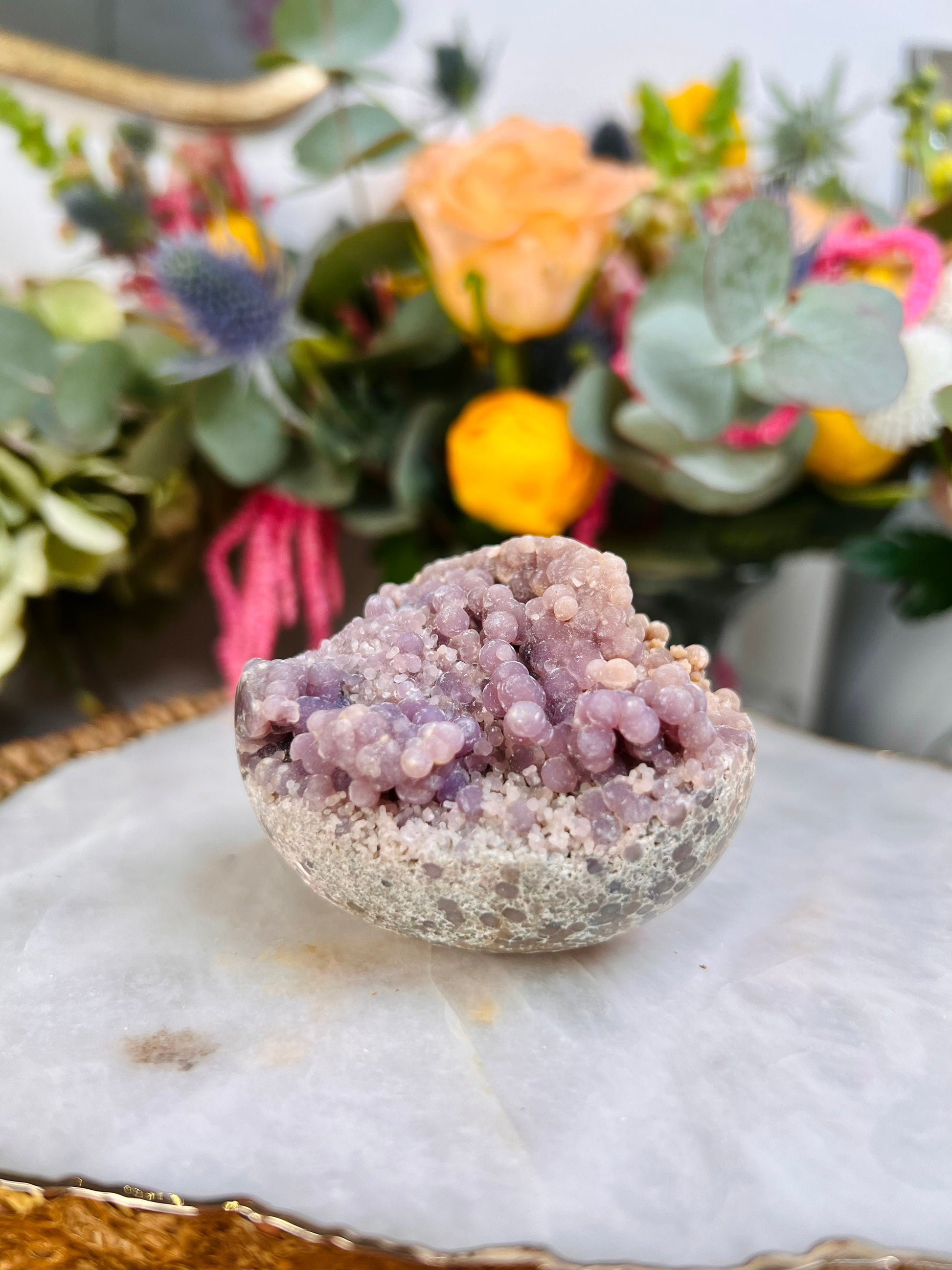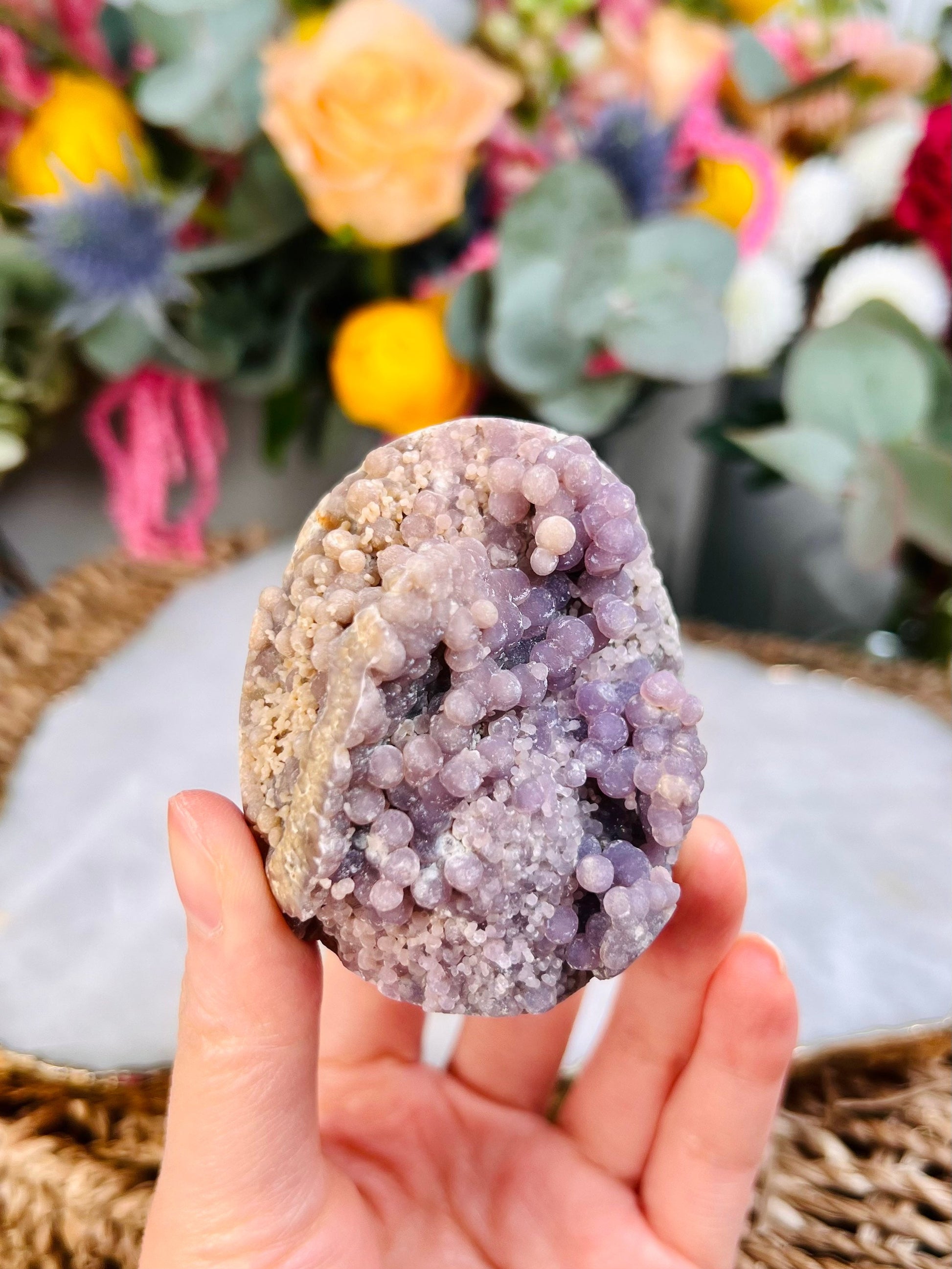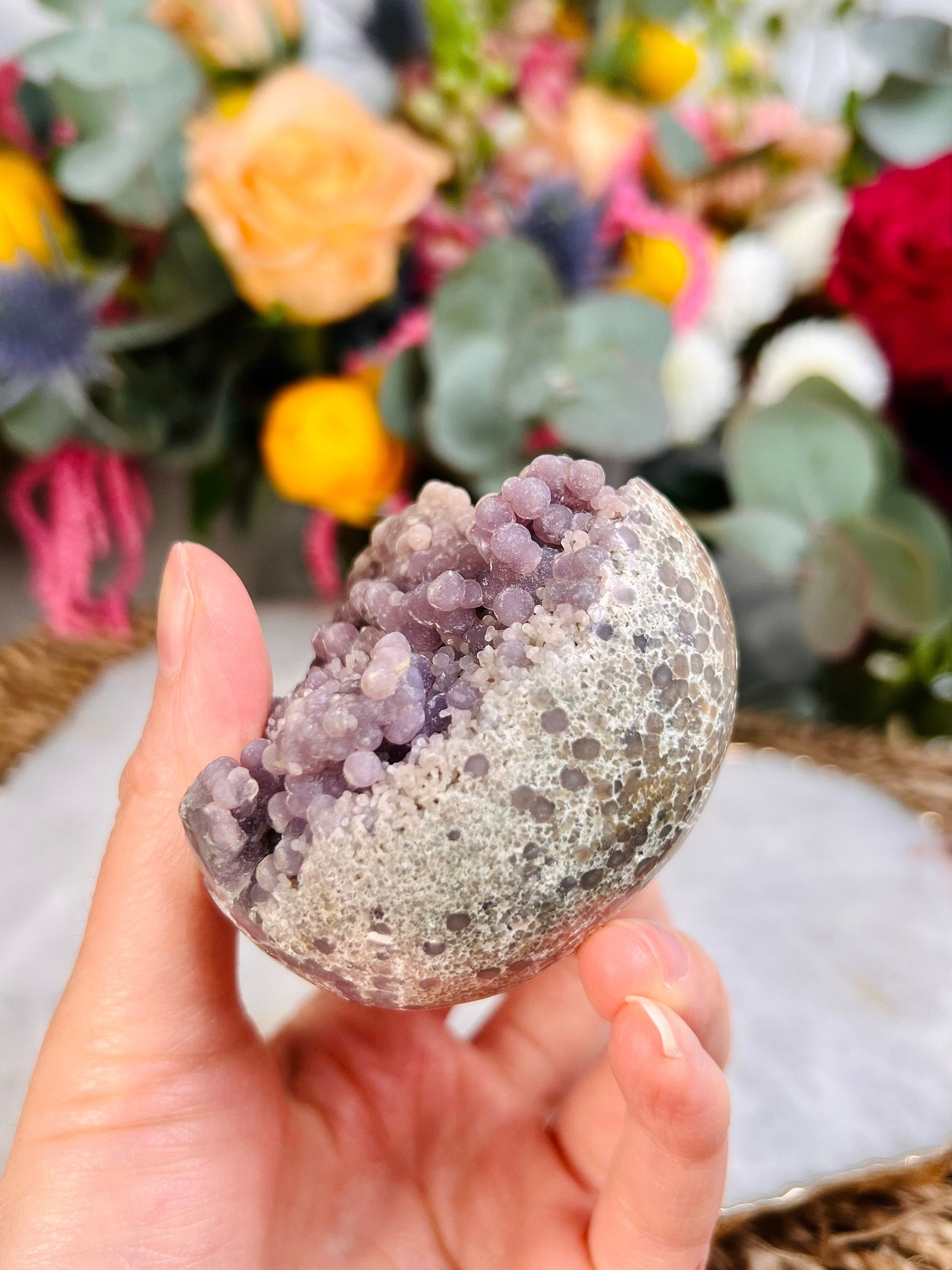 Grade AAA Natural Purple Grape Agate Geode Egg 178g Natural Velvet Shine Lilac Bubbles, Healing Crystal Home Decor