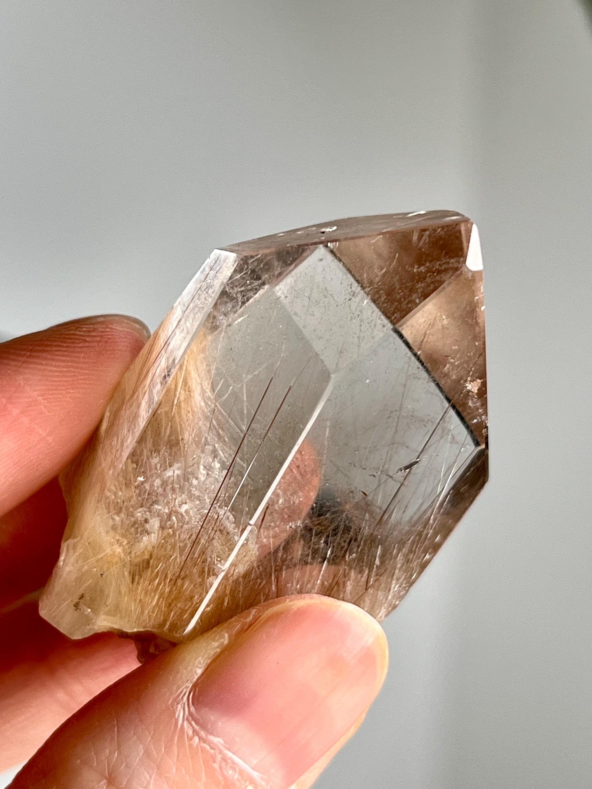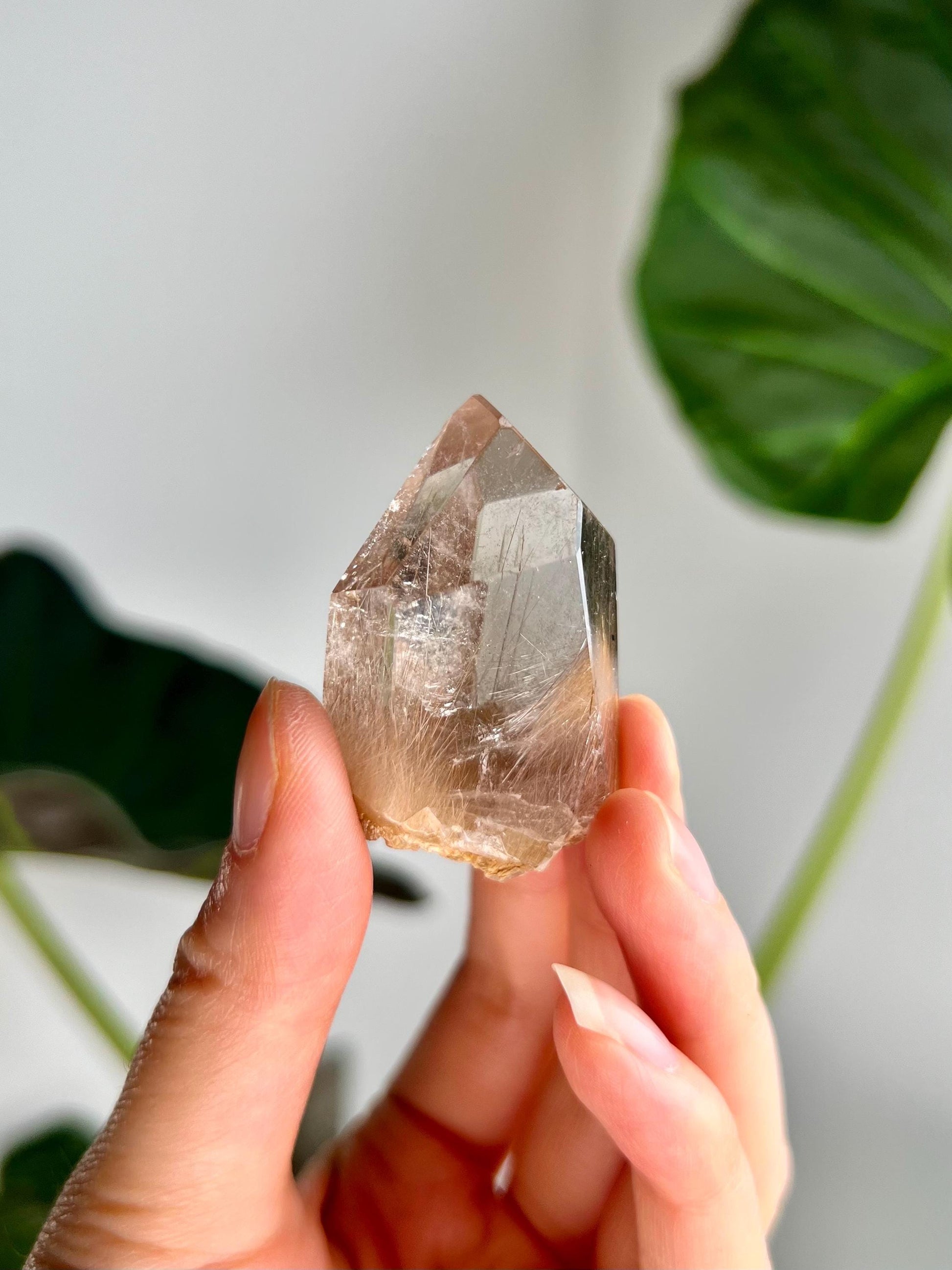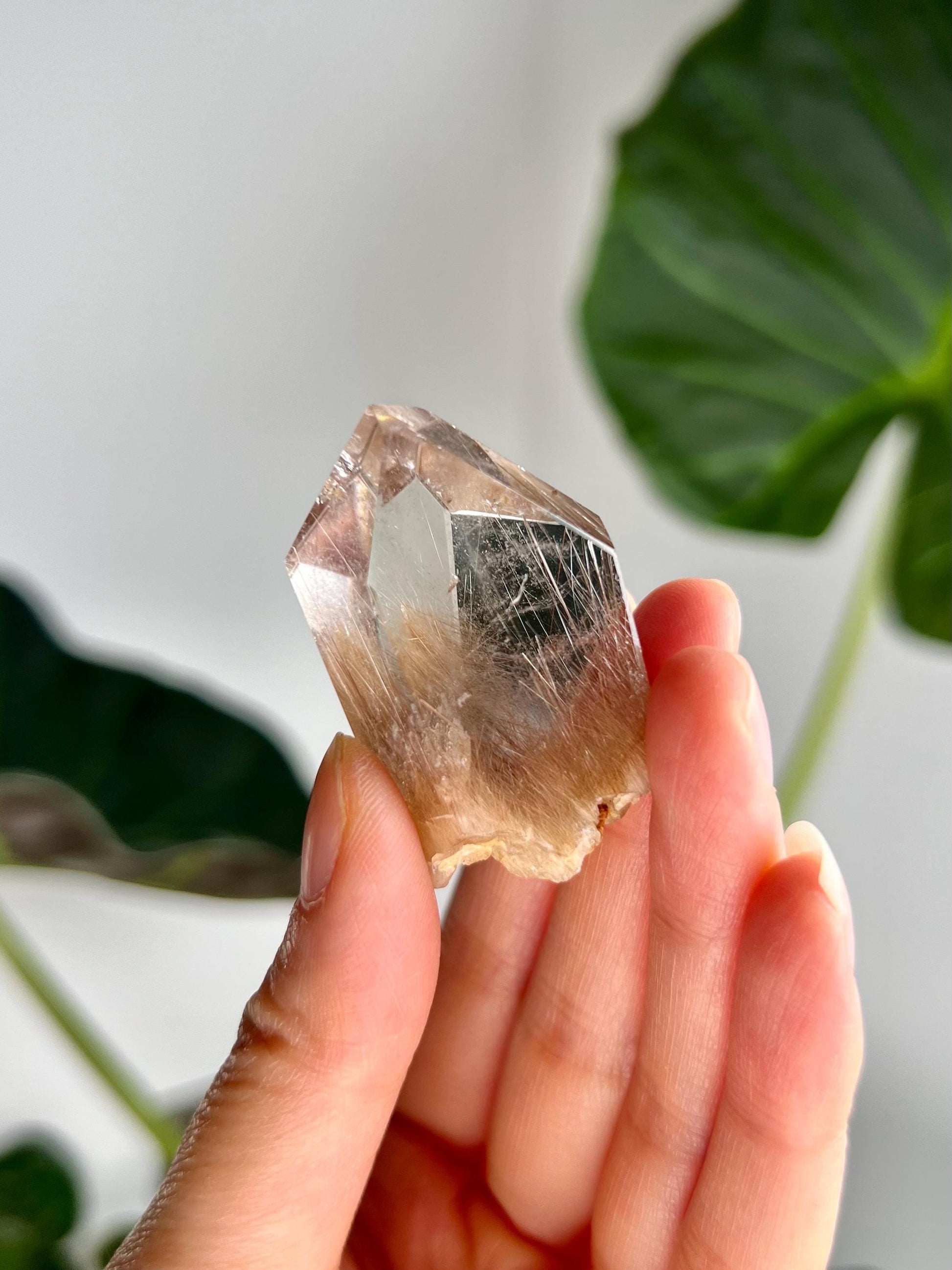 Amphibole Quartz, often referred to as Angel Phantom Quartz, is known for its angelic appearance and high vibrational energy. The presence of inclusions such as pink, golden, and silver amphibole, as well as fine hair-like rutile, enhances the crystal's ability to connect with higher realms and angelic guidance. The combination of these colours, especially the elegant peach hue formed by golden and pink amphibole together, adds a unique aesthetic and energy to each piece.