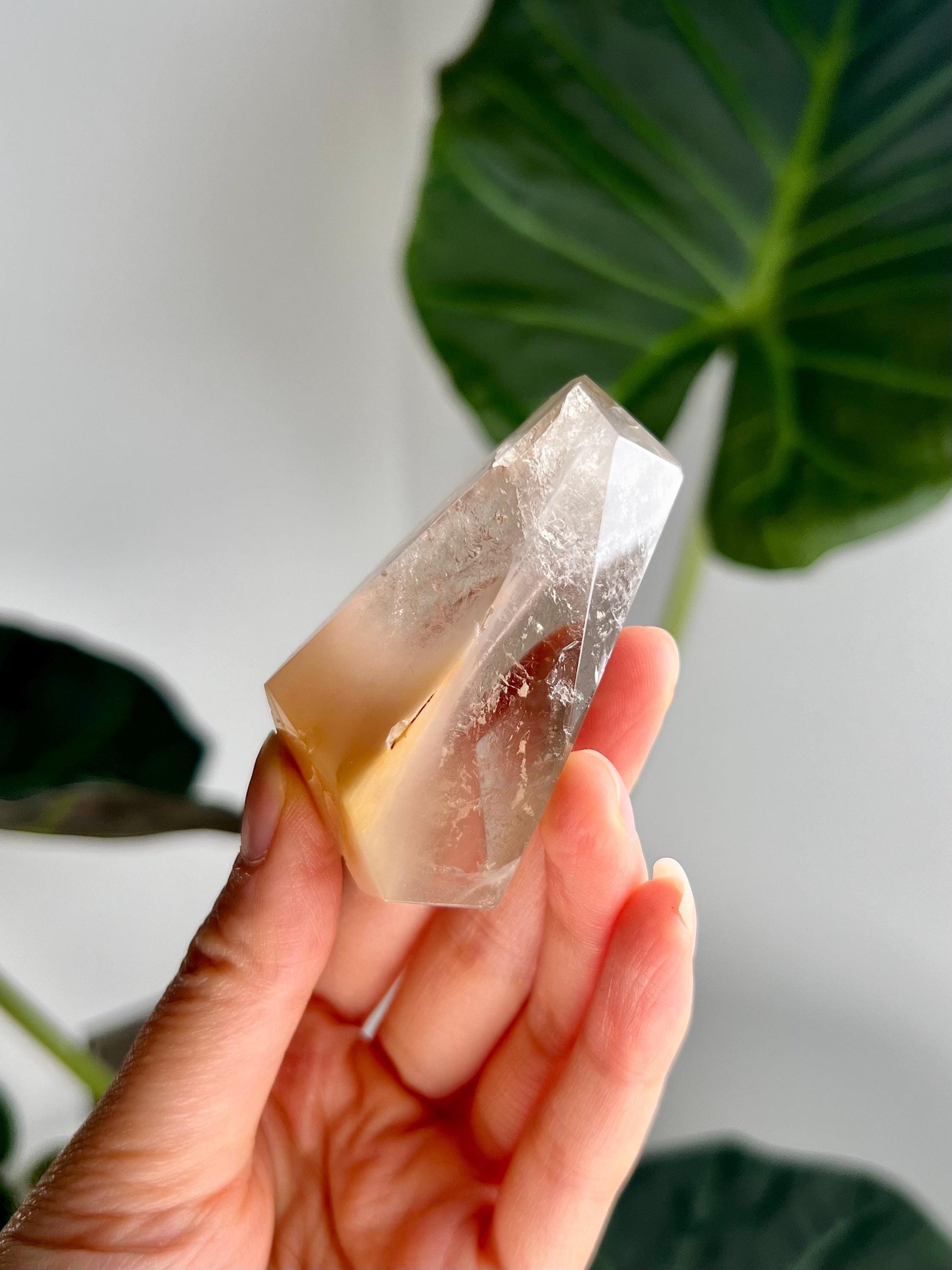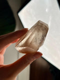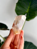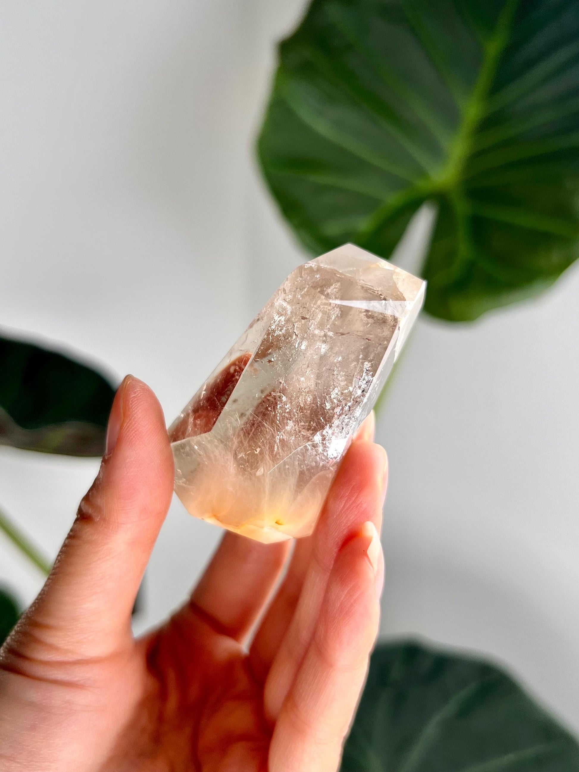Amphibole Quartz, often referred to as Angel Phantom Quartz, is known for its angelic appearance and high vibrational energy. The presence of inclusions such as pink, golden, and silver amphibole, as well as fine hair-like rutile, enhances the crystal's ability to connect with higher realms and angelic guidance. The combination of these colours, especially the elegant peach hue formed by golden and pink amphibole together, adds a unique aesthetic and energy to each piece.