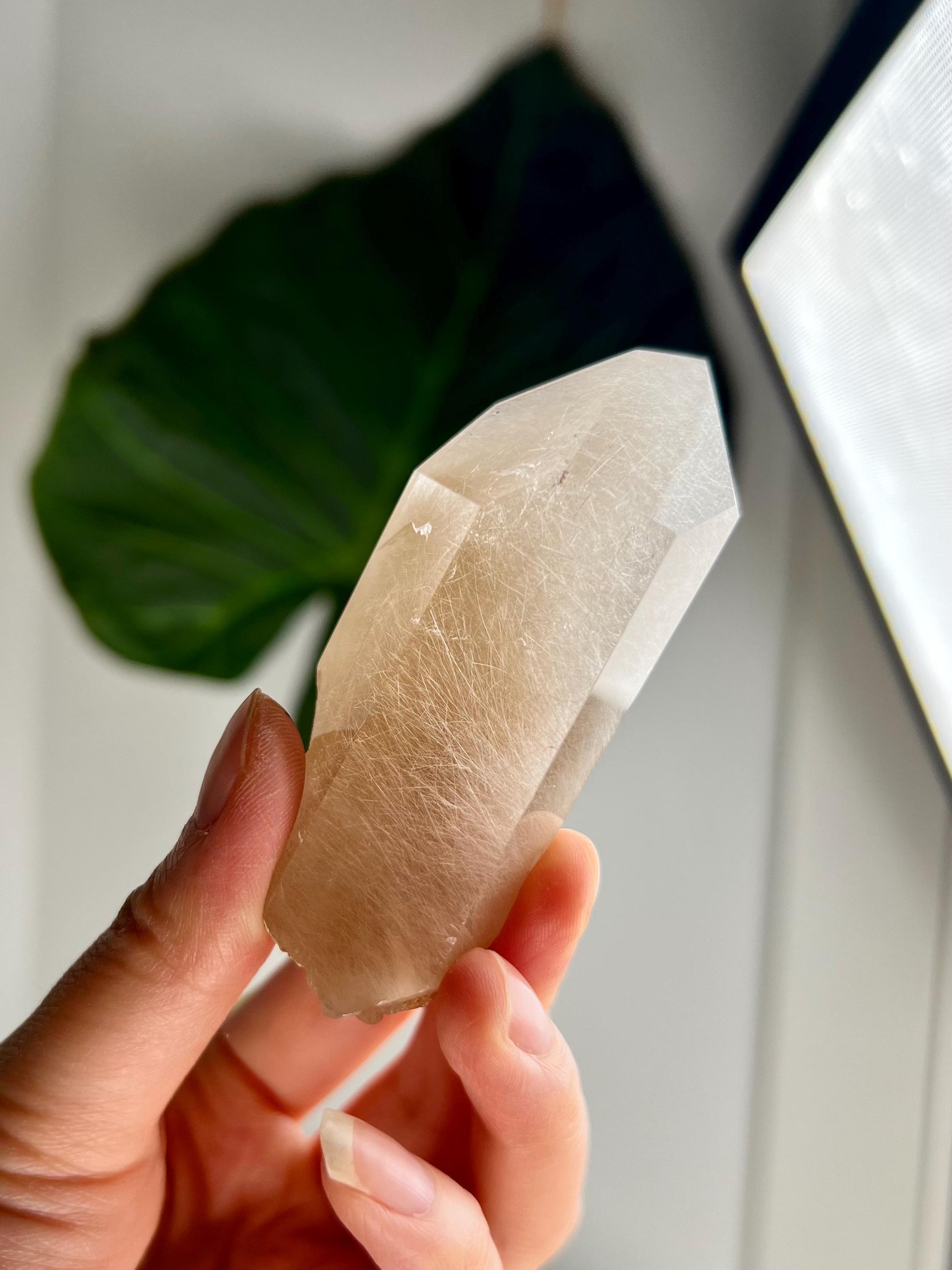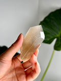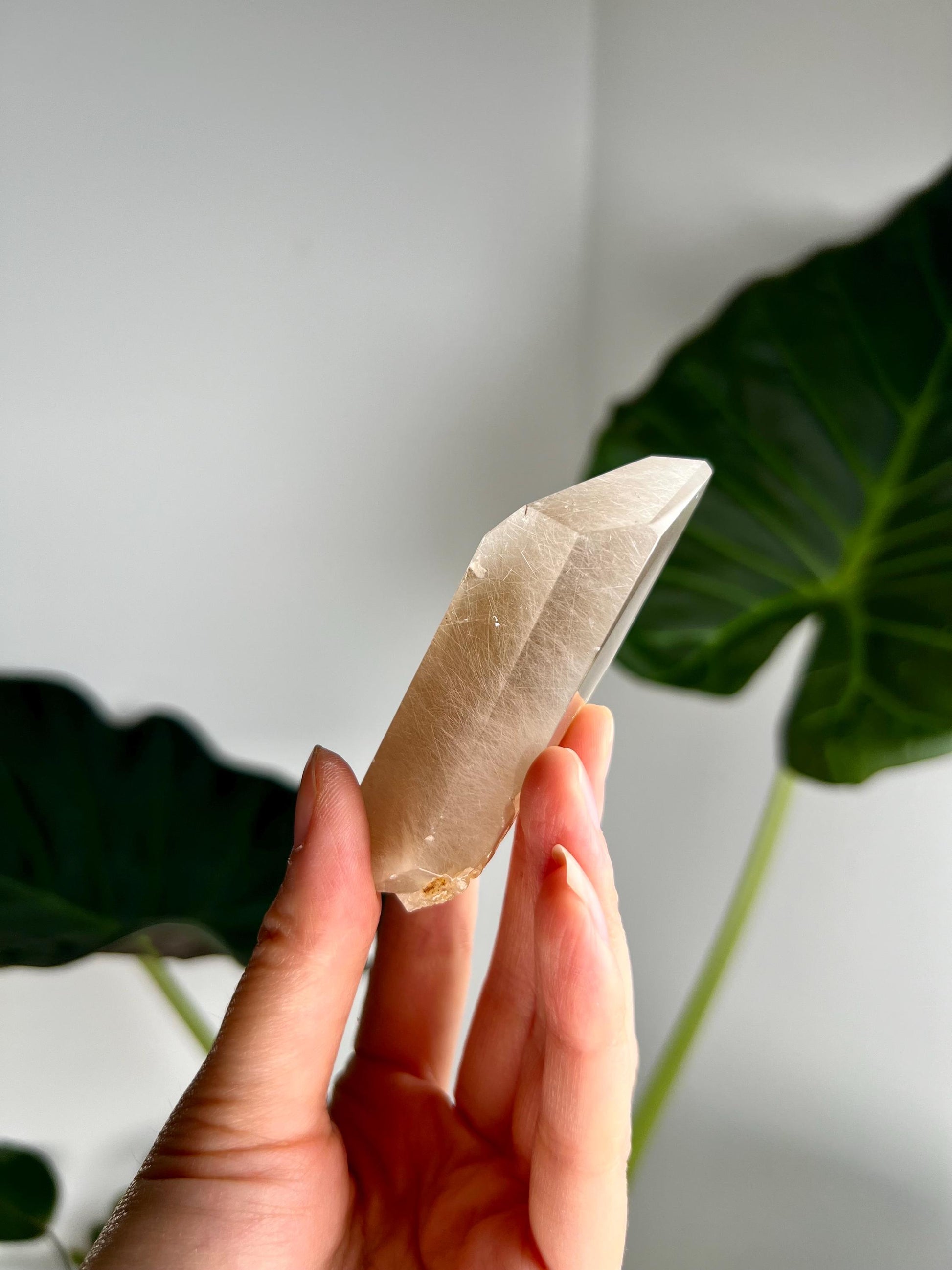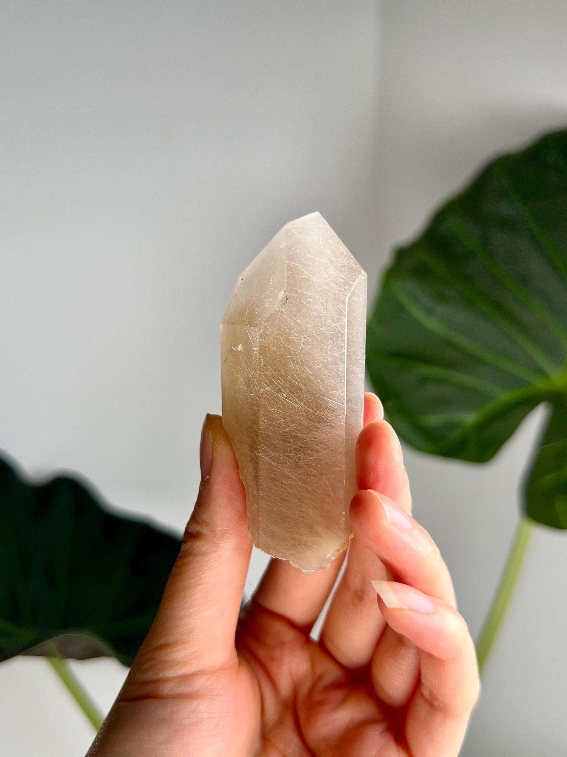 Amphibole Quartz, often referred to as Angel Phantom Quartz, is known for its angelic appearance and high vibrational energy. The presence of inclusions such as pink, golden, and silver amphibole, as well as fine hair-like rutile, enhances the crystal's ability to connect with higher realms and angelic guidance. The combination of these colours, especially the elegant peach hue formed by golden and pink amphibole together, adds a unique aesthetic and energy to each piece.