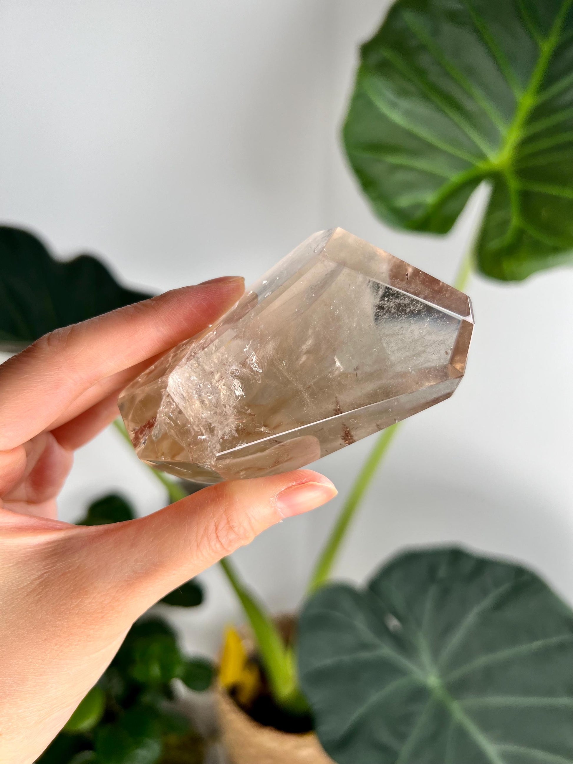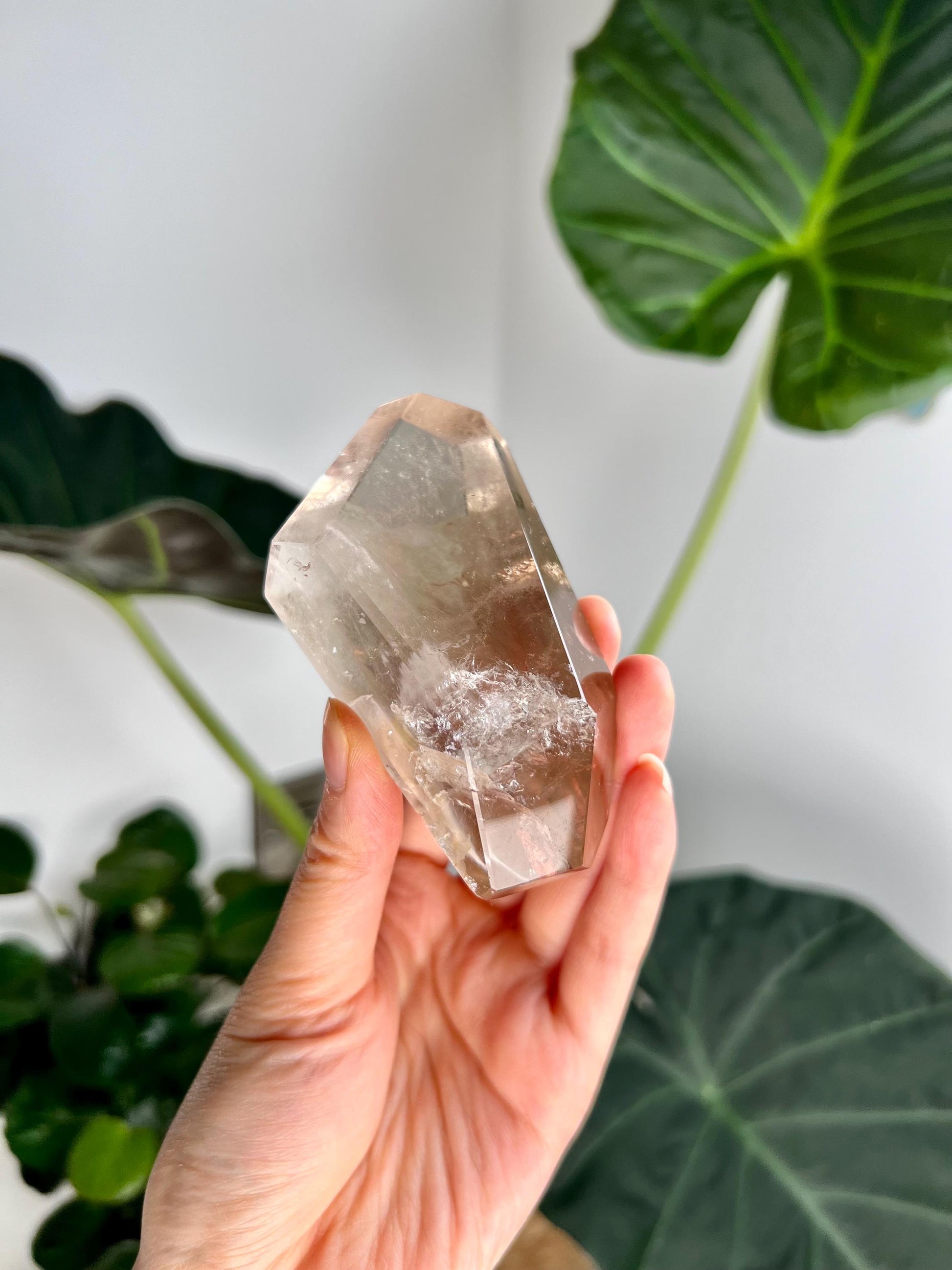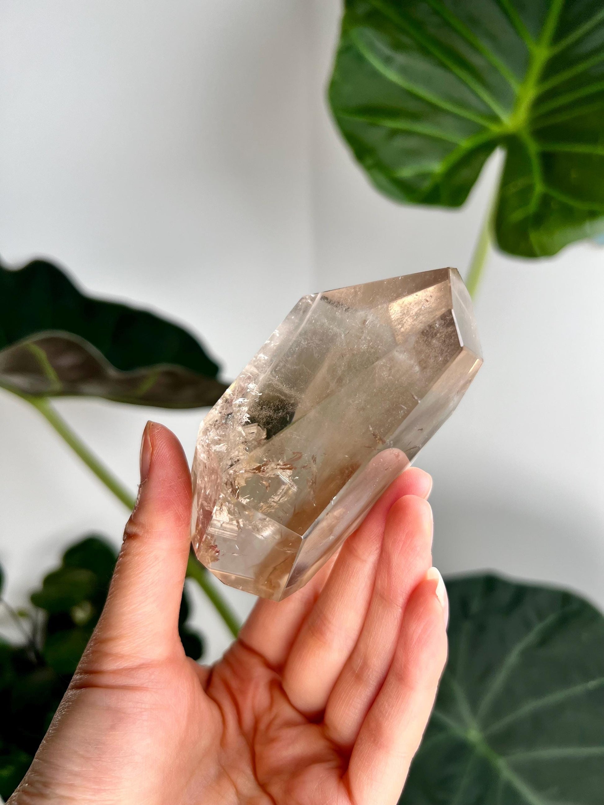 Amphibole Quartz, often referred to as Angel Phantom Quartz, is known for its angelic appearance and high vibrational energy. The presence of inclusions such as pink, golden, and silver amphibole, as well as fine hair-like rutile, enhances the crystal's ability to connect with higher realms and angelic guidance. The combination of these colours, especially the elegant peach hue formed by golden and pink amphibole together, adds a unique aesthetic and energy to each piece.