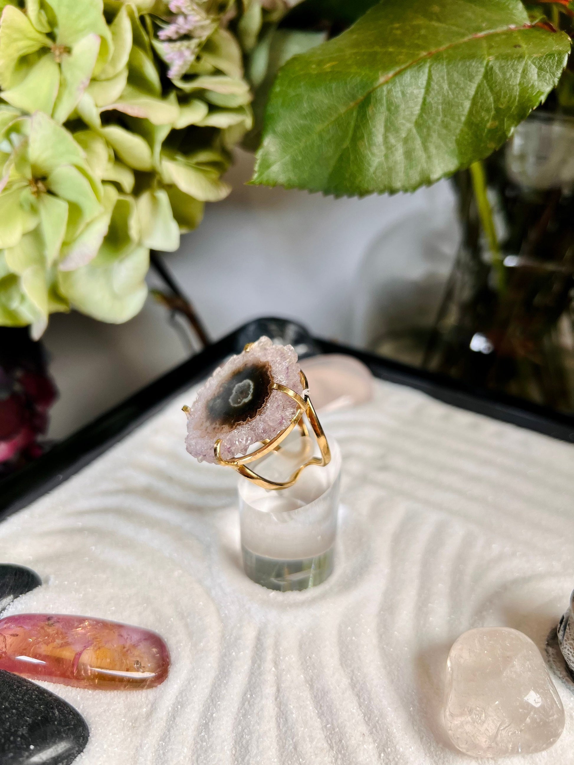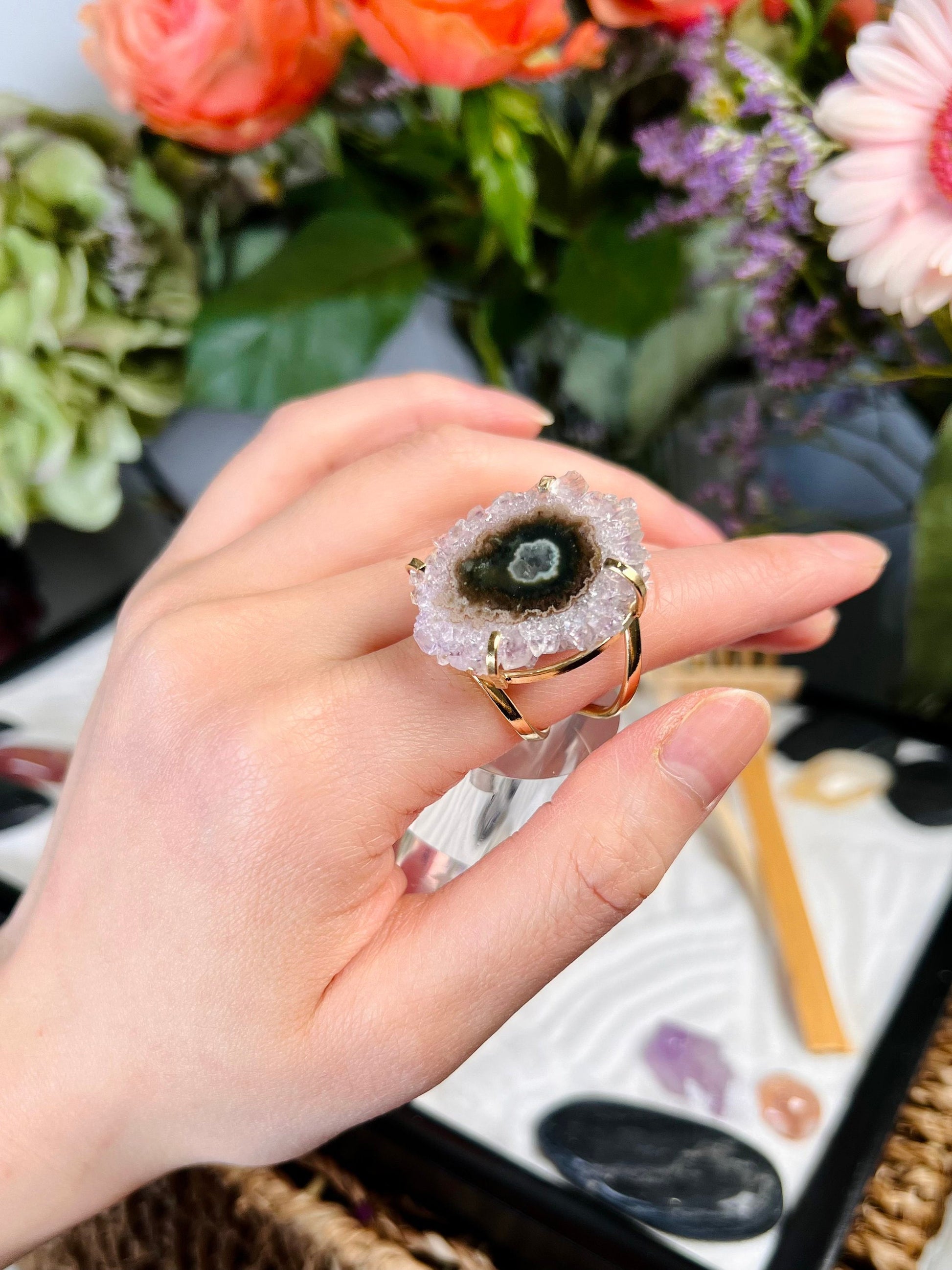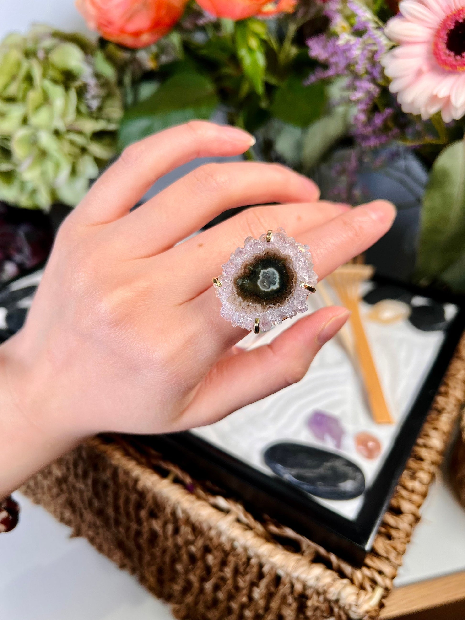 Grade AAA Natural Stalactite Eye Arch Ring with Quartz, Crystal Healing and Energy Protection