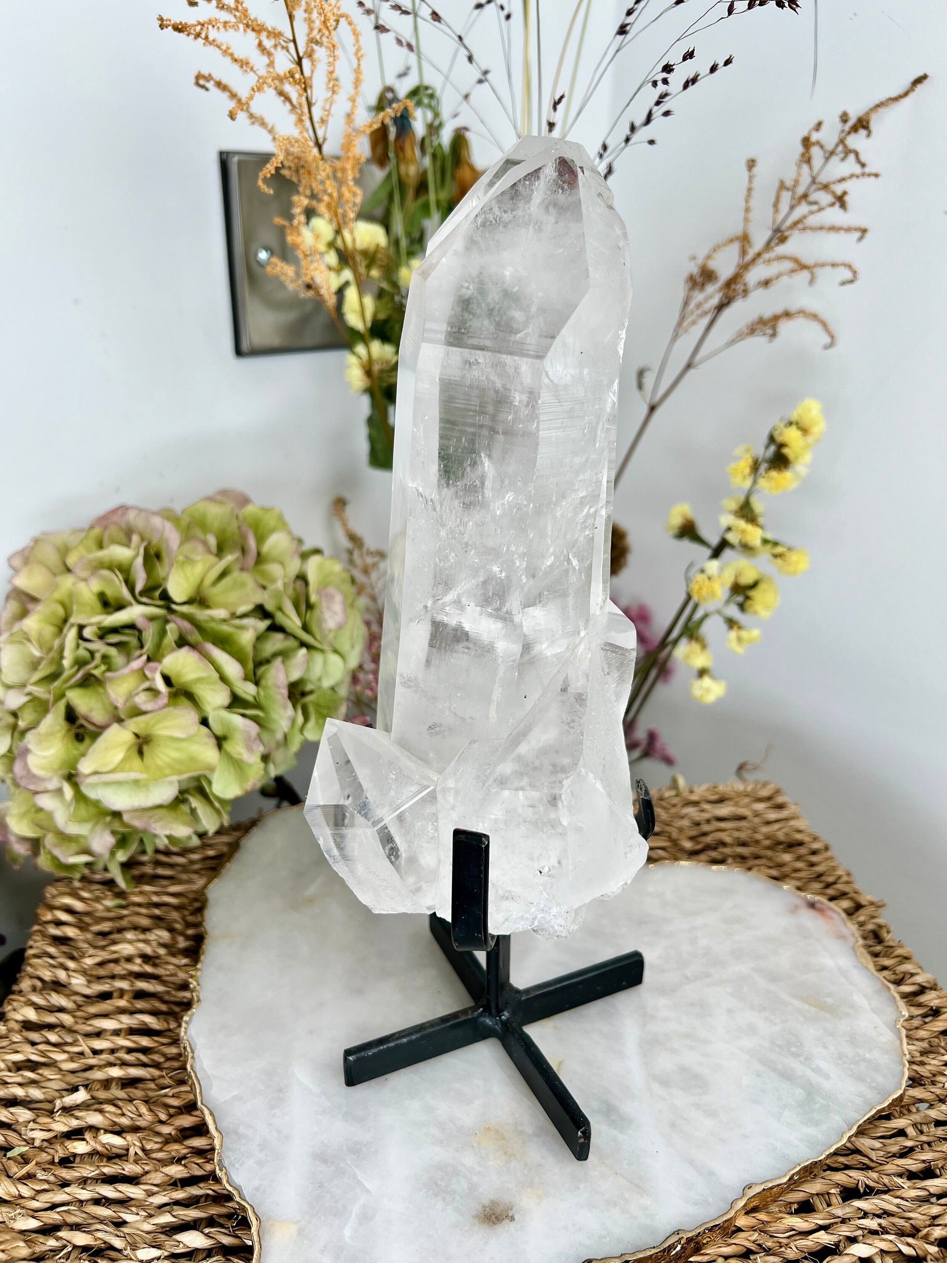 Grade AAA+ Natural Twin Lemurian Quartz on Stand 1.5kg, Self Healed, Starseed Quartz Wand, Super Extra Quality