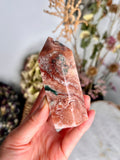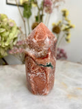 Grade AAA Pink Amethyst Tower with Druzy Geode and Green Jasper - Soothing Energy & Divine Femininity 203g PET06