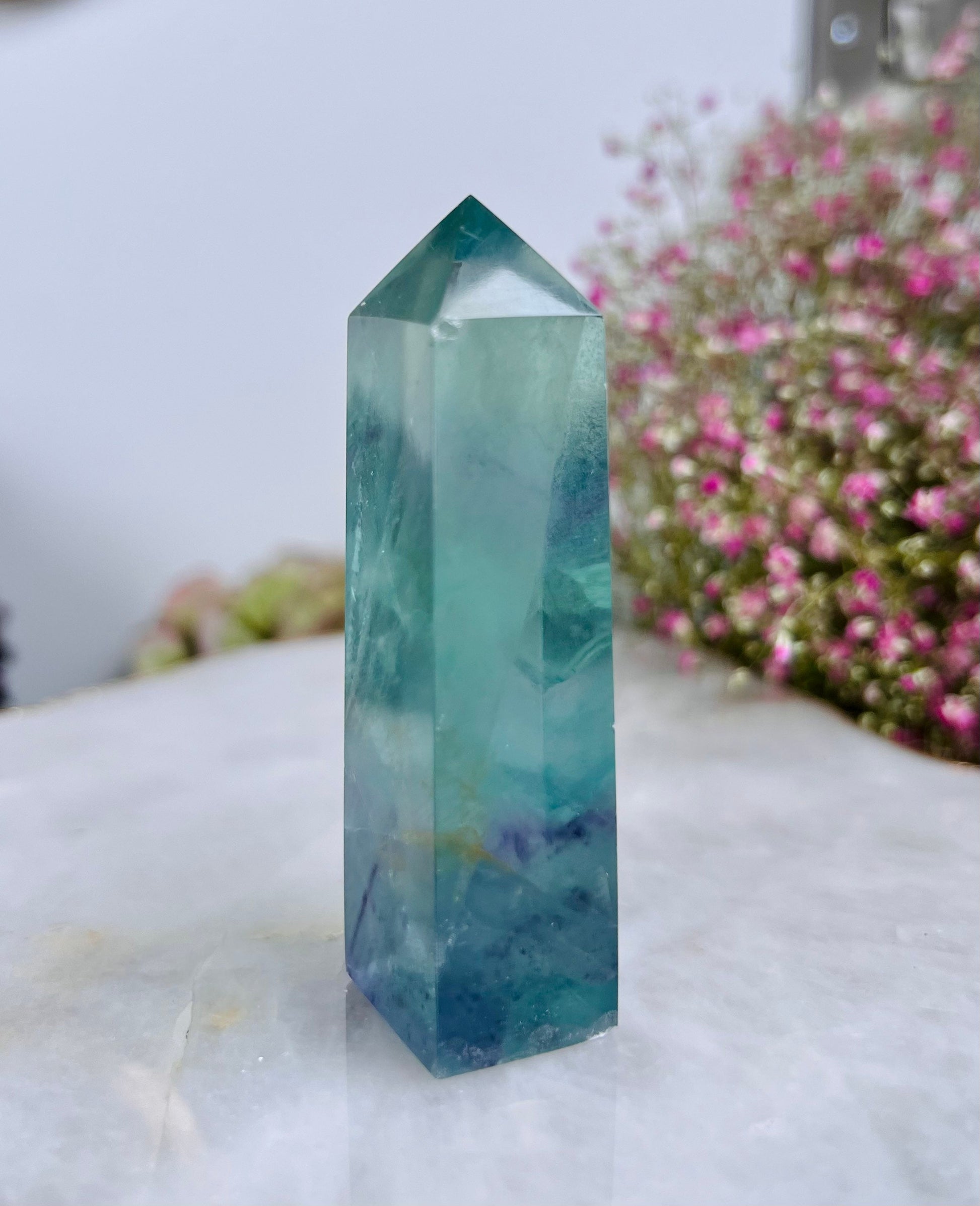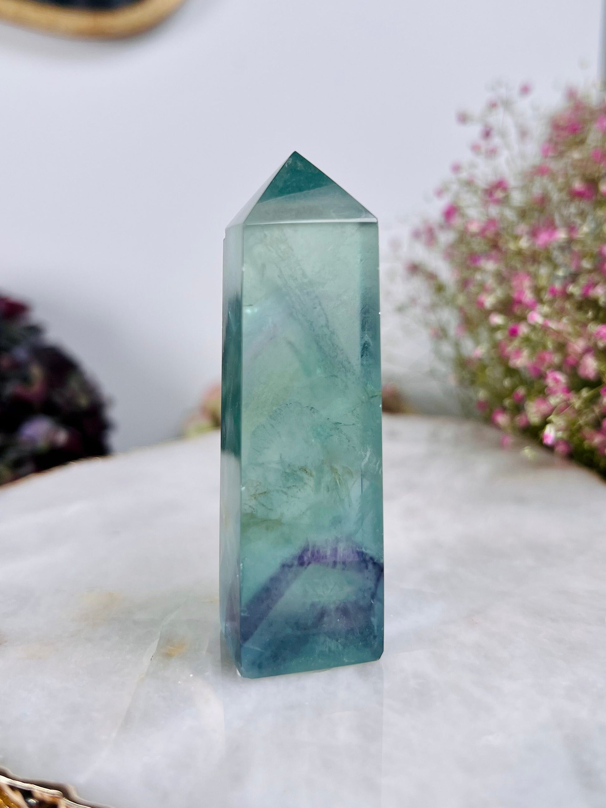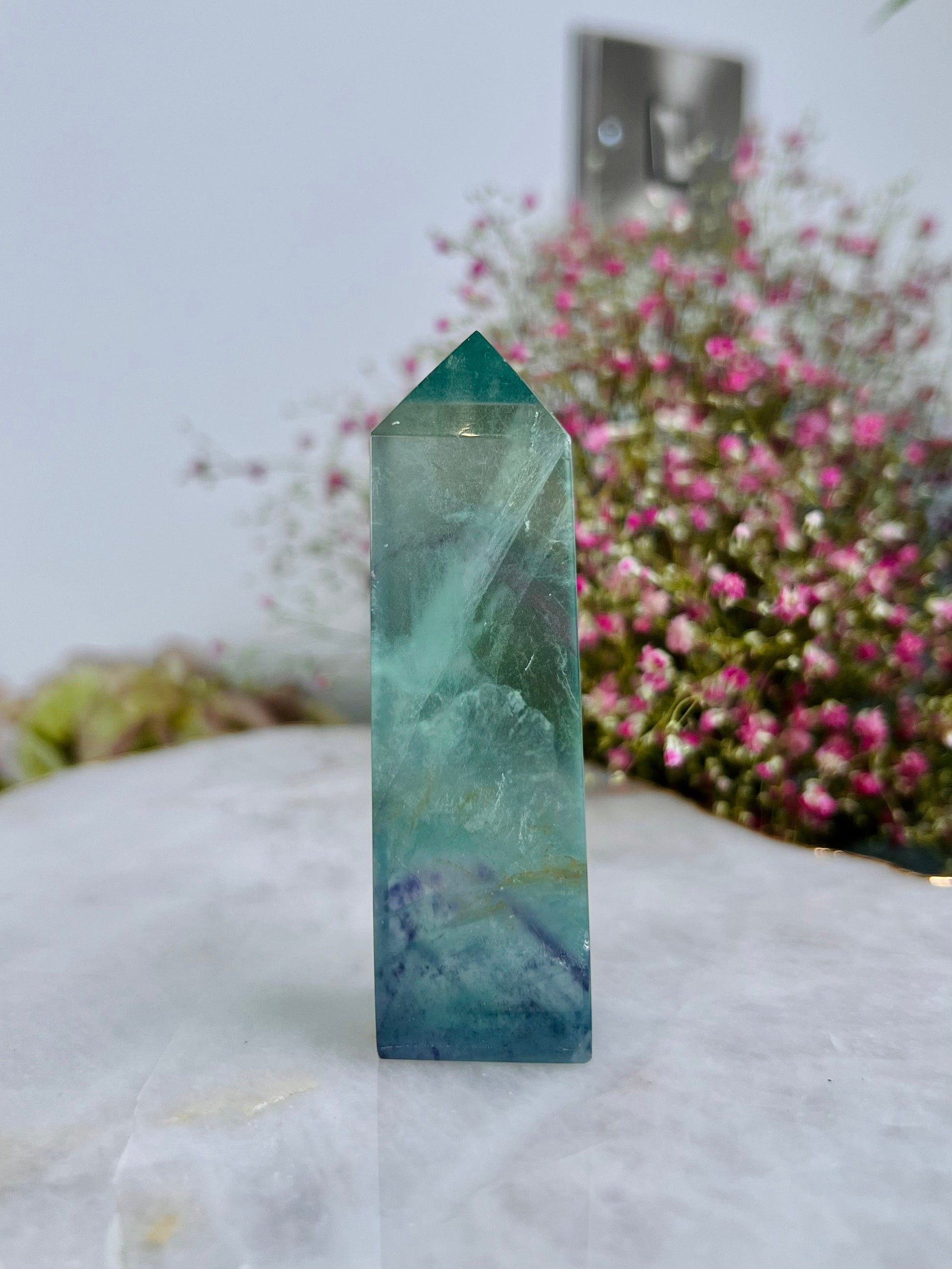 Grade AAA++ Rainbow Fluorite Tower 95g Green Purple Fluorite, Crystal healing Home Decor -A95