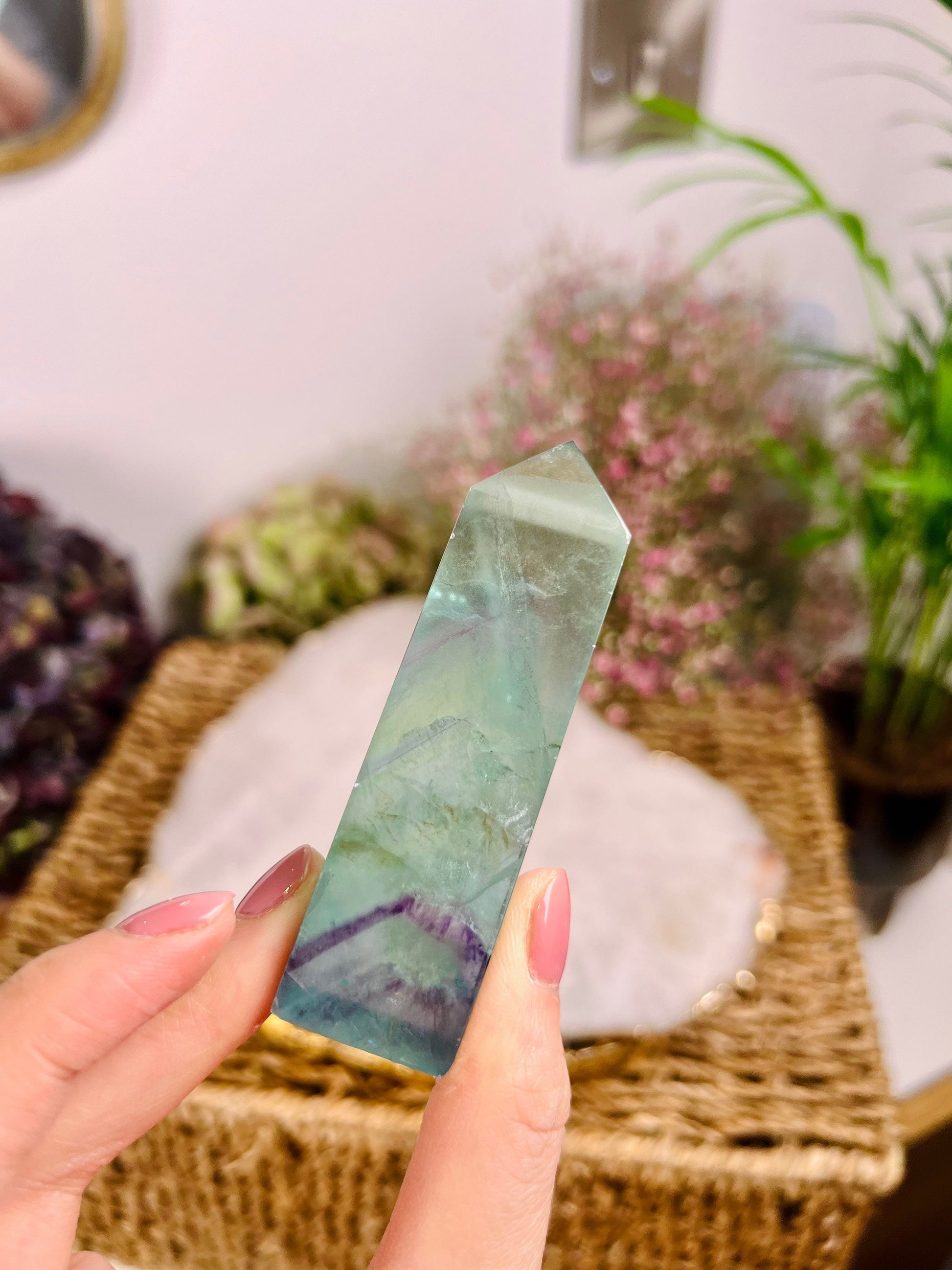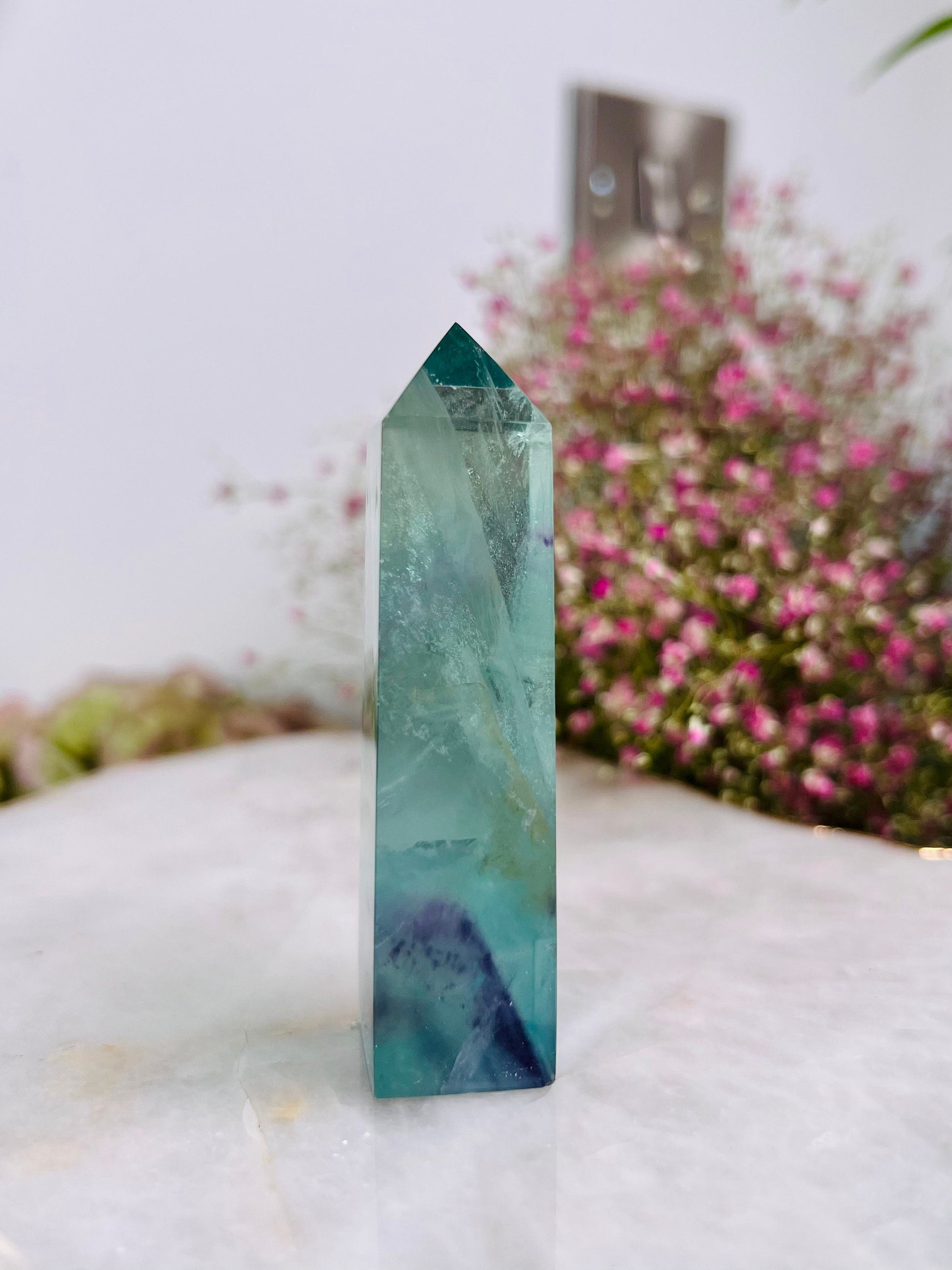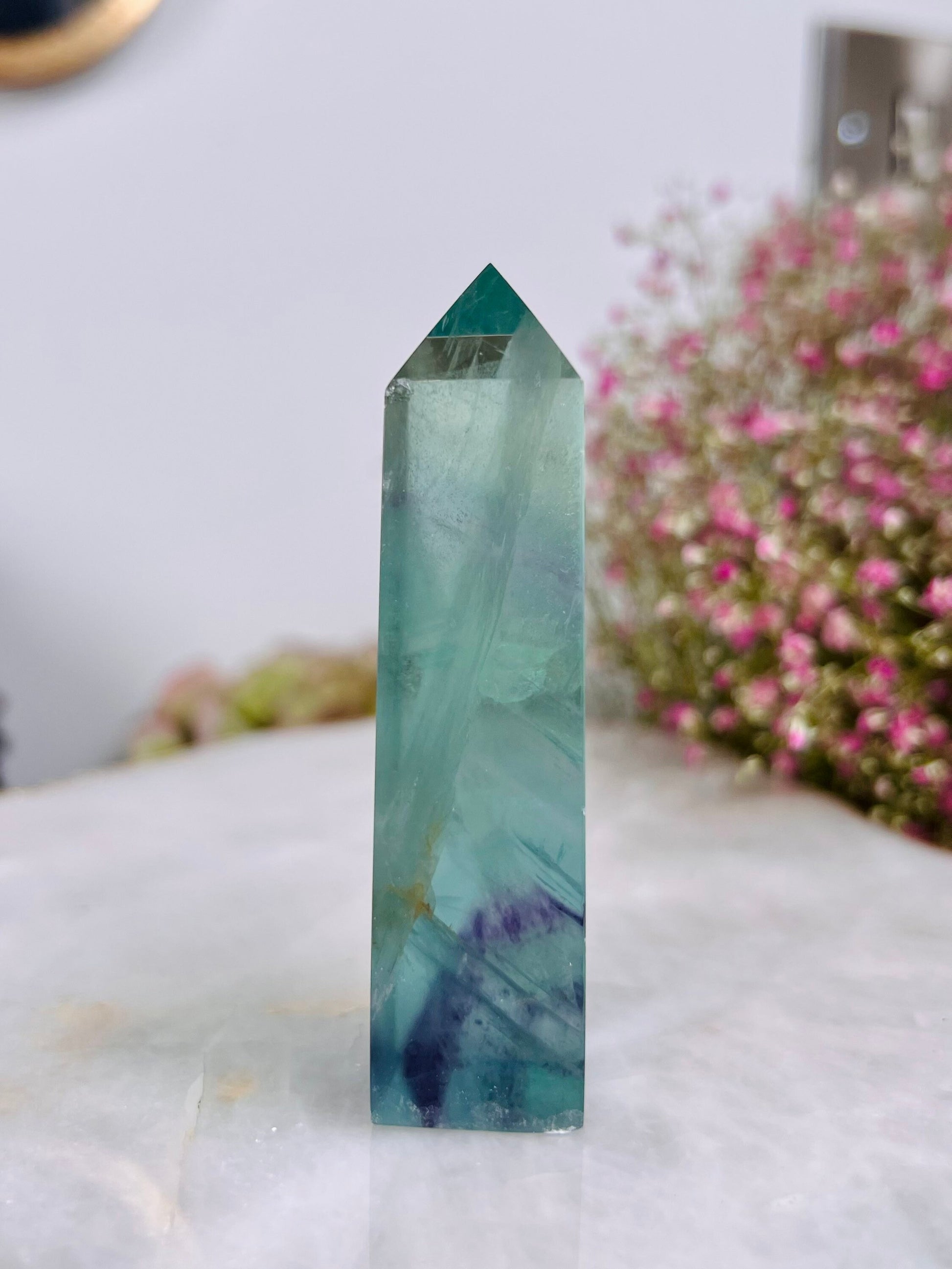 Grade AAA++ Rainbow Fluorite Tower 95g Green Purple Fluorite, Crystal healing Home Decor -A95