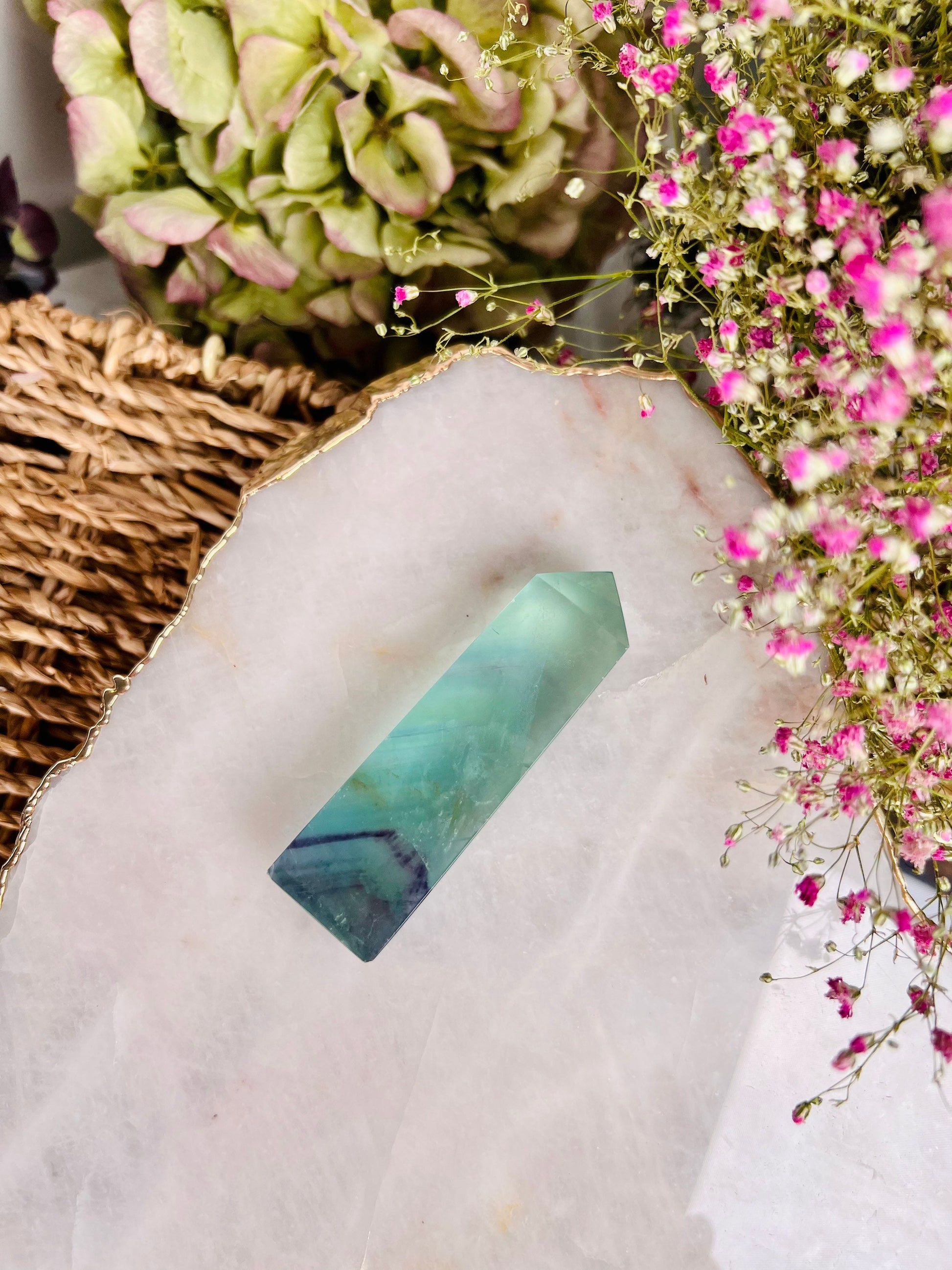 Green Fluorite brings hormones into balance. It harmonises and recharges all chakras.