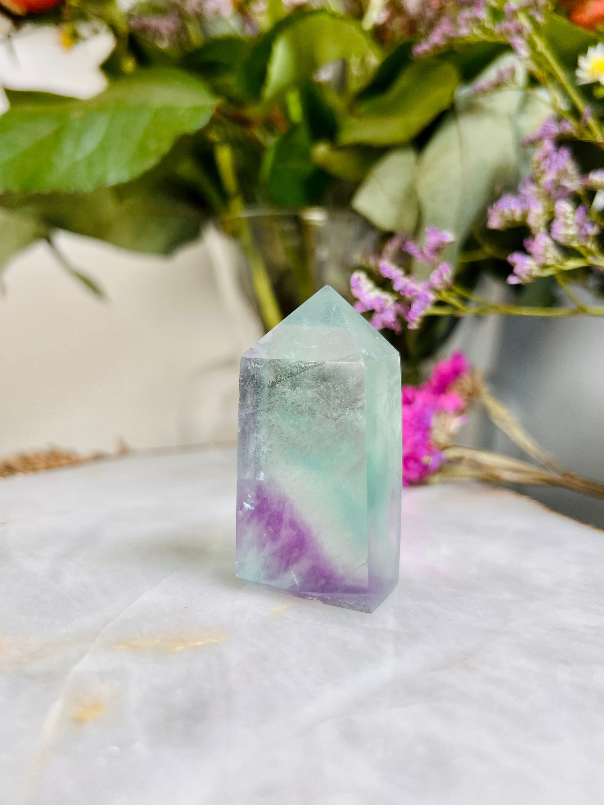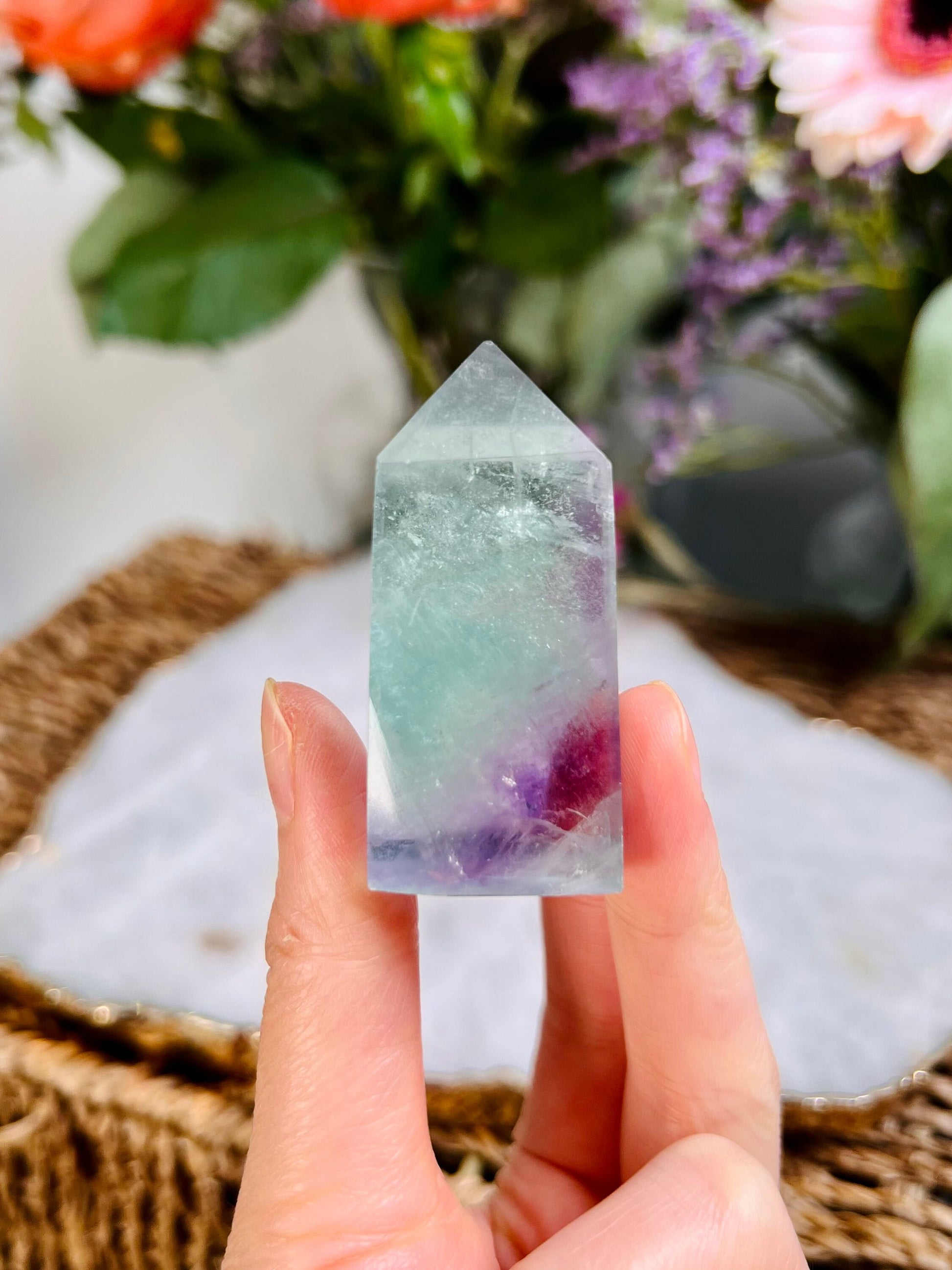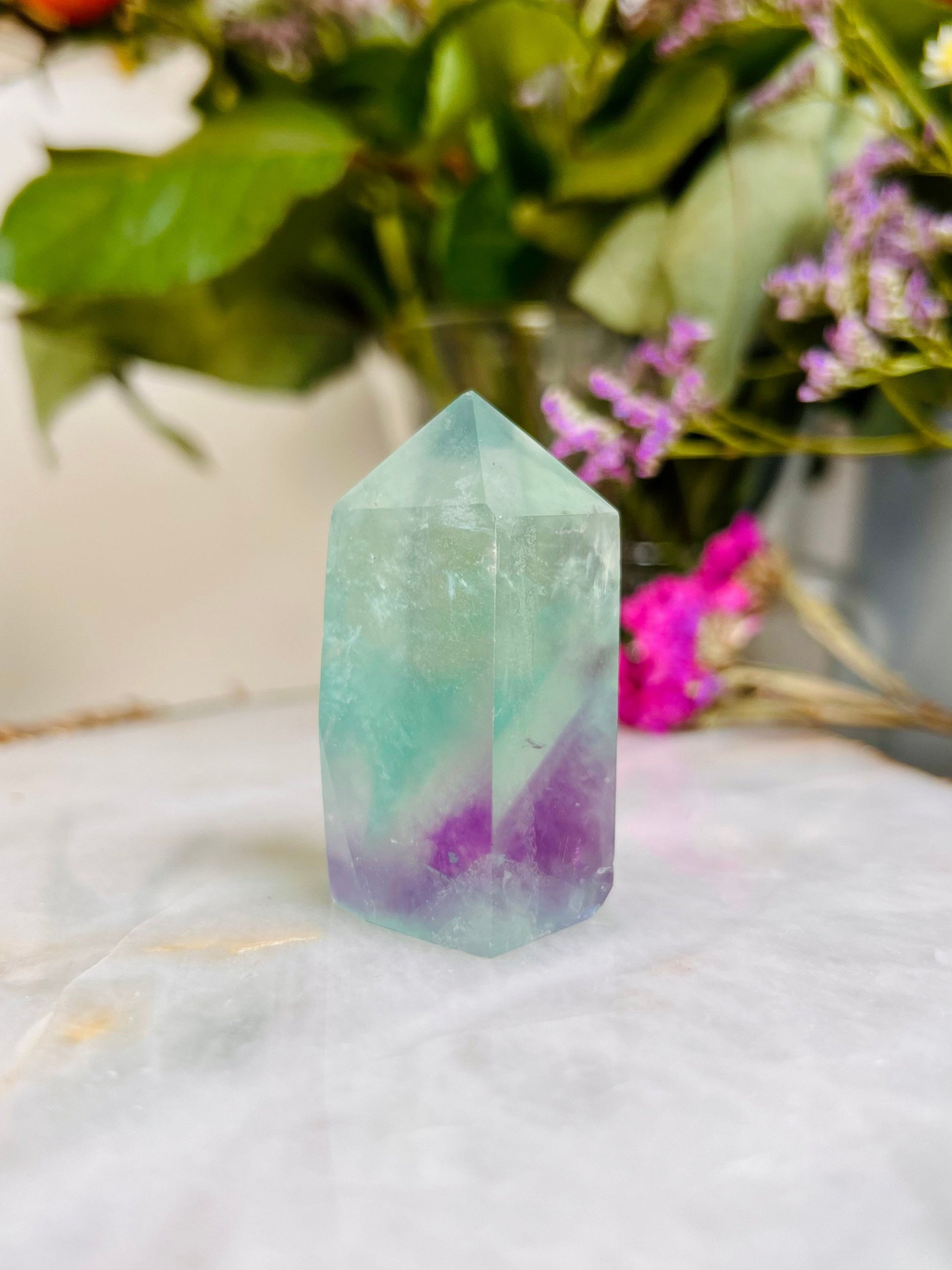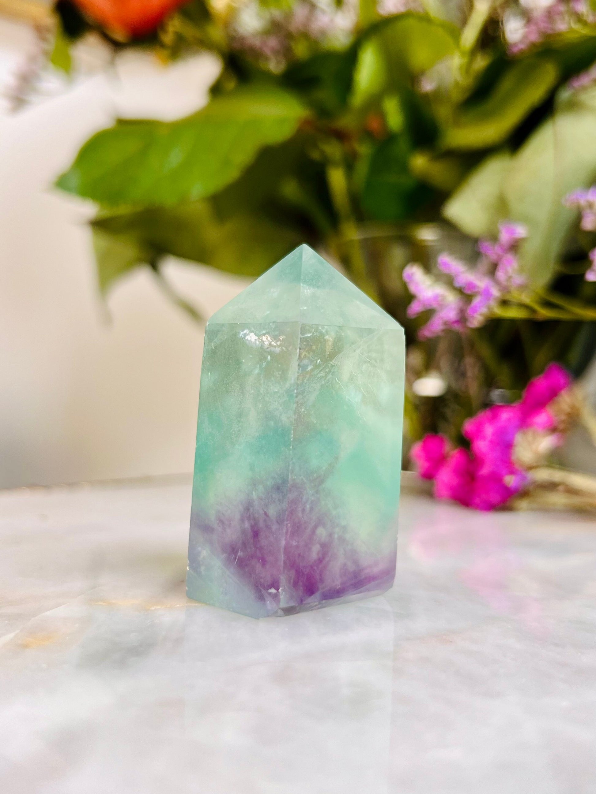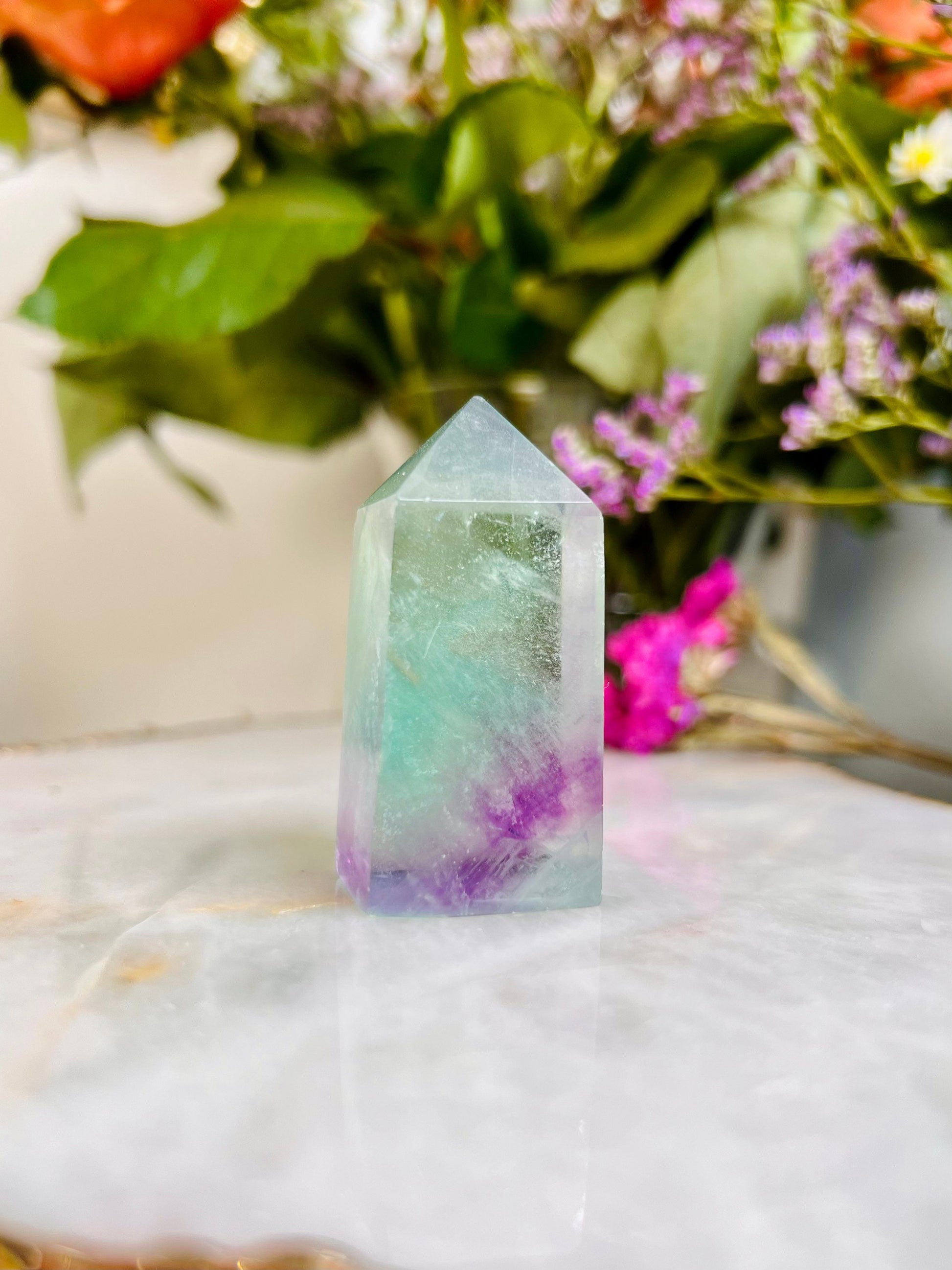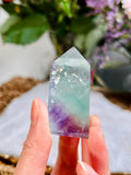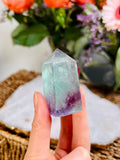 Grade AAA Rainbow Fluorite Tower, Green Purple Fluorite, Gem Quality, Healing Crystal Home Decor 65g
