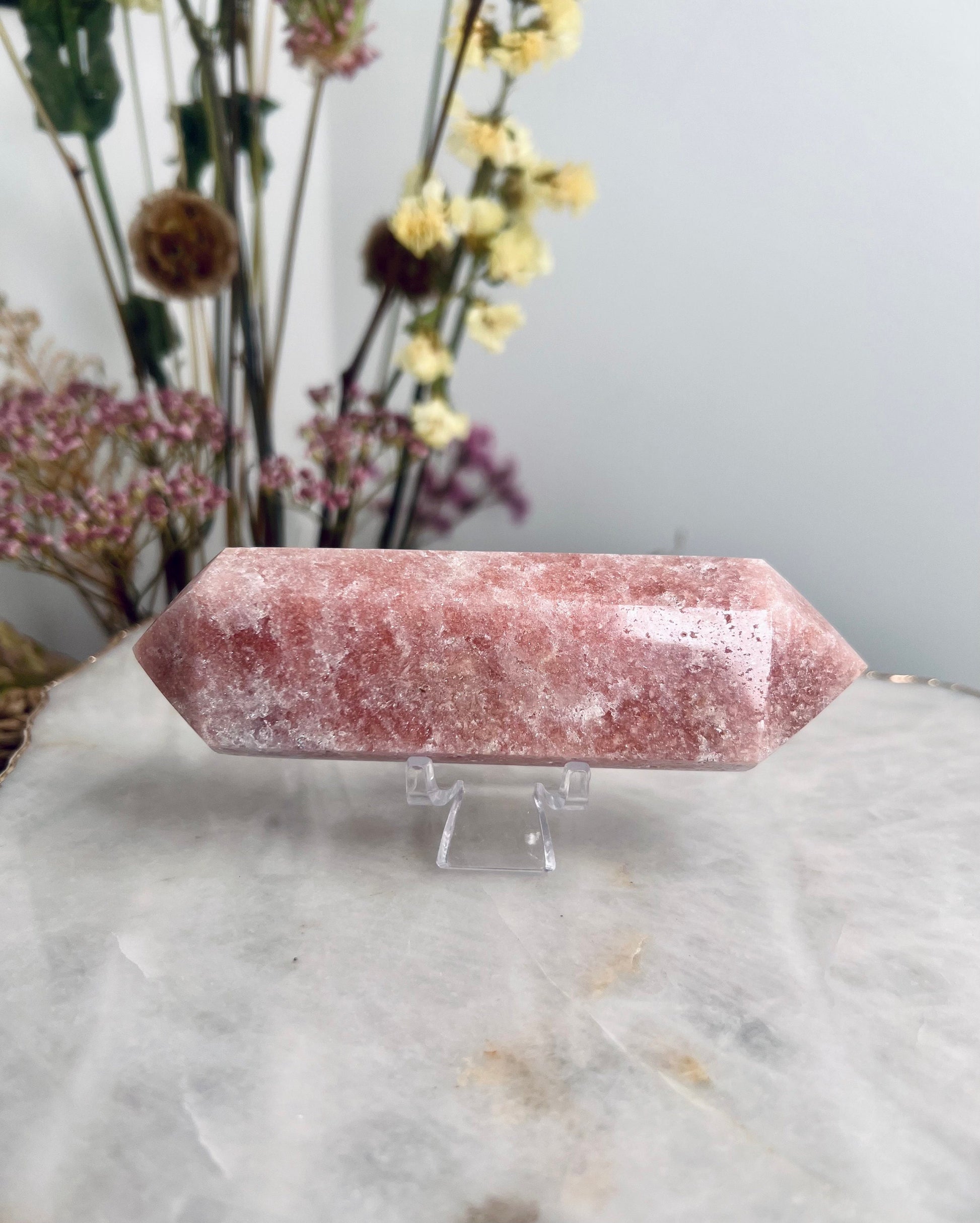 Grade AAA Super Sparkly Pink Amethyst DT, Heart Healing Crystal Wand, Double Terminated 188g PADT-02