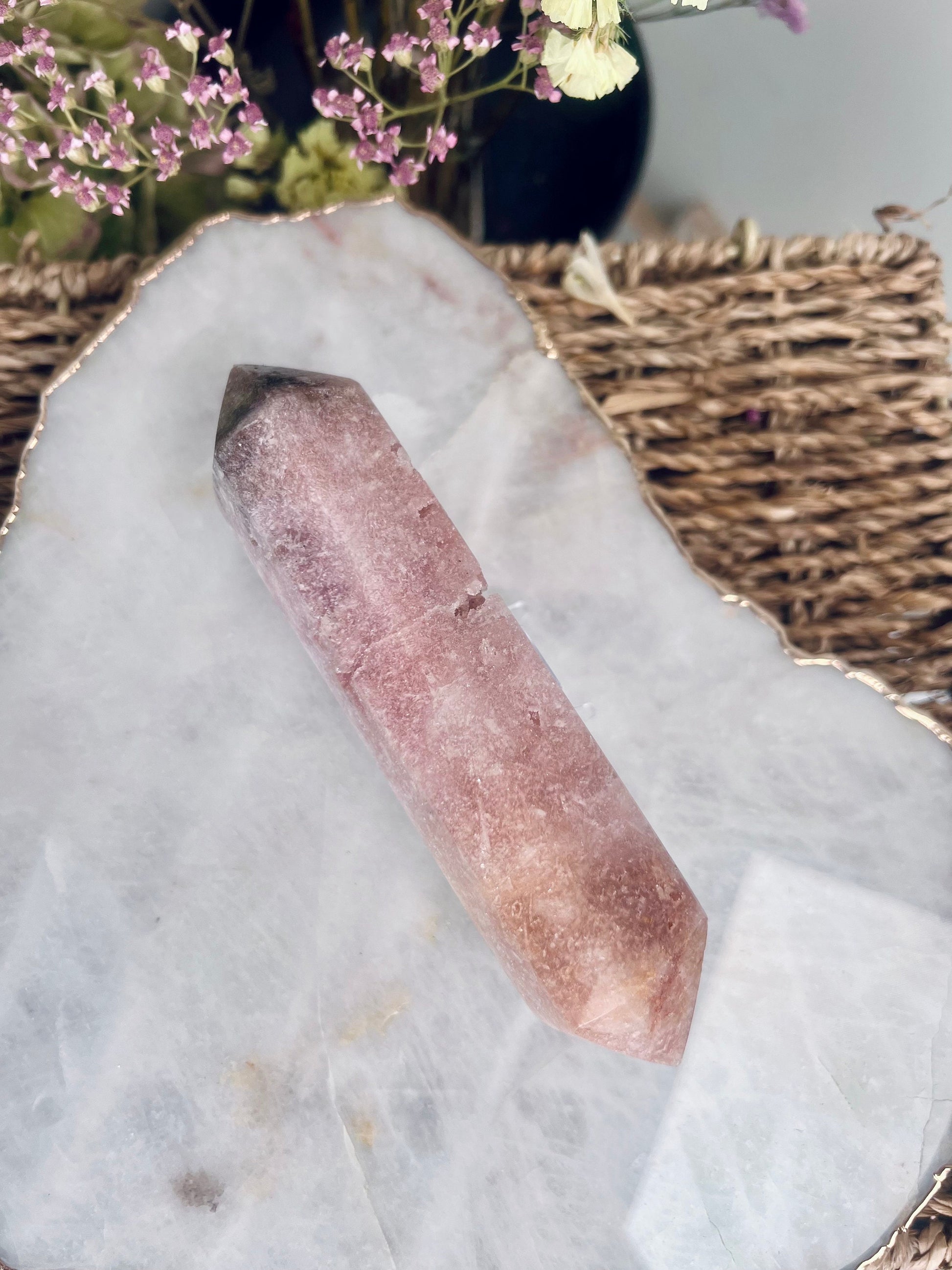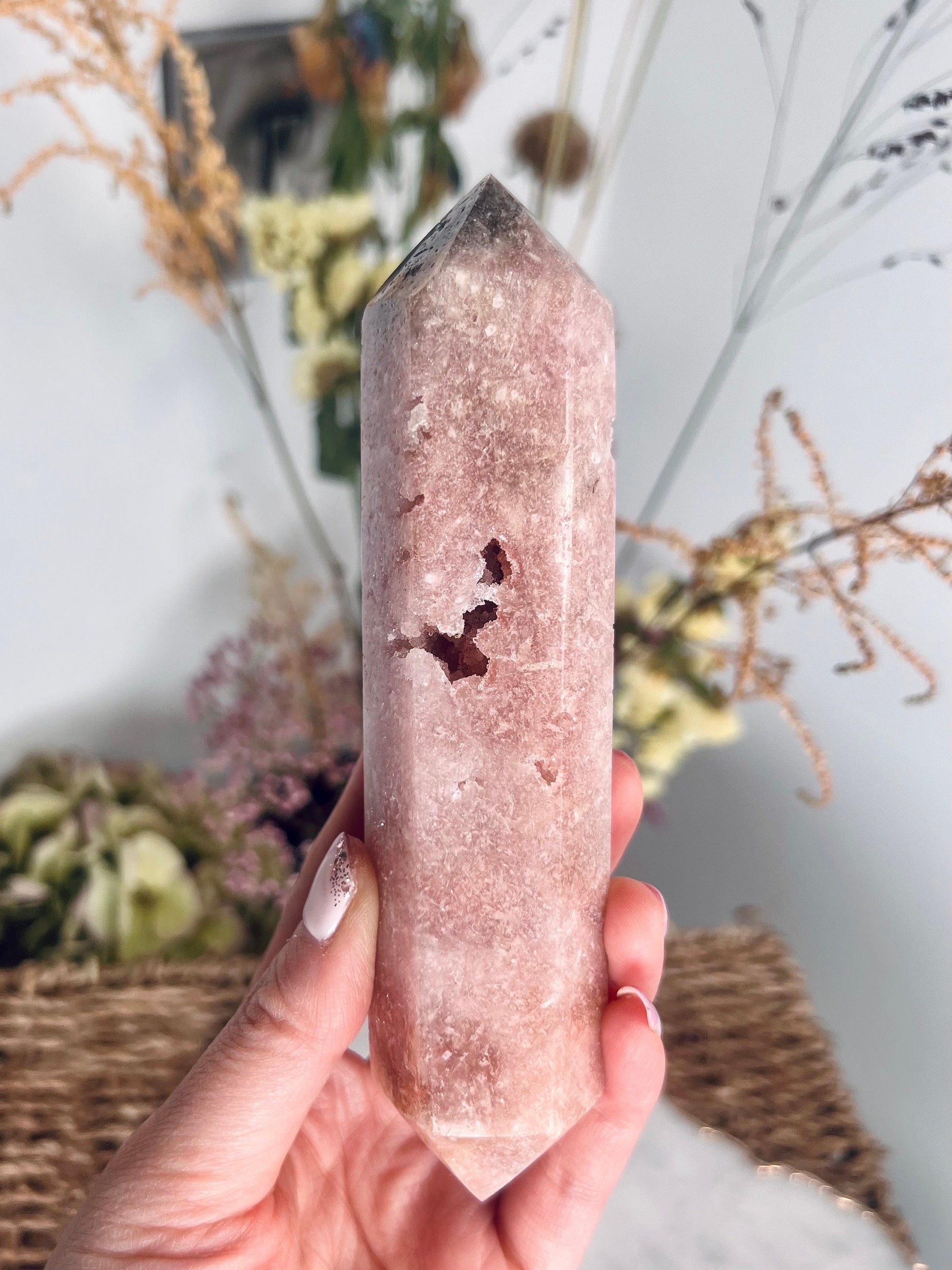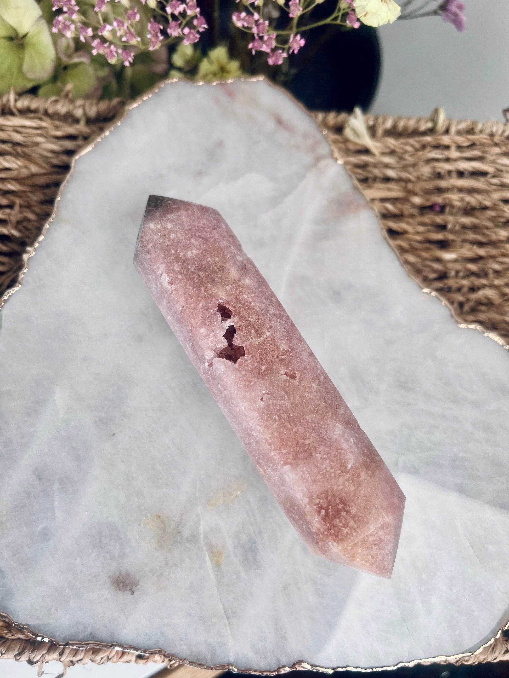 The feminine essence of this crystal remains consistent throughout all of its metaphysical properties. Pink amethyst is a balancer, healer, womb-warmer and comforter - through and through.