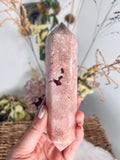Grade AAA Super Sparkly Pink Amethyst DT with Geode, Heart Healing Crystal Wand, Double Terminated 239g PADT-03