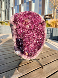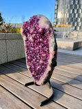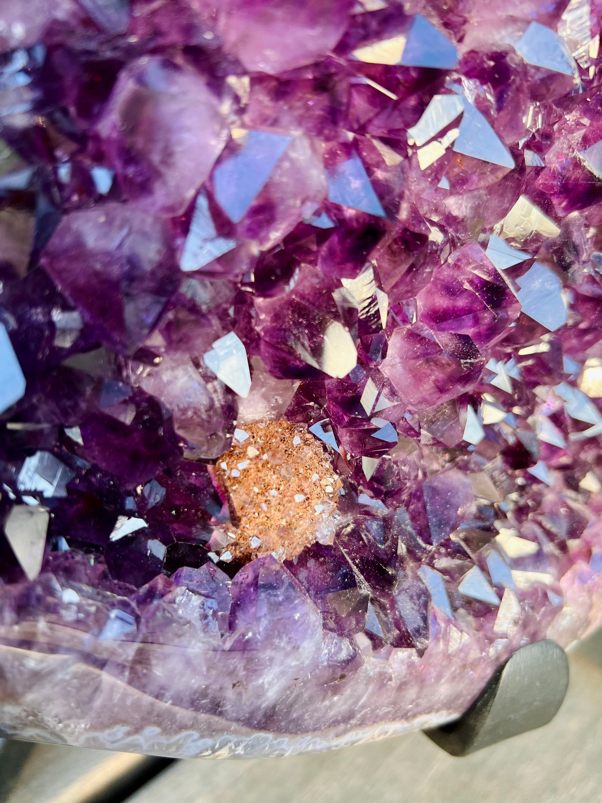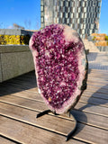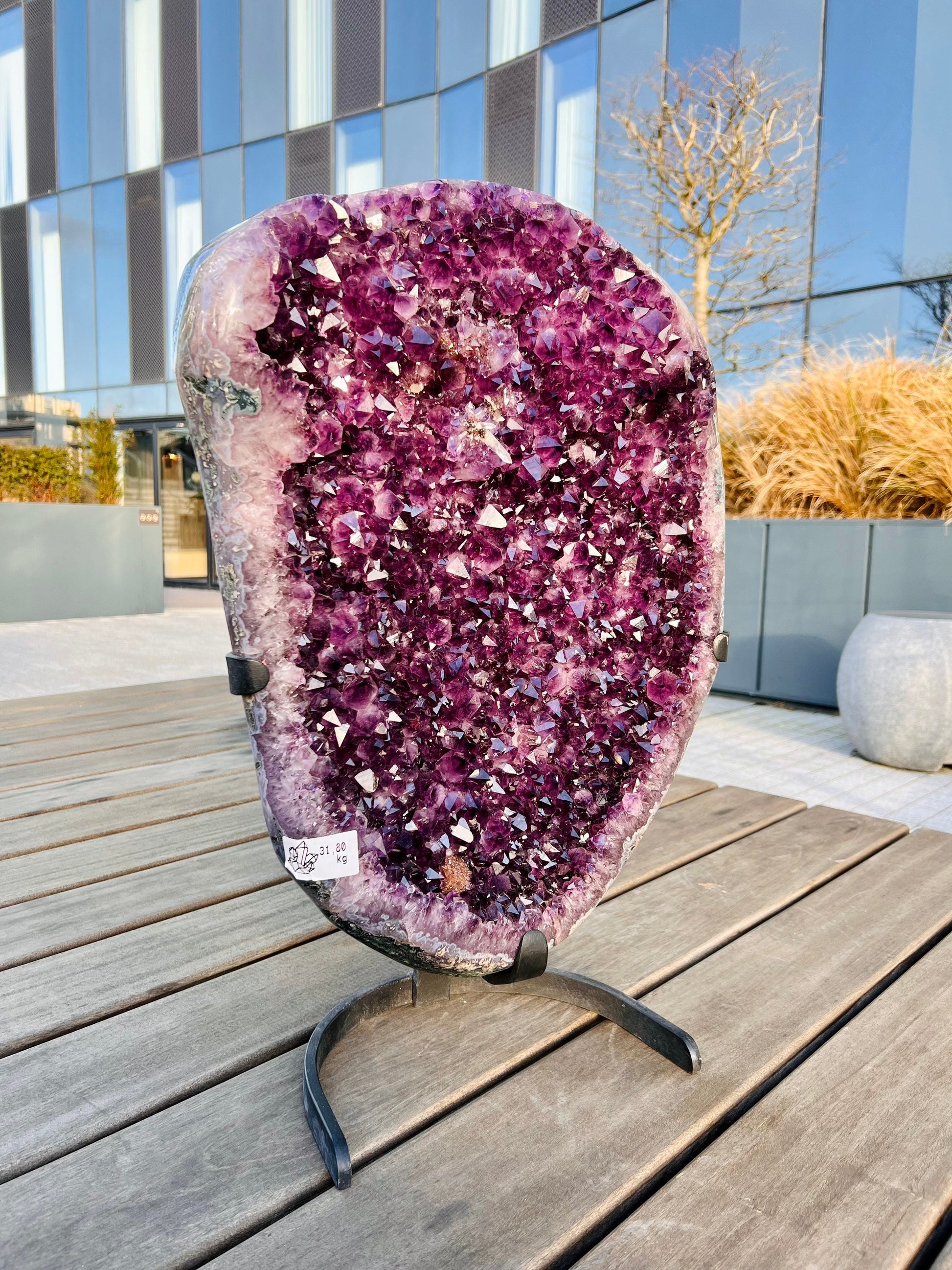 This unique large amethyst can also be taken out of the stand and lay down for table display too! A truly unique and grand piece. Will make a perfect statement piece for your home.