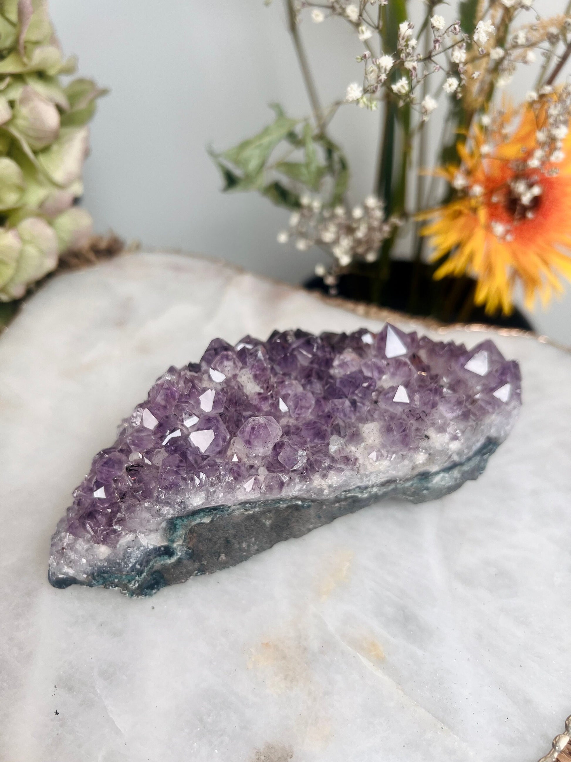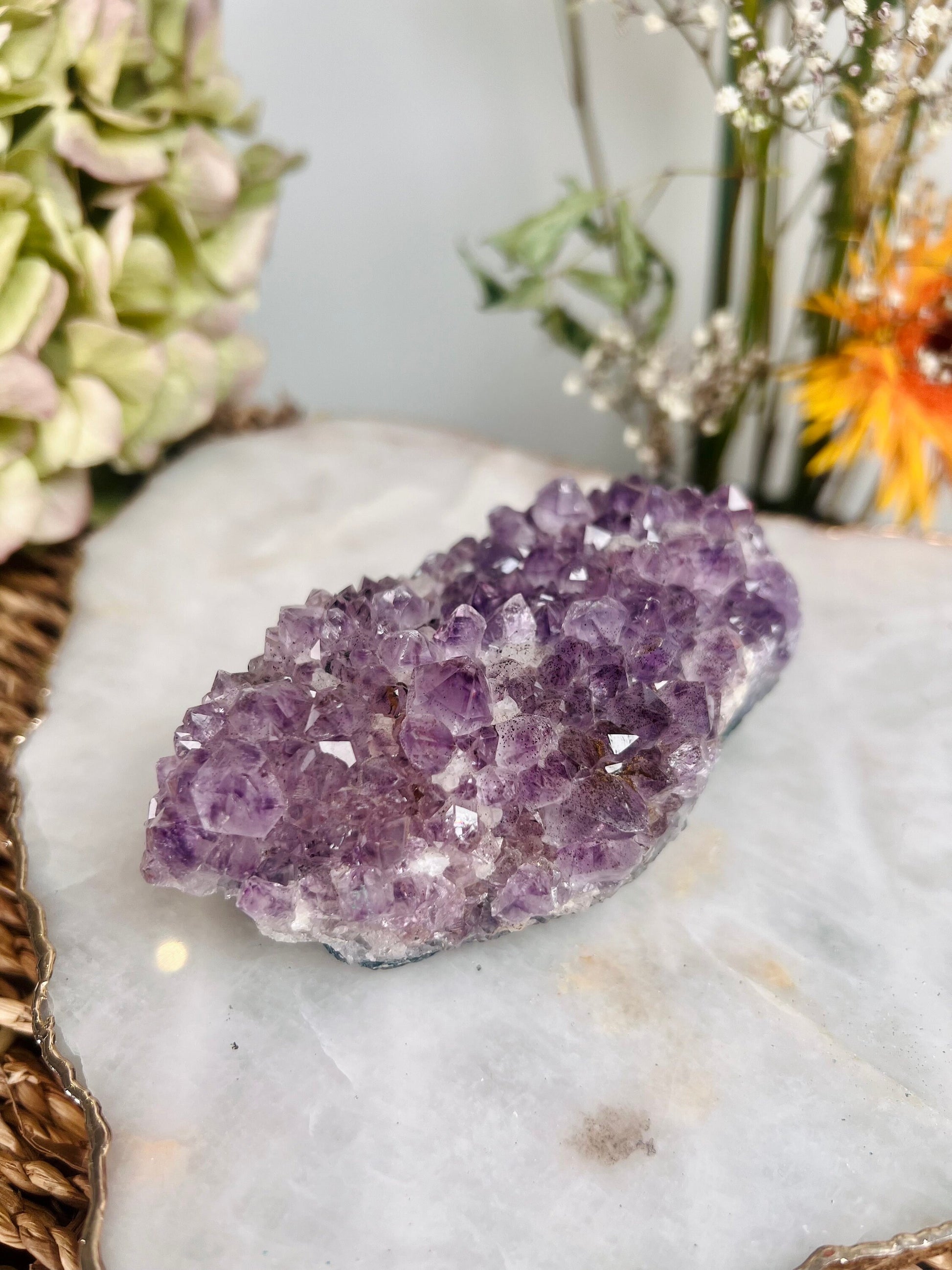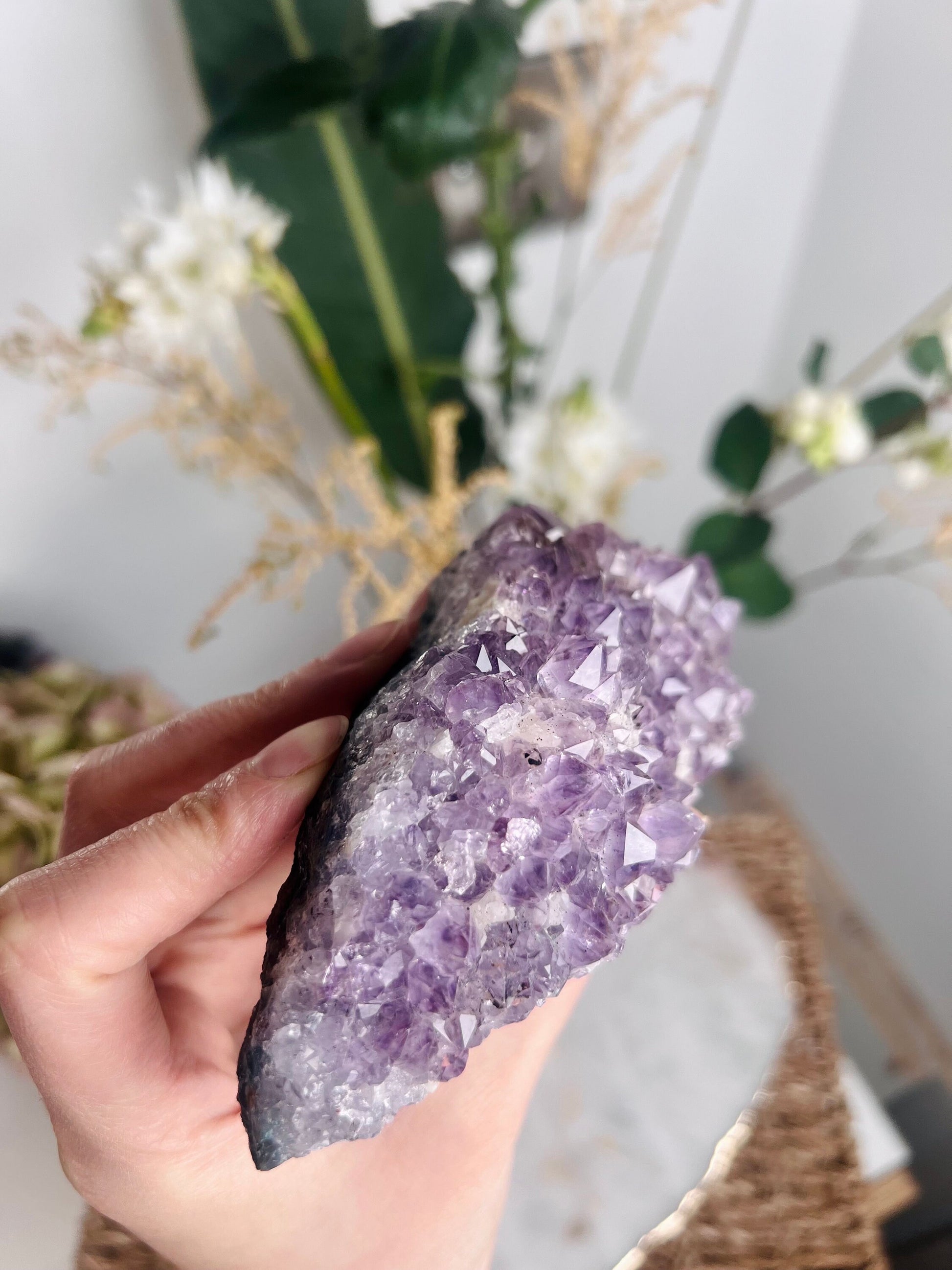Natural Amethyst Cluster with Calcite from Brazil 400g, Crystal Healing Home Decor AC07
