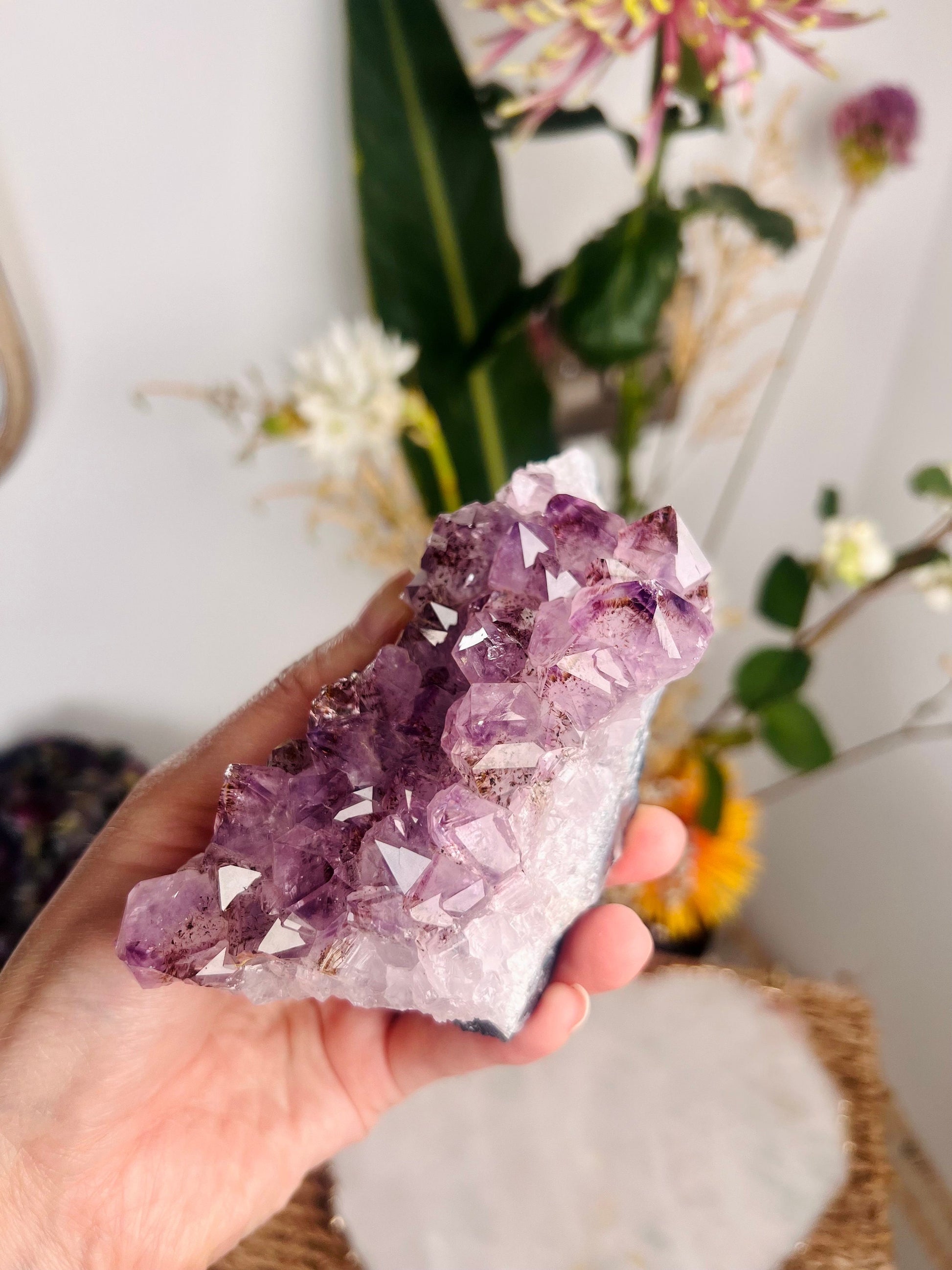 Natural Brazil Amethyst Cluster with Rutile, Healing Crystal Home Decor 430g - AC15