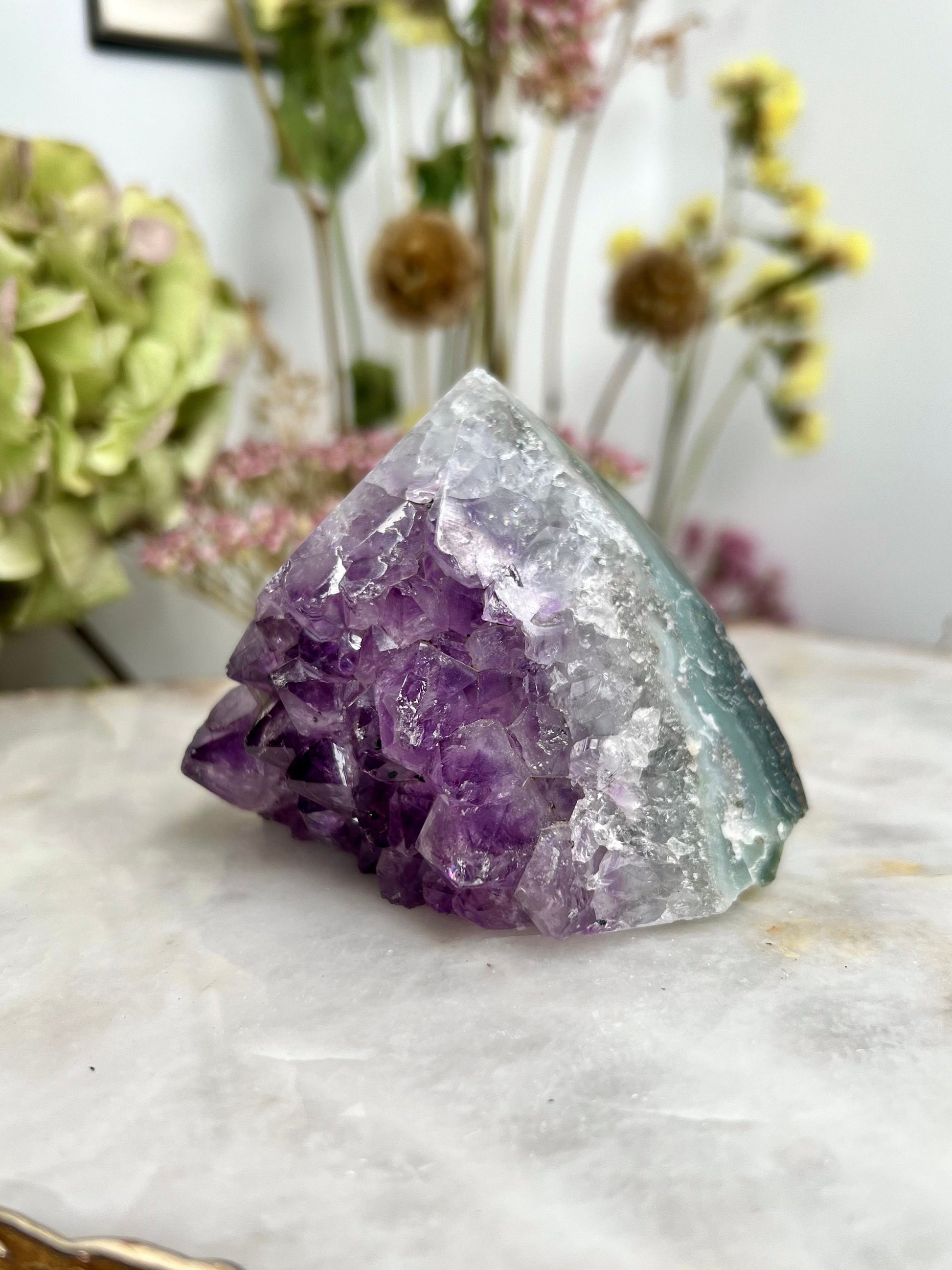Chakra Balancing: Use the geode to clear and balance the Third Eye, Crown, and Heart Chakras, promoting a connection between your spiritual insight, emotional health, and higher consciousness.