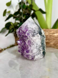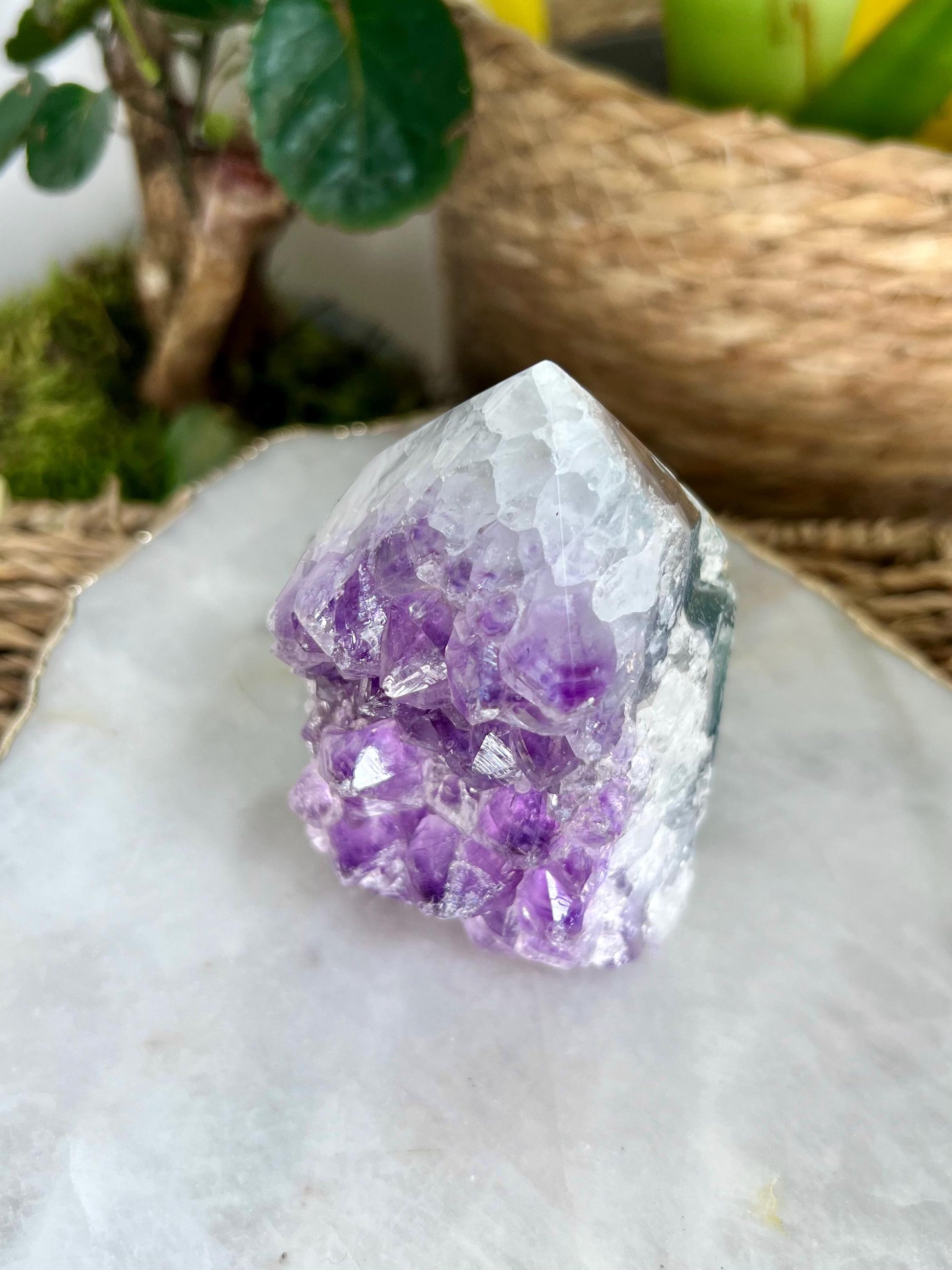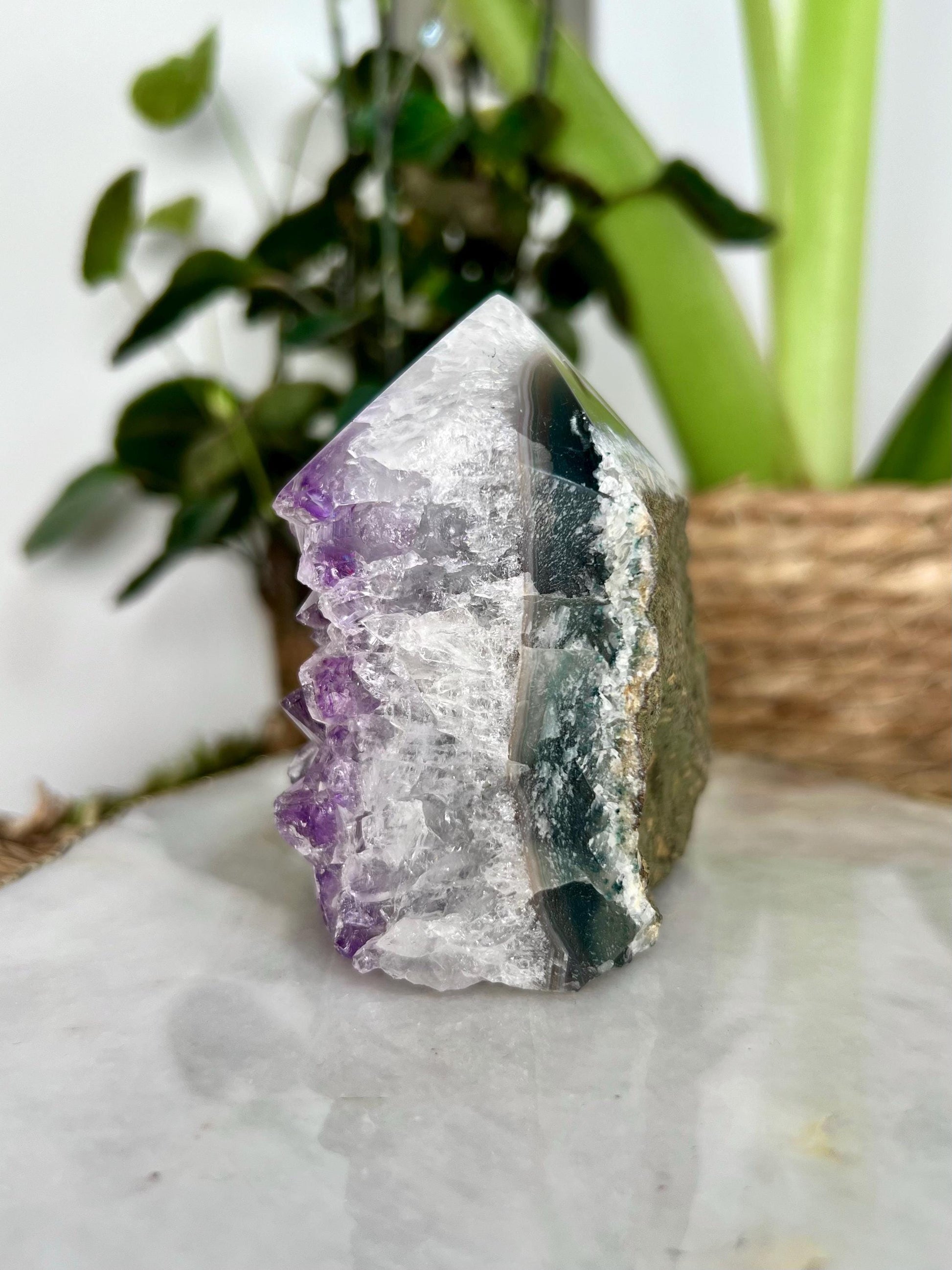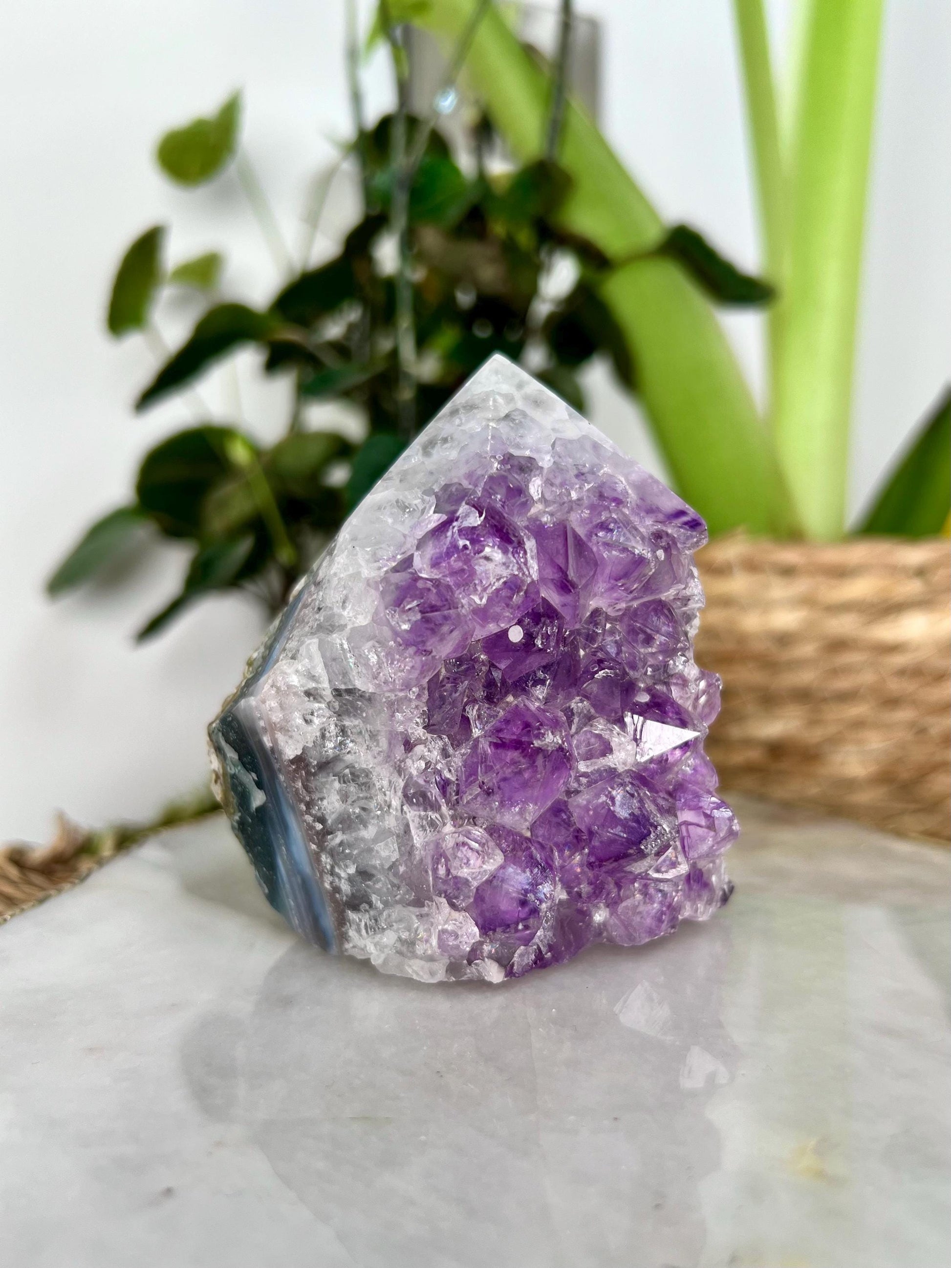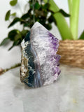 Bring the powerful, healing energy of this Natural Brazilian Amethyst Geode Tower into your home or spiritual practice today and experience the transformative power of Agate, Quartz, and Amethyst!