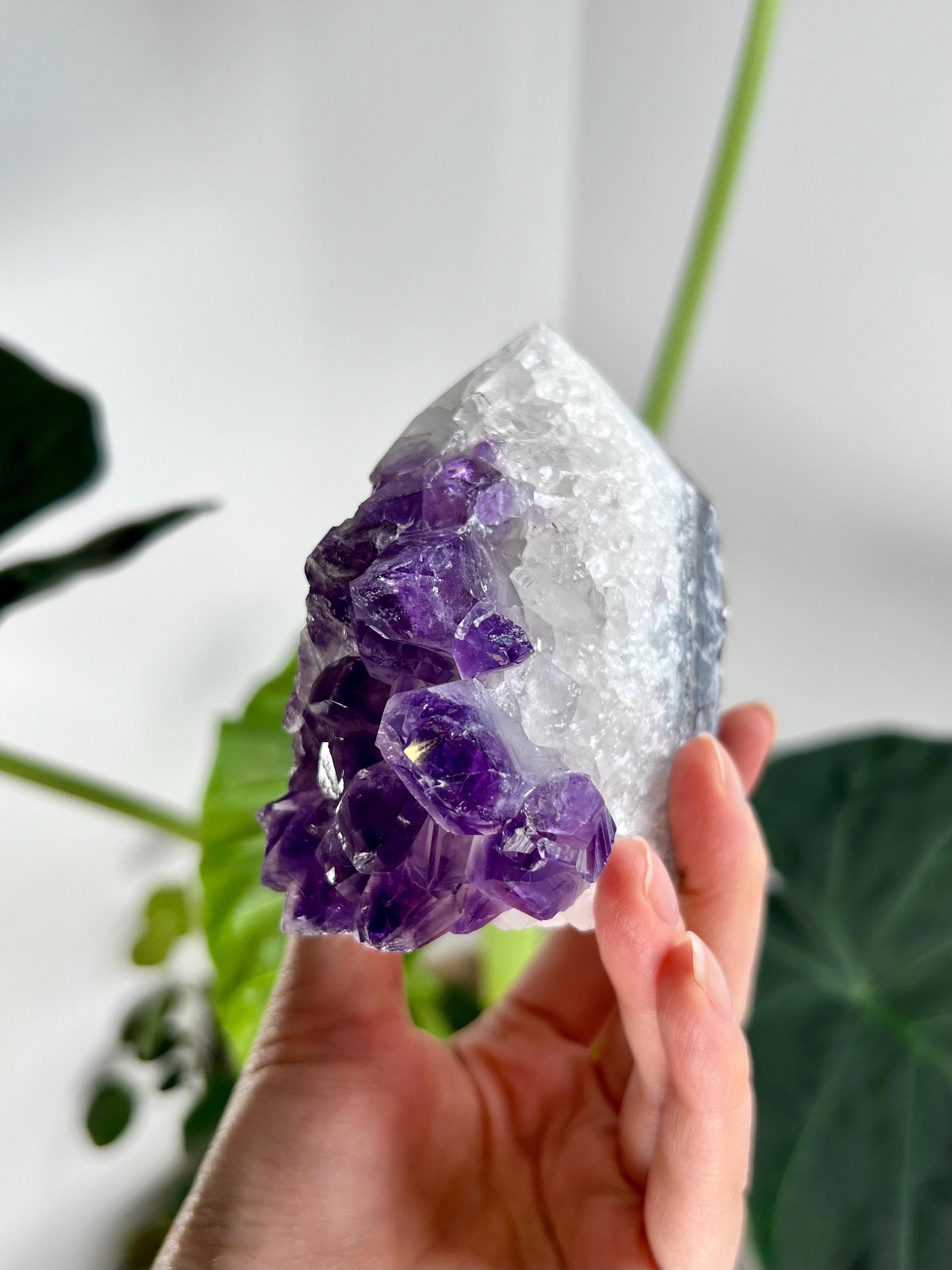 Chakra Balancing: Use the geode to clear and balance the Third Eye, Crown, and Heart Chakras, promoting a connection between your spiritual insight, emotional health, and higher consciousness.