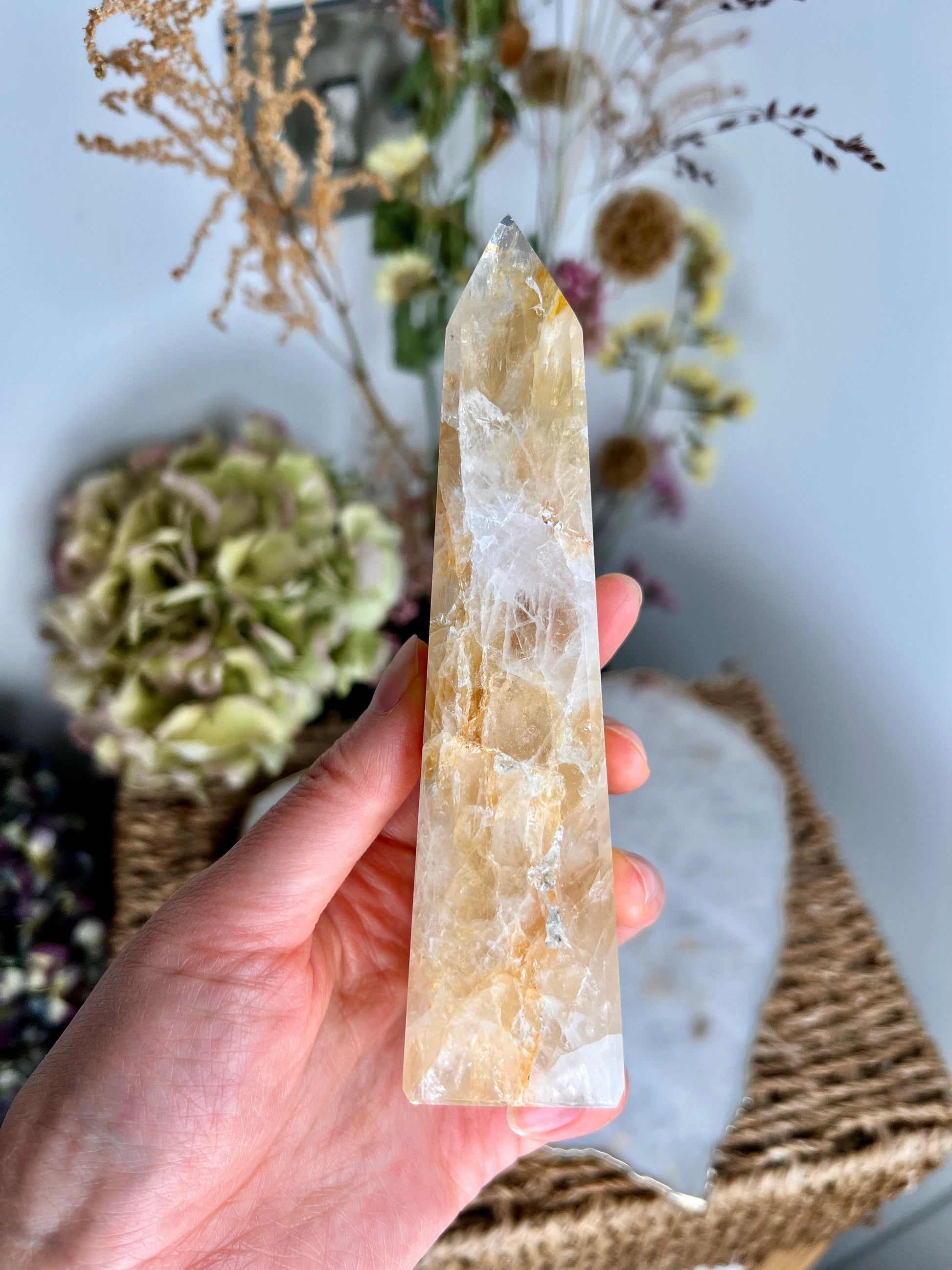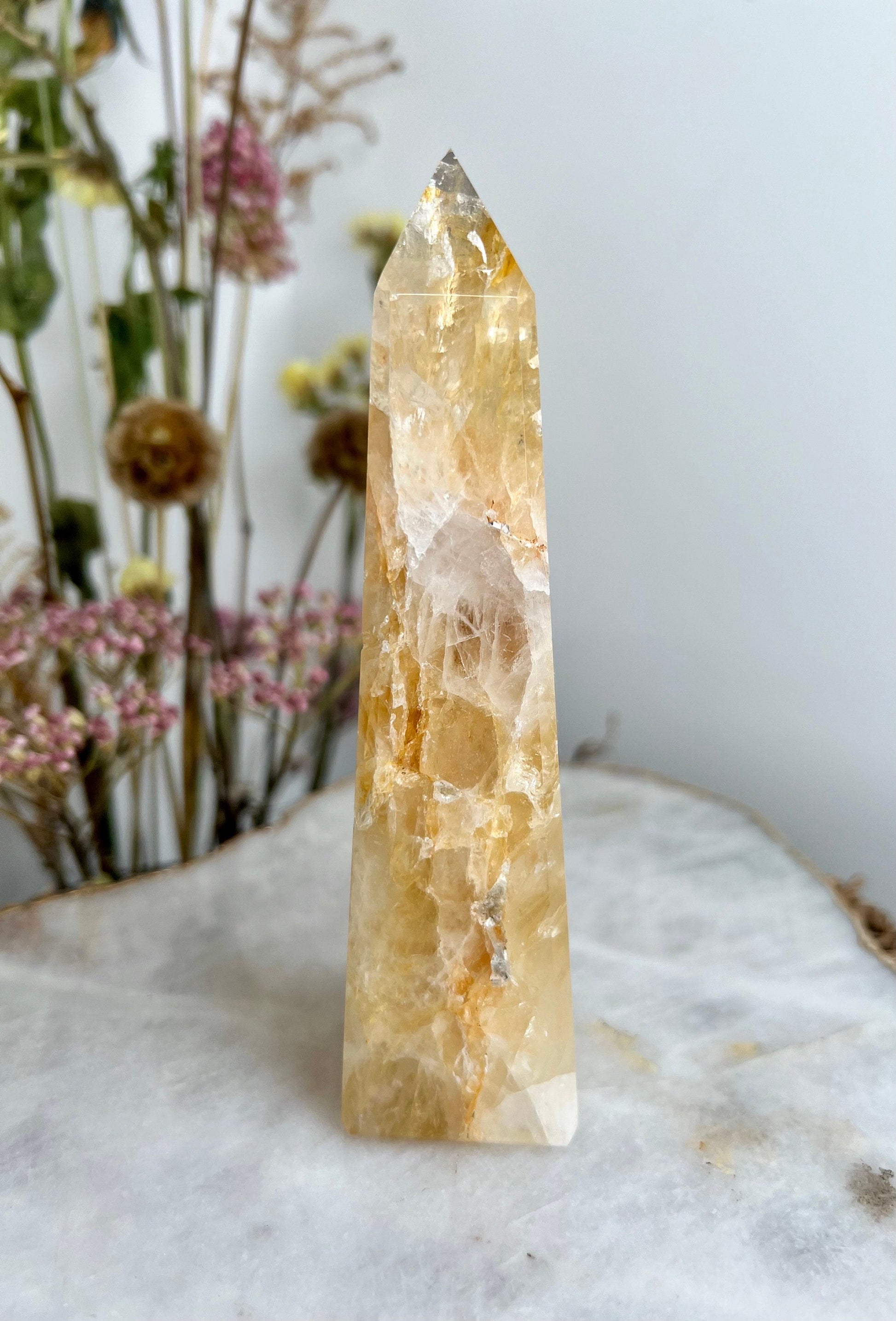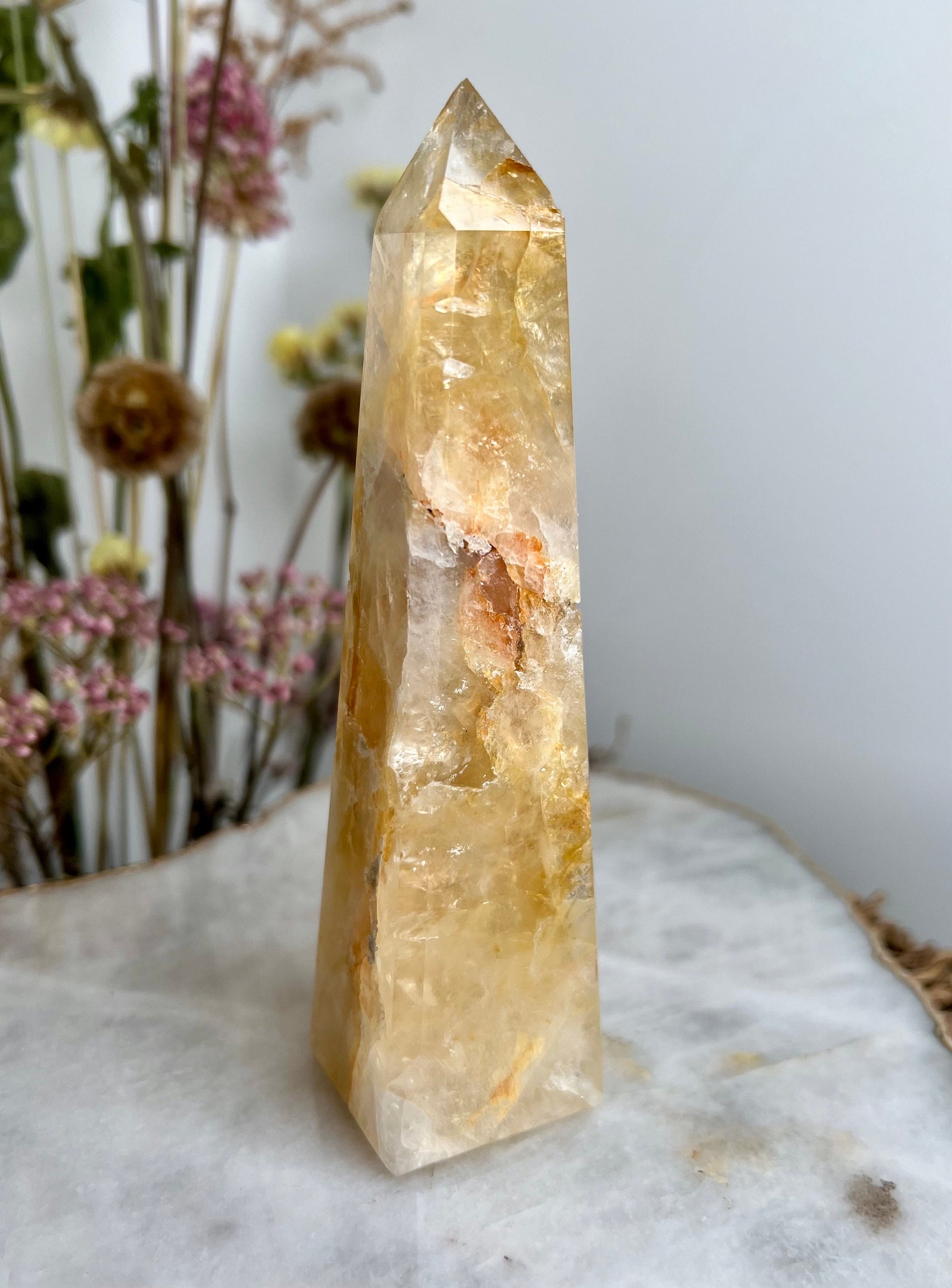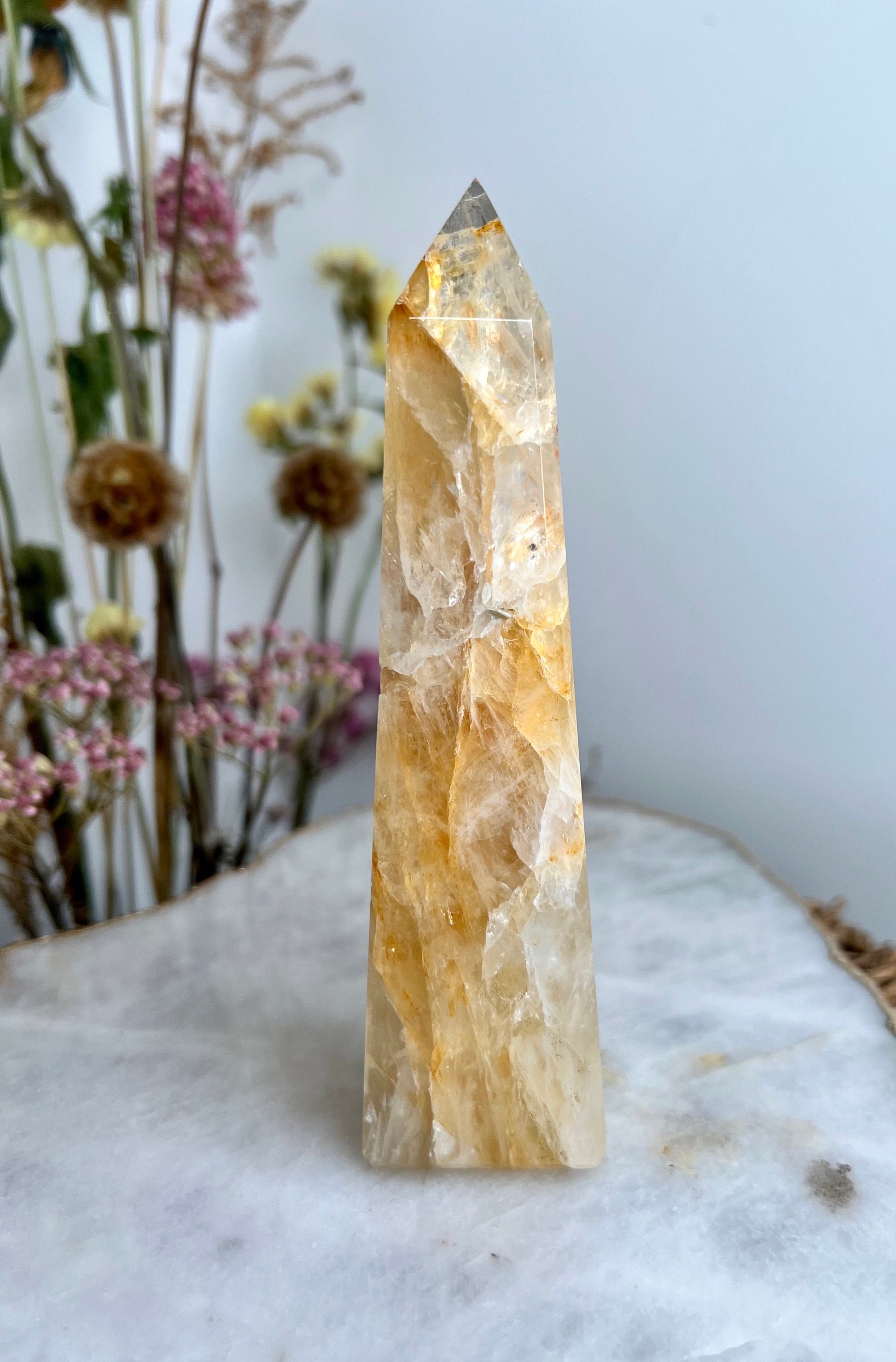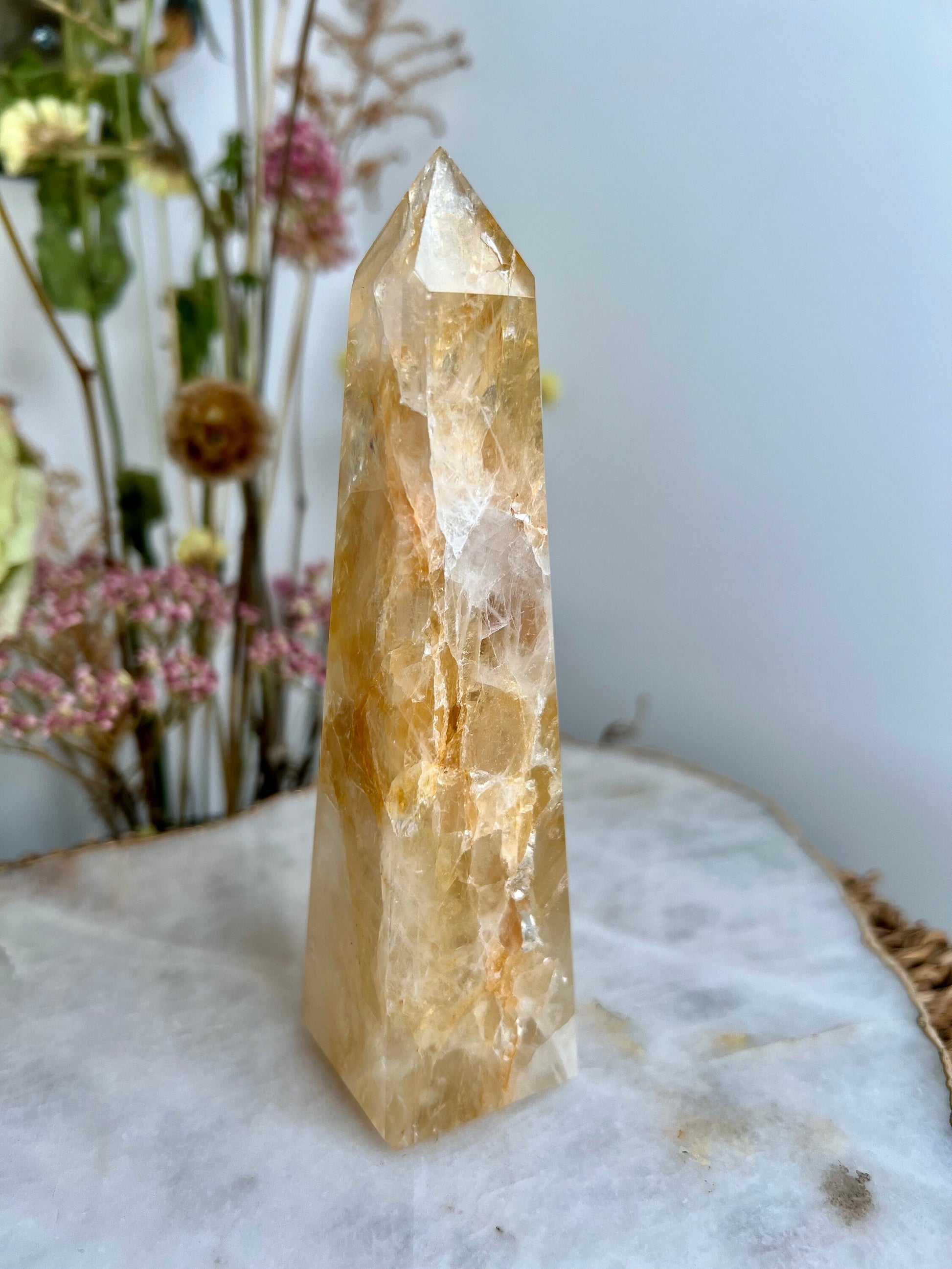 ✨ Elevate Your Spiritual Journey - Experience the profound energy of our Grade AAA Golden Healer Quartz Obelisk. Revered as a master healer, this stunning crystal obelisk is a conduit of power, strength, and connection to Source Energy.