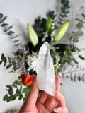 ✨ Embrace Cosmic Wisdom and Healing - Discover the ethereal beauty and powerful energies of our Natural Grade AAA Clear Lemurian Quartz Starseed Wand. This exquisite piece serves as a conduit between the cosmos and the soul, featuring mesmerizing Rainbow reflections, a unique Crater Formation, and Self-Healed aspects. It's an embodiment of celestial wisdom, intended for those seeking profound spiritual growth and healing.
