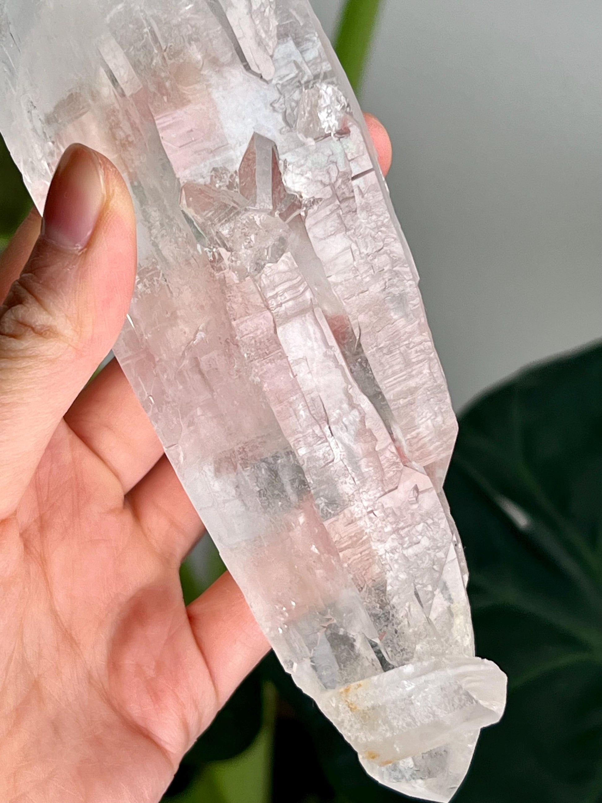 The double-terminated points allow energy to flow in both directions, amplifying and transmitting energy across a wide field. This feature makes it an incredibly versatile tool for energy work, allowing for both receiving and sending of healing energy. Combined with the penetration feature, this quartz is excellent for those working on bringing subconscious desires and manifestations into reality, as it penetrates deep within the spiritual and emotional fields to aid in realization.
