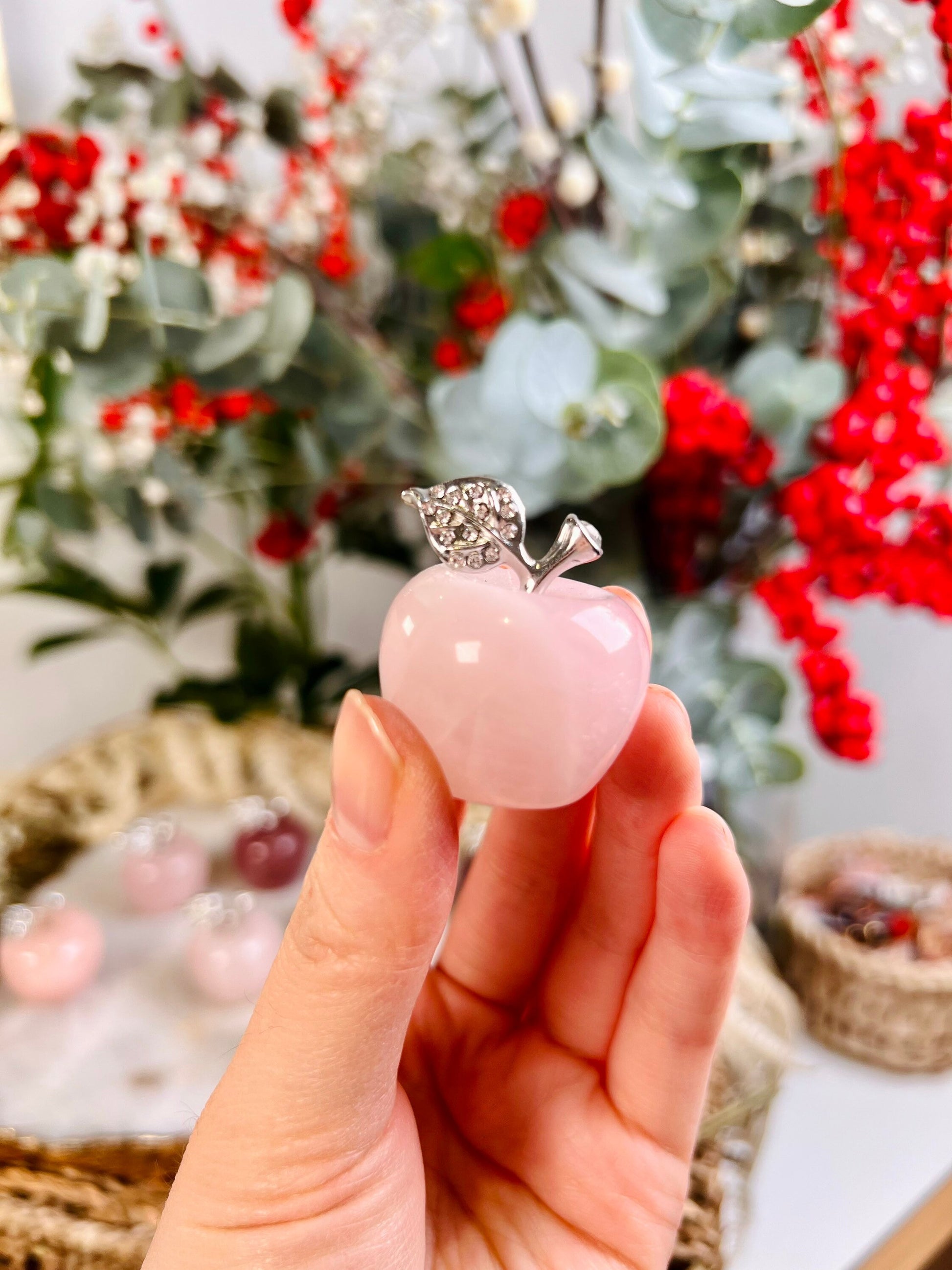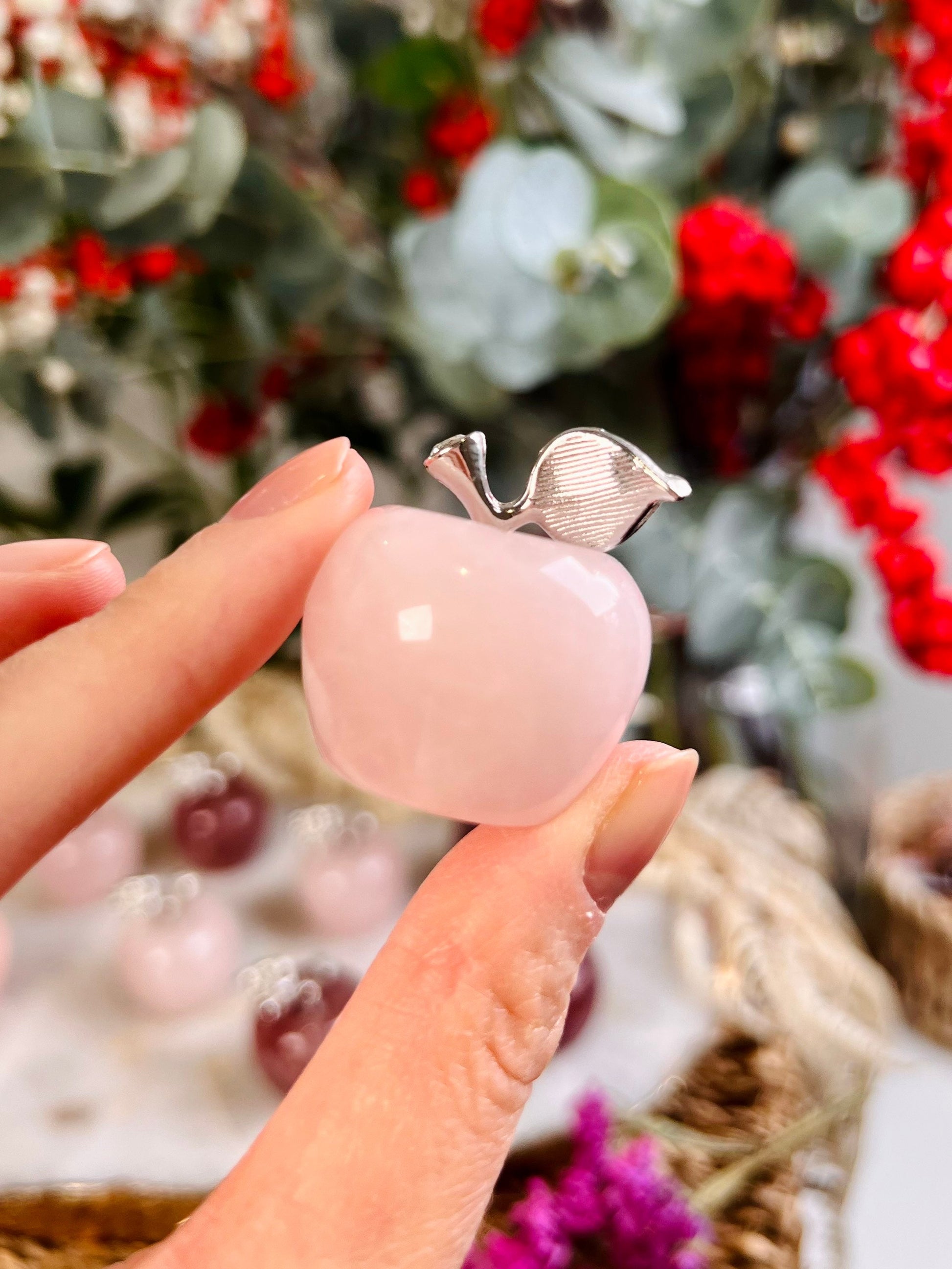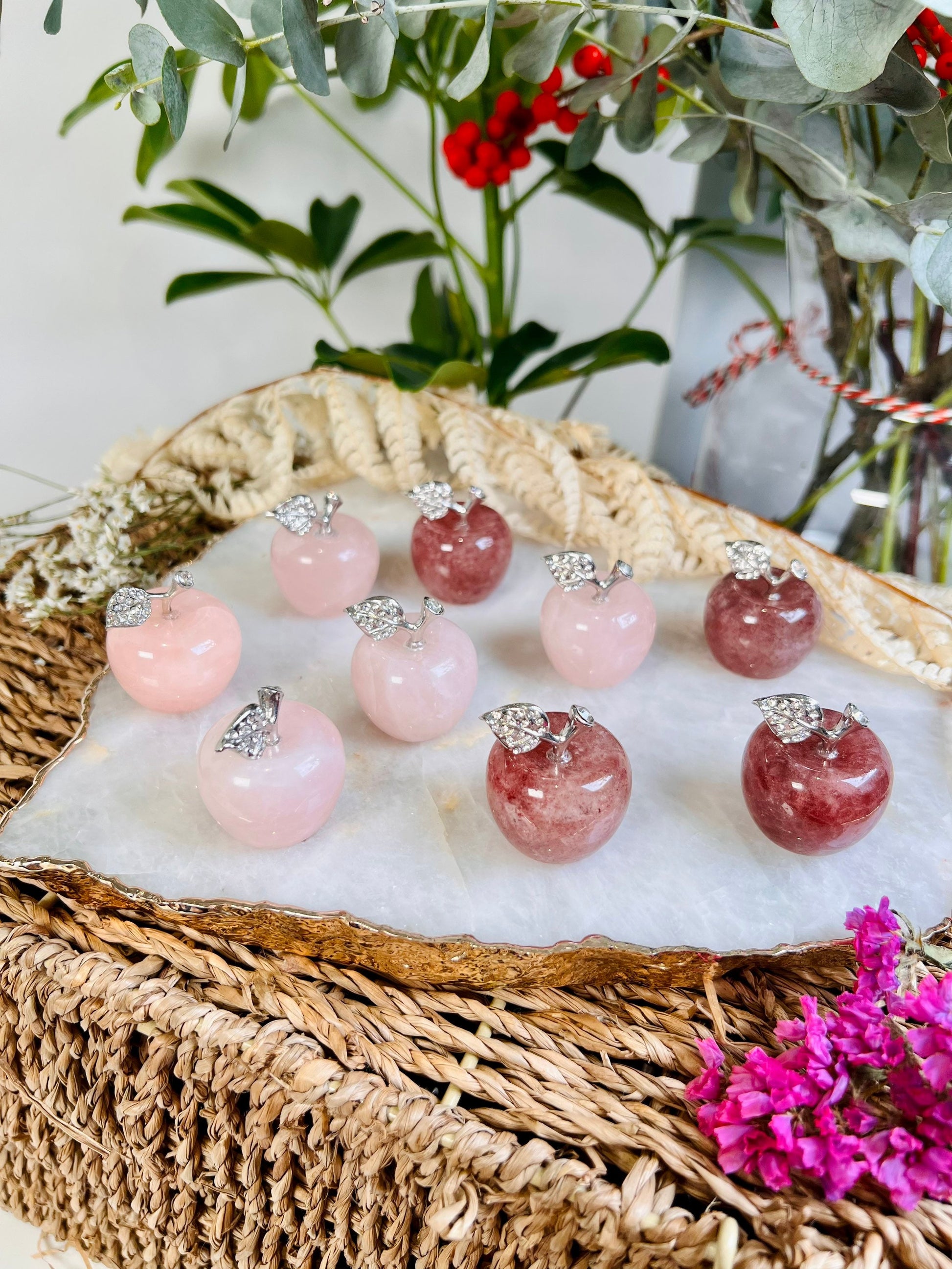 Rose Quartz and Strawberry Quartz Apples, Crystal Carving, Love and Harmony, Gift for Her